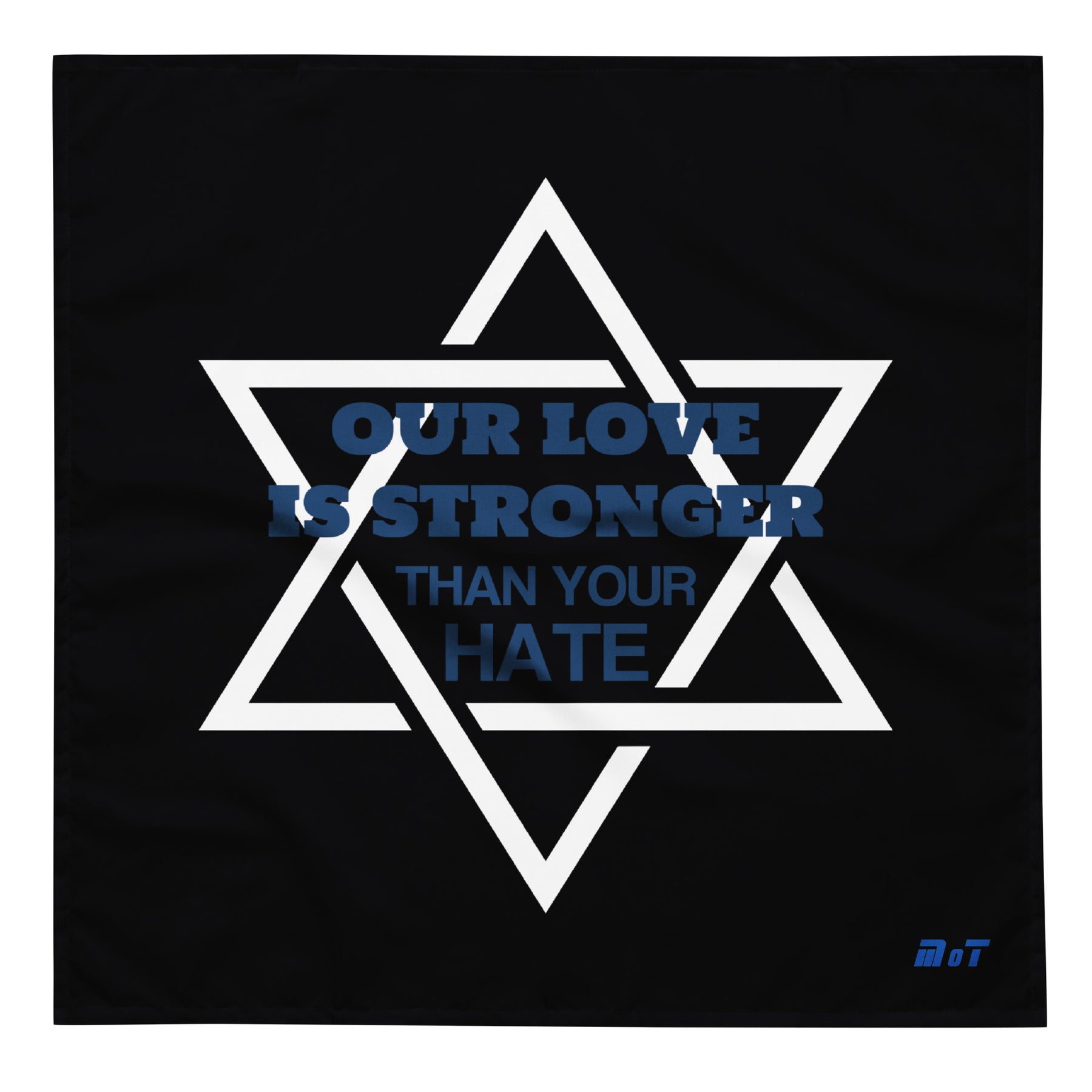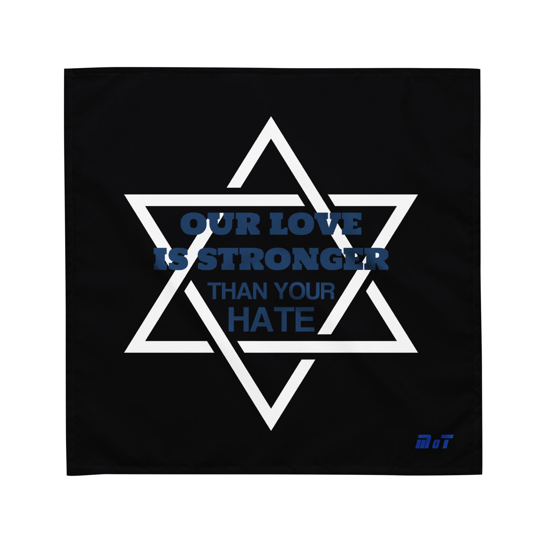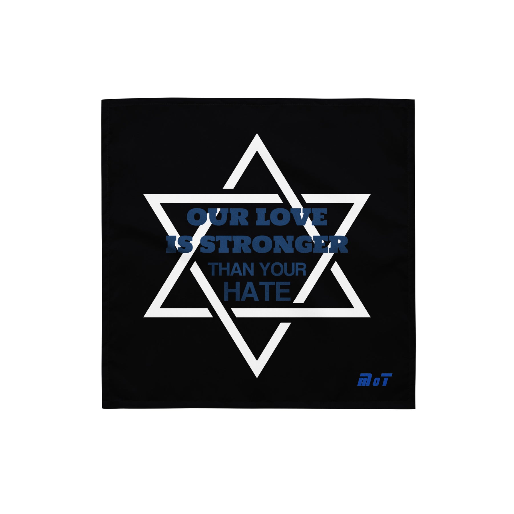 Wrap yourself in purpose and pride with the “Our Love Is Stronger Than Your Hate” Bandana. Designed with the powerful Star of David and a bold declaration of unity, this versatile bandana is more than just an accessory—it’s a visible stand against antisemitism and hate.
