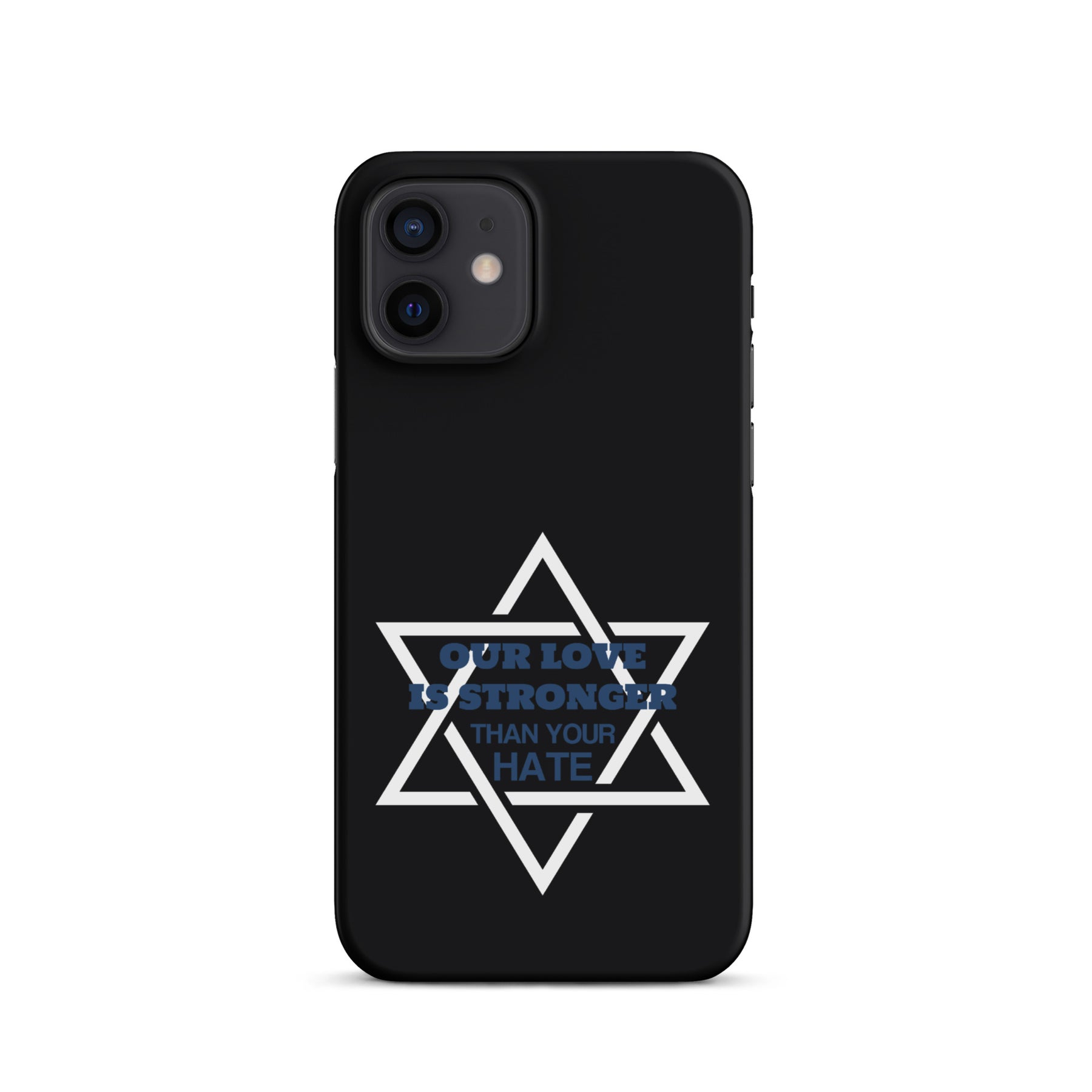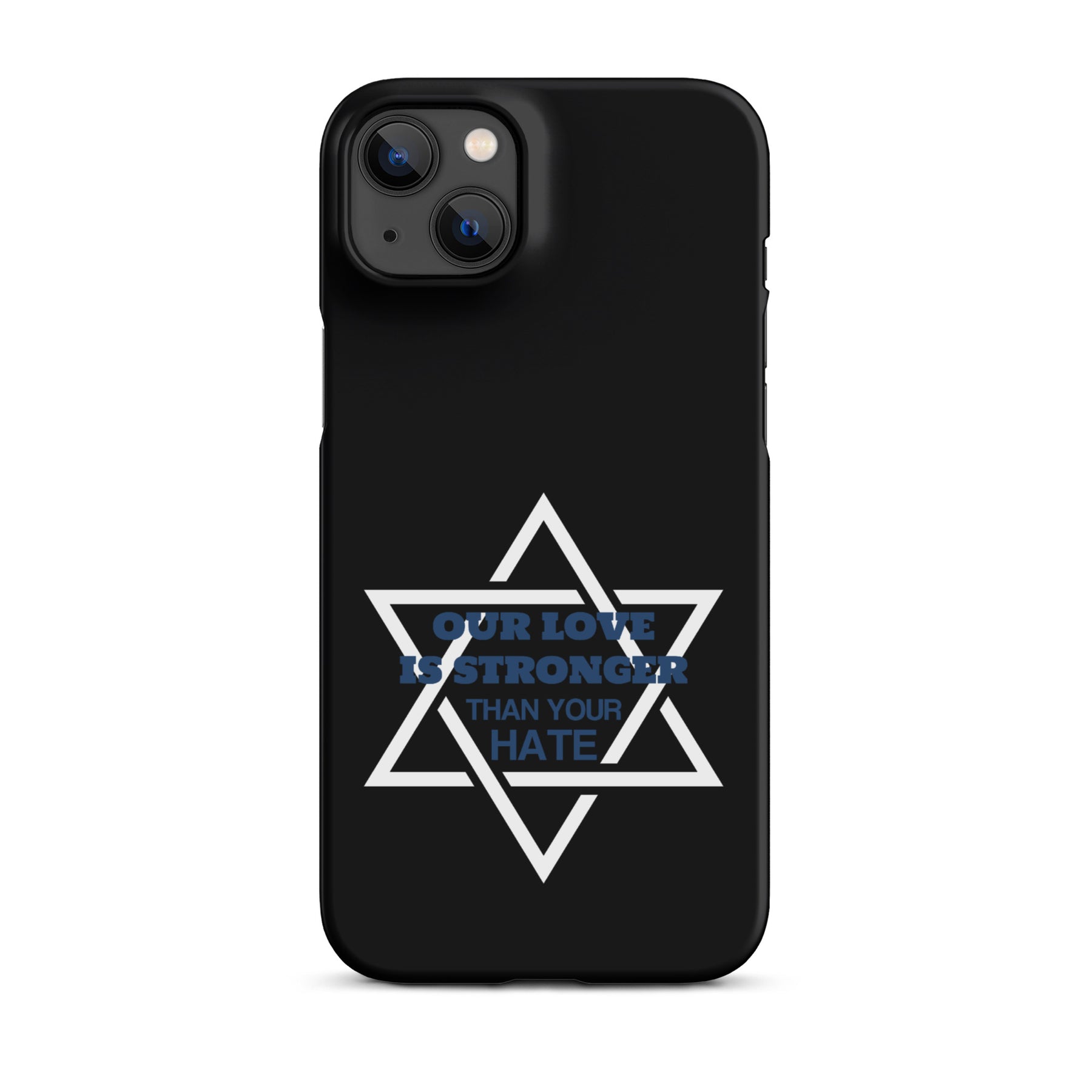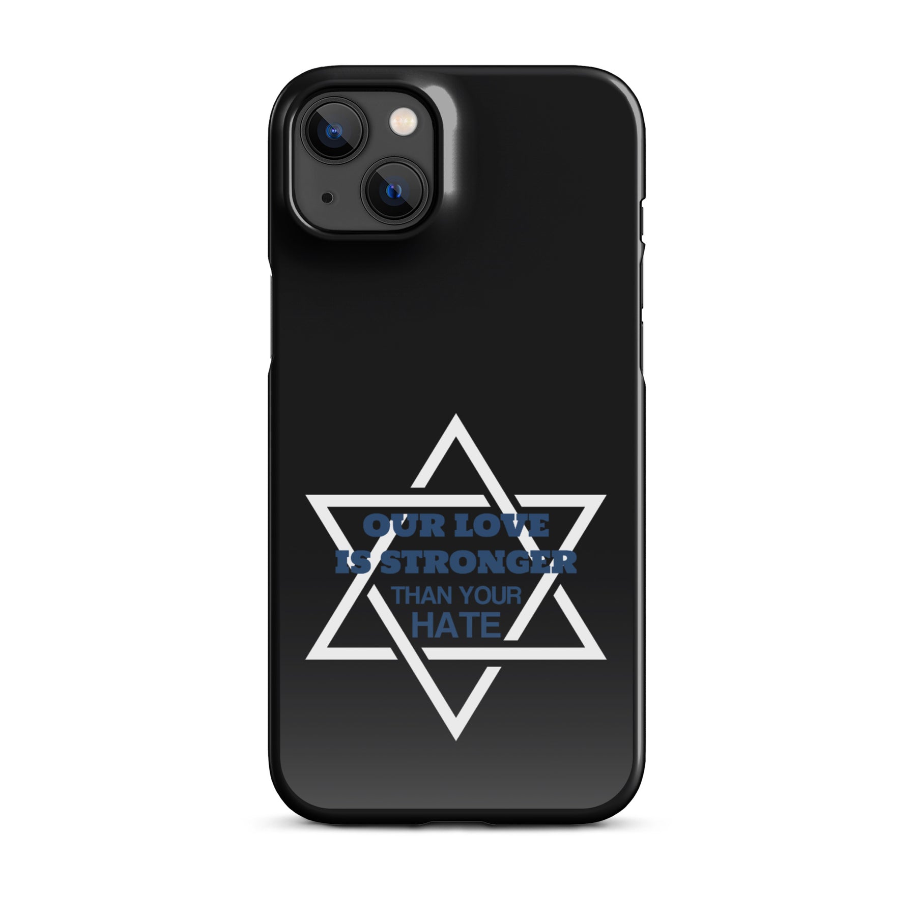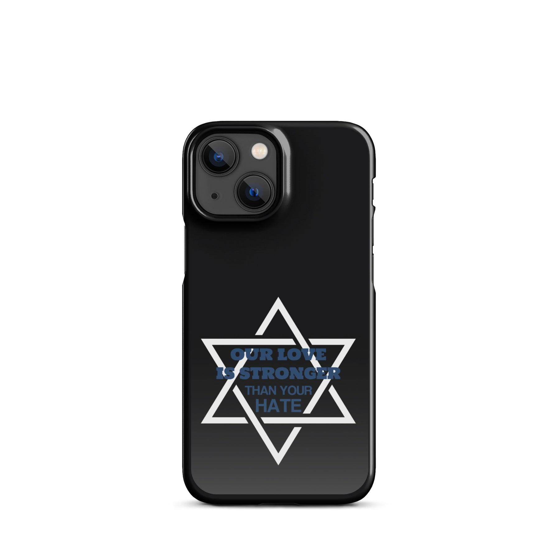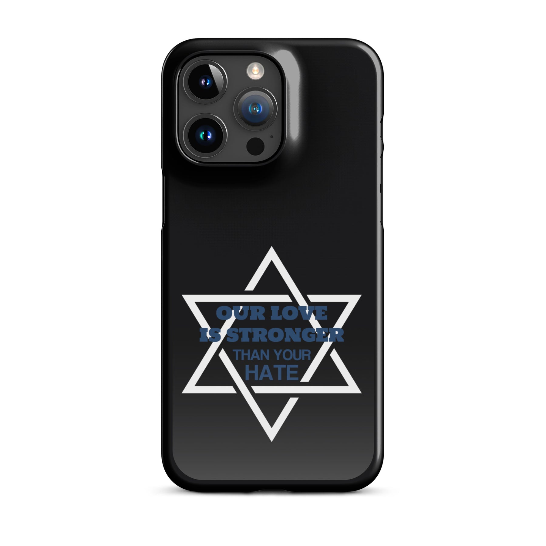 Carry a message of unity and resilience with every call, text, or selfie. The “Our Love Is Stronger Than Your Hate” snap case for iPhone® is a bold declaration of Jewish strength, pride, and love that rises above hate.