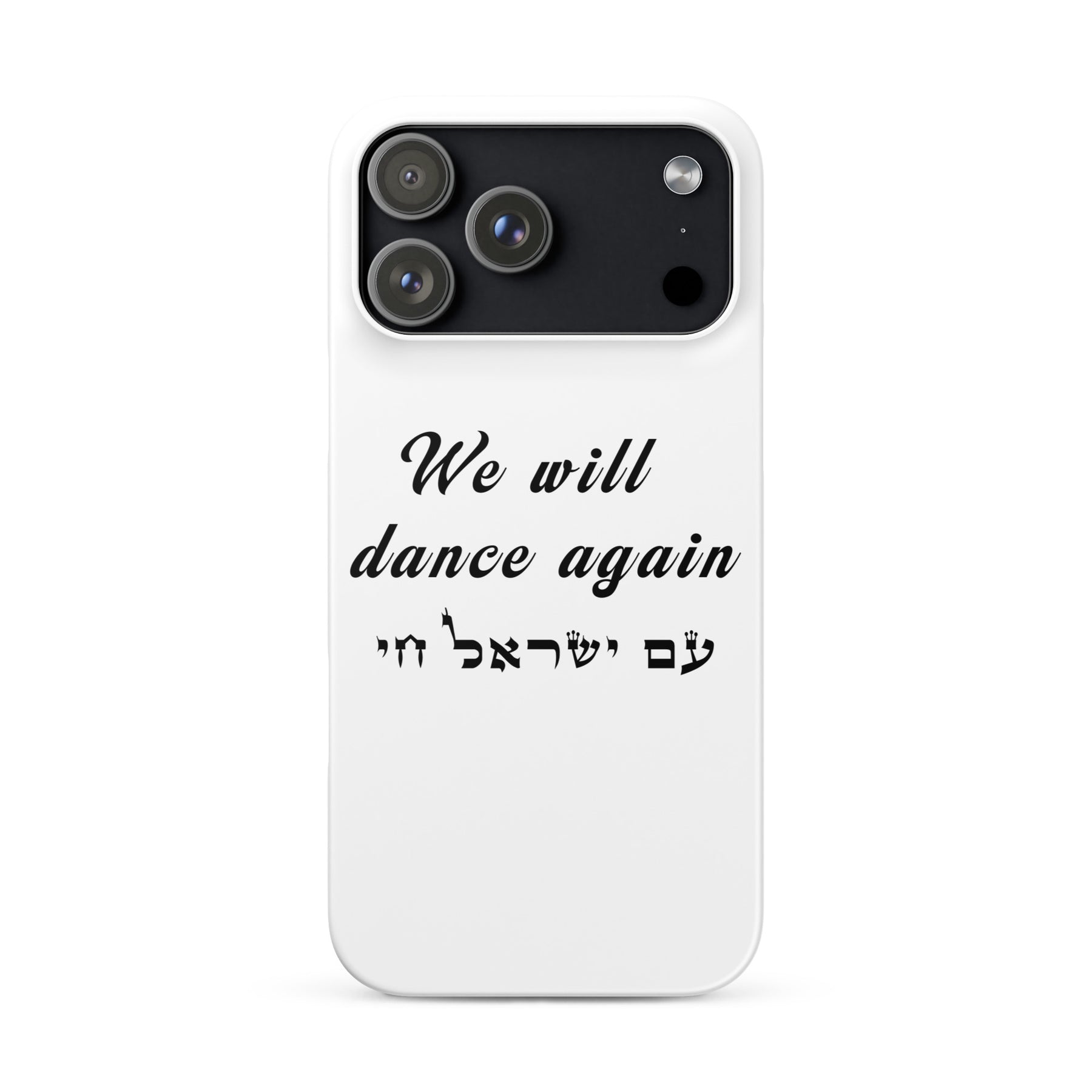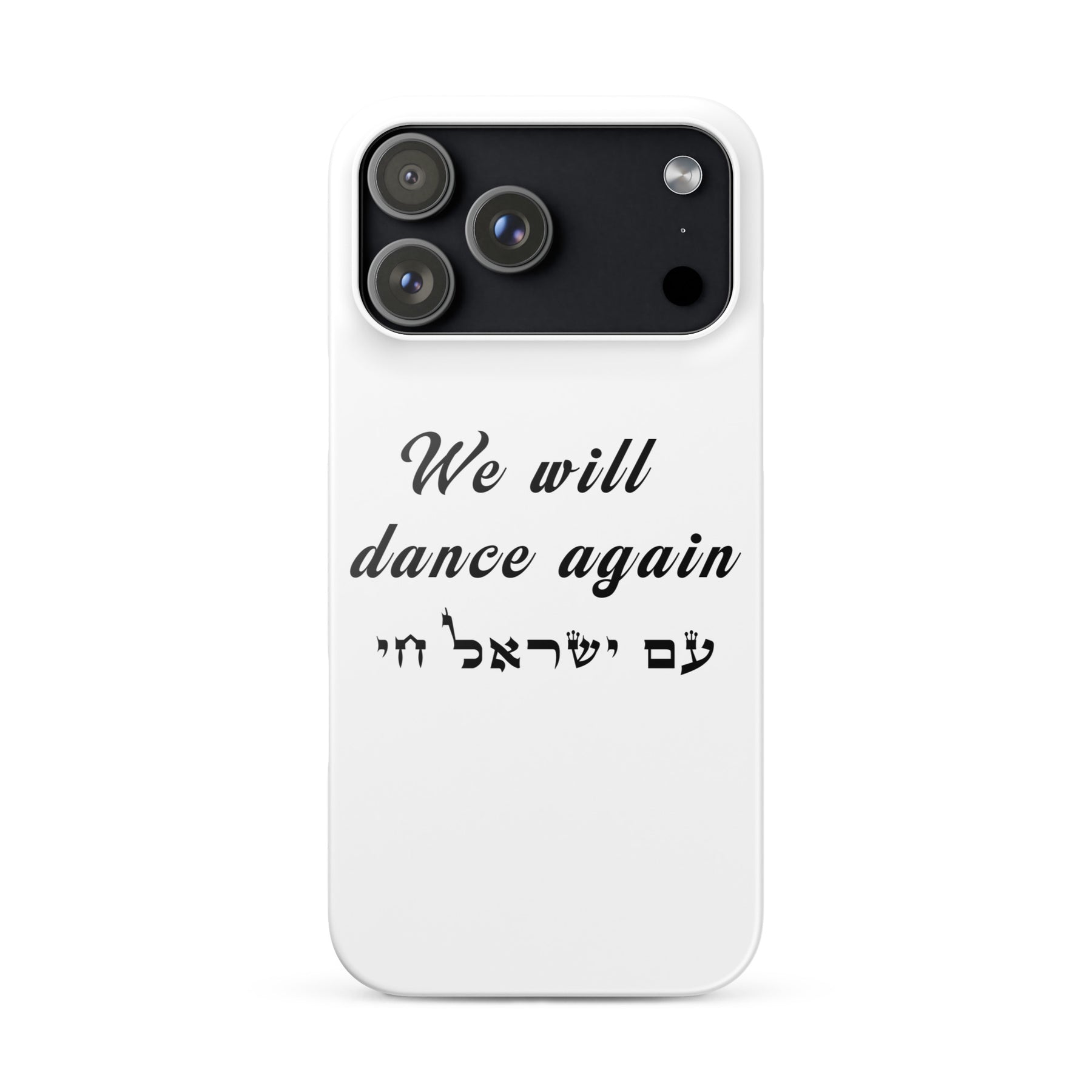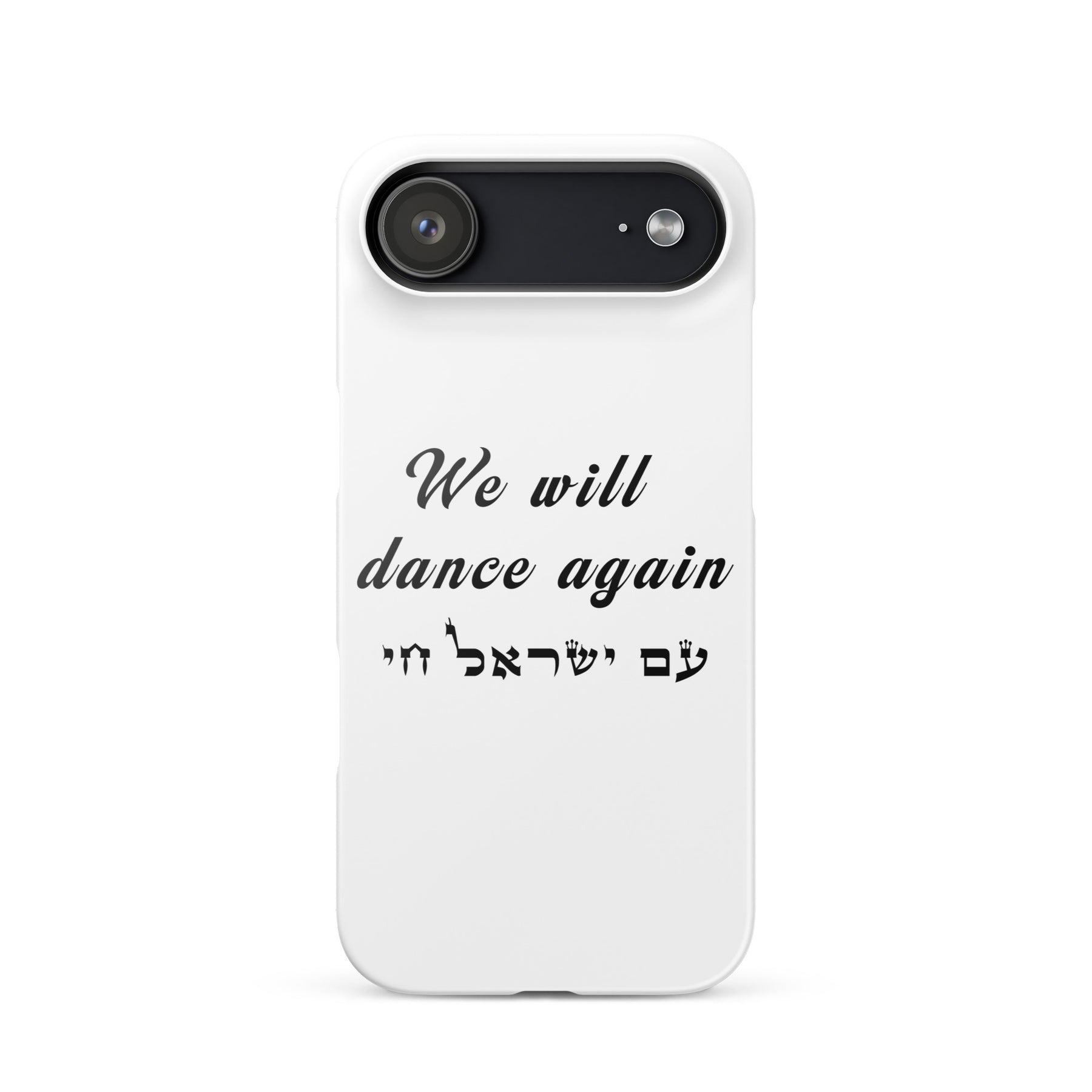 Protect your iPhone® with style using our Snap Case featuring the “We will dance again” design! 📱🌟 Adorned with the meaningful Hebrew message “עם ישראל חי” (Am Yisrael Chai) – “The people of Israel live,” ✡️ this case combines sleek aesthetics with solidarity. Perfect for everyday use, showcase resilience and unity with every call and text! 🕊️💪