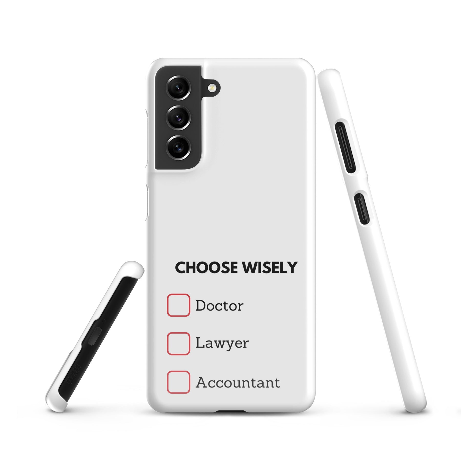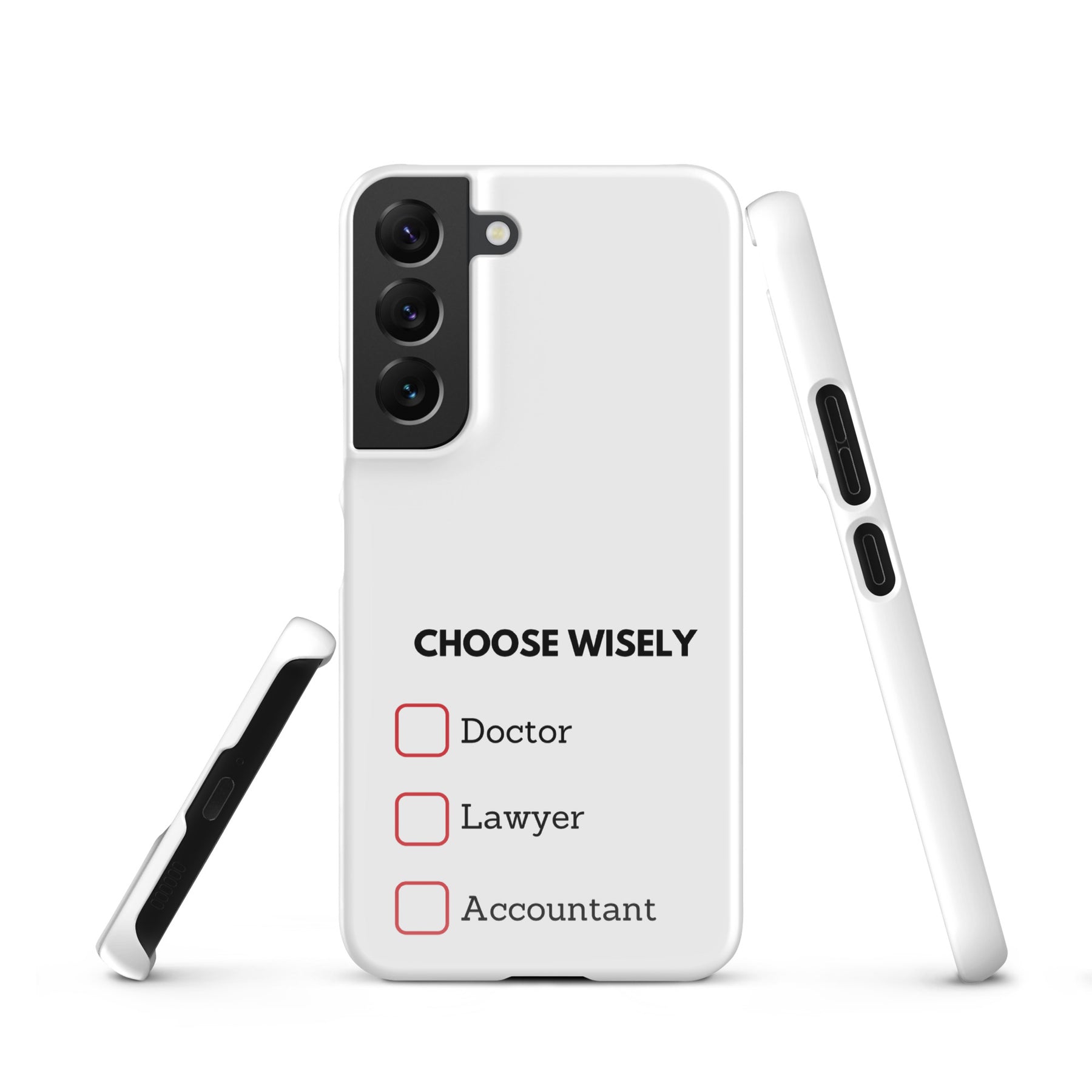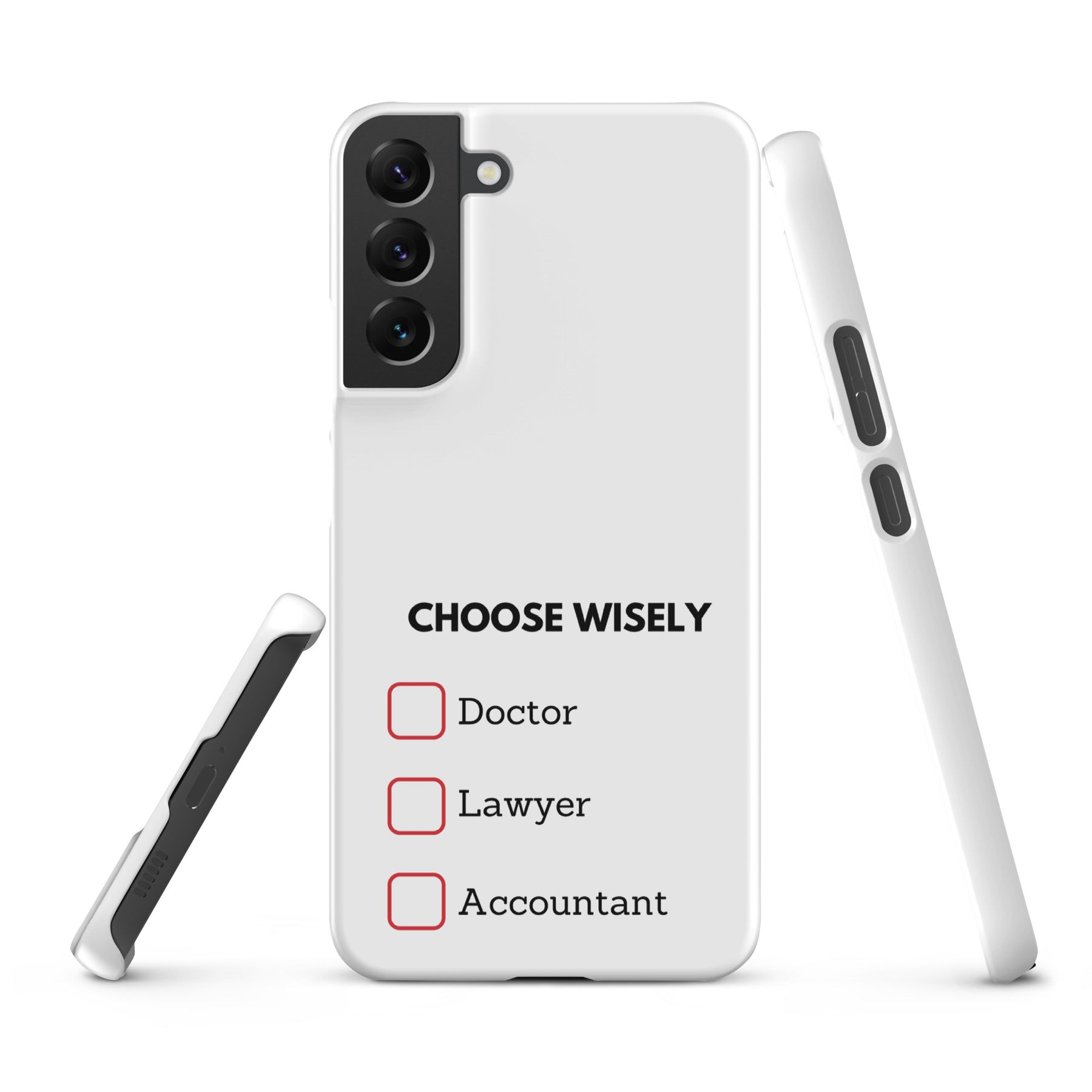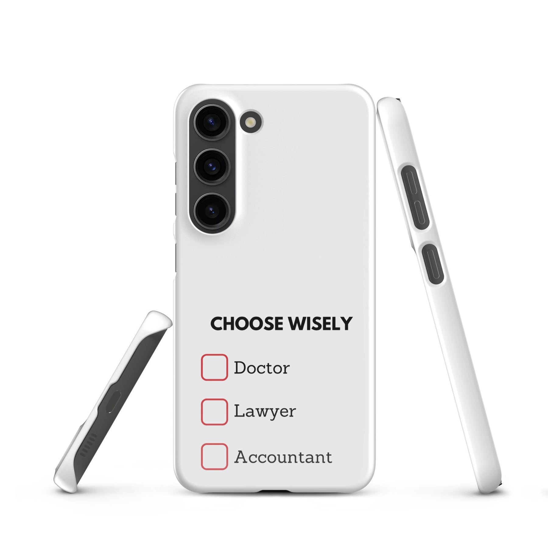 The Choose Wisely Snap Case for Samsung® brings dry Jewish humor to your phone in a clean, minimal way. Featuring the familiar checklist design, it delivers that quiet, knowing joke that works best when choices are being reviewed. Thoughtfully. Repeatedly.