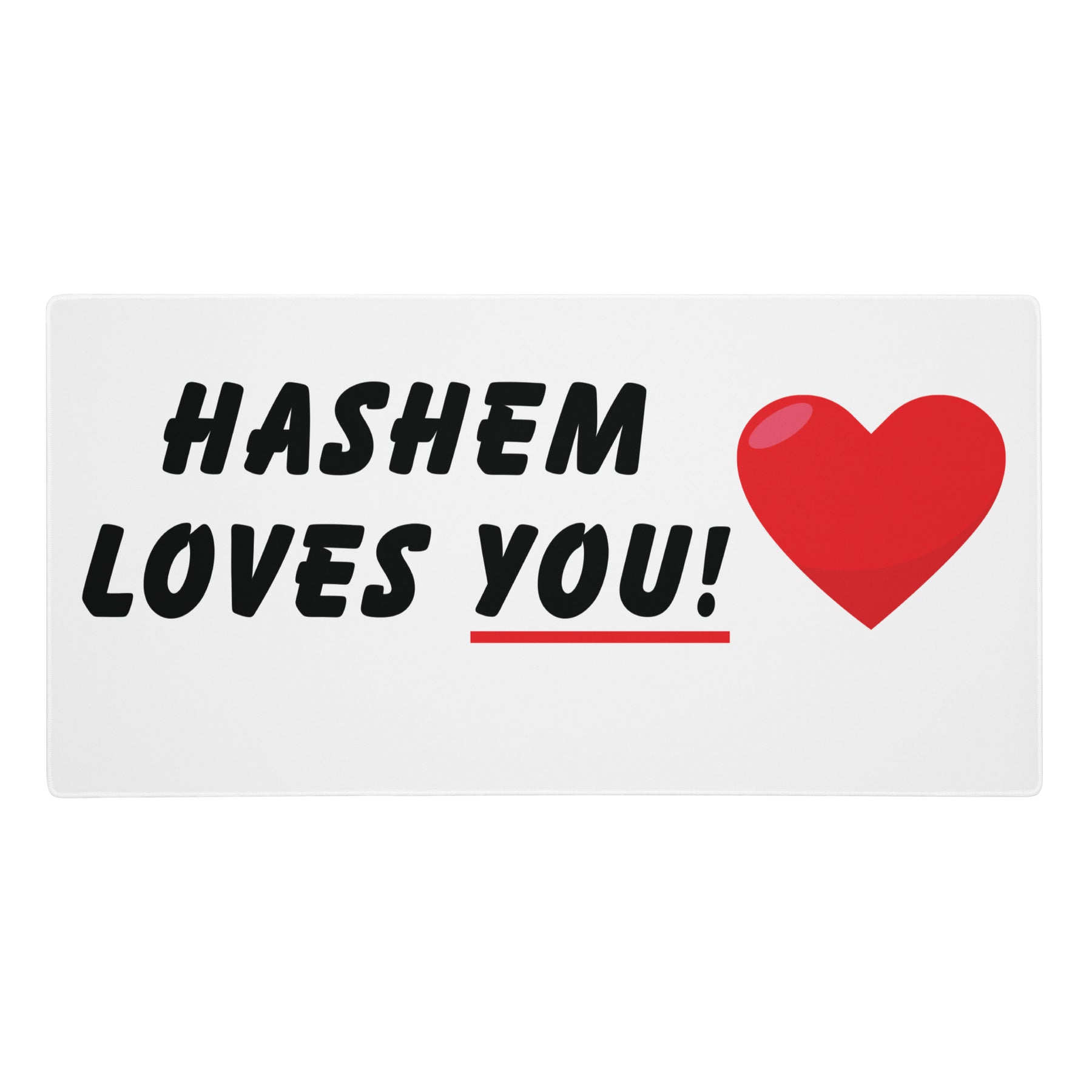 Featuring the vibrant and uplifting phrase “HaShem Loves You”, this gaming mouse pad merges faith, function, and style, bringing comfort and spiritual encouragement to your desk setup. Perfect for gamers who want to combine performance with a meaningful message.