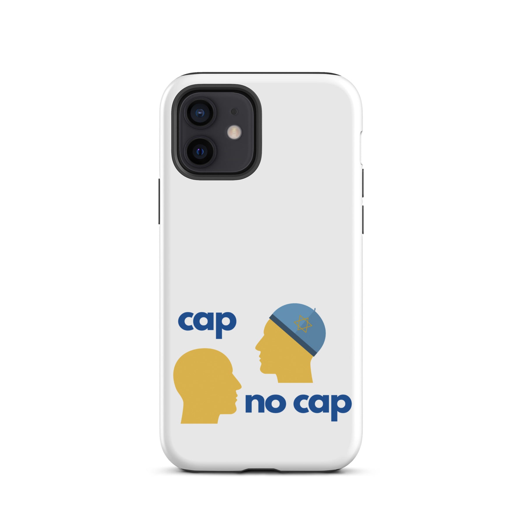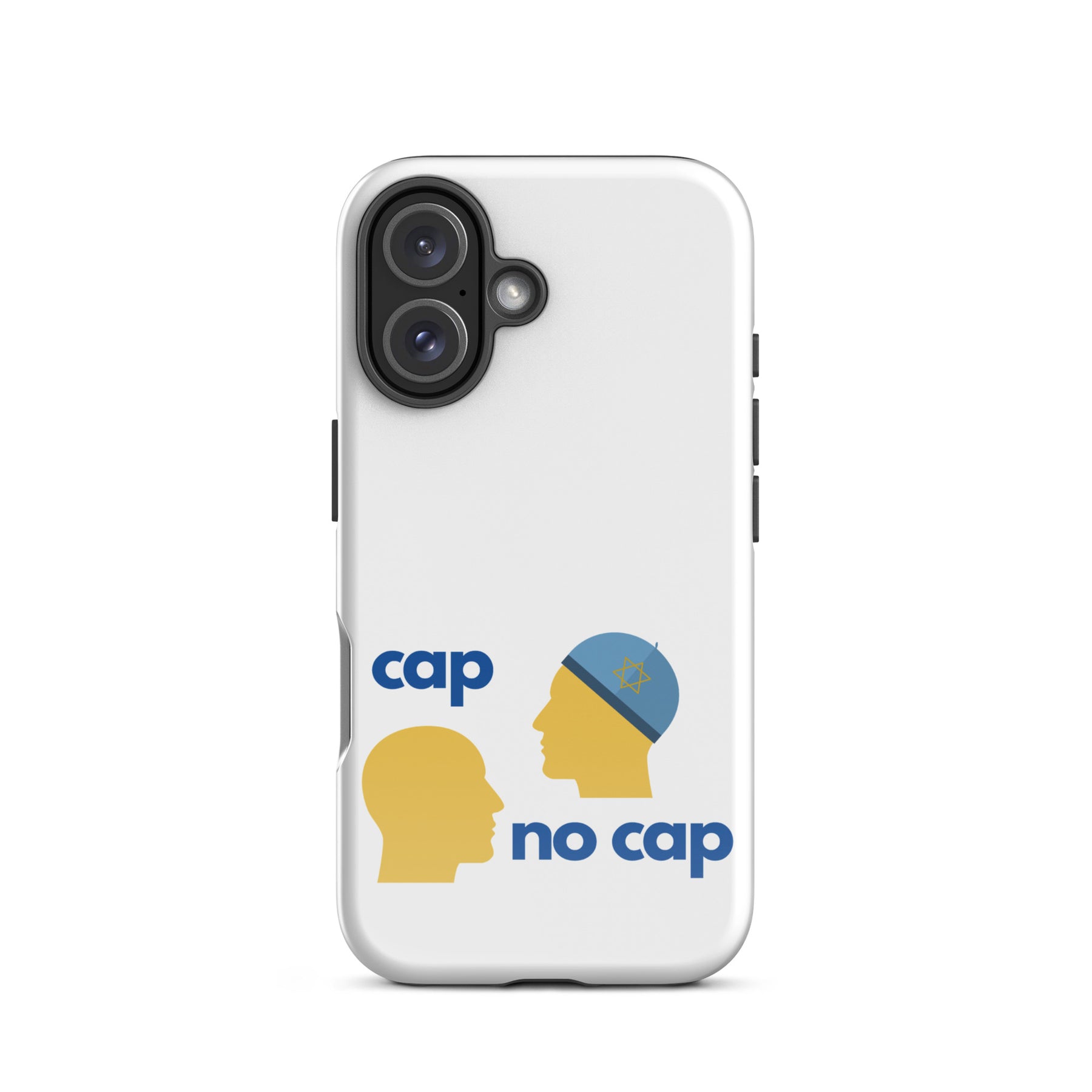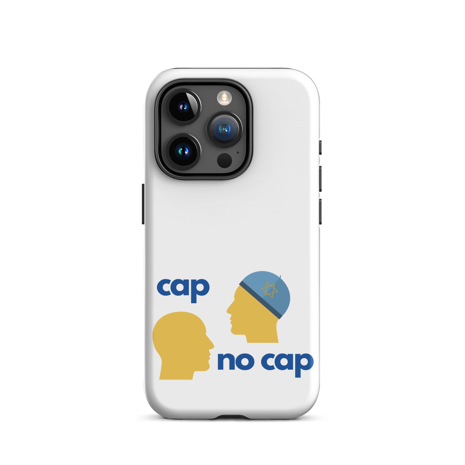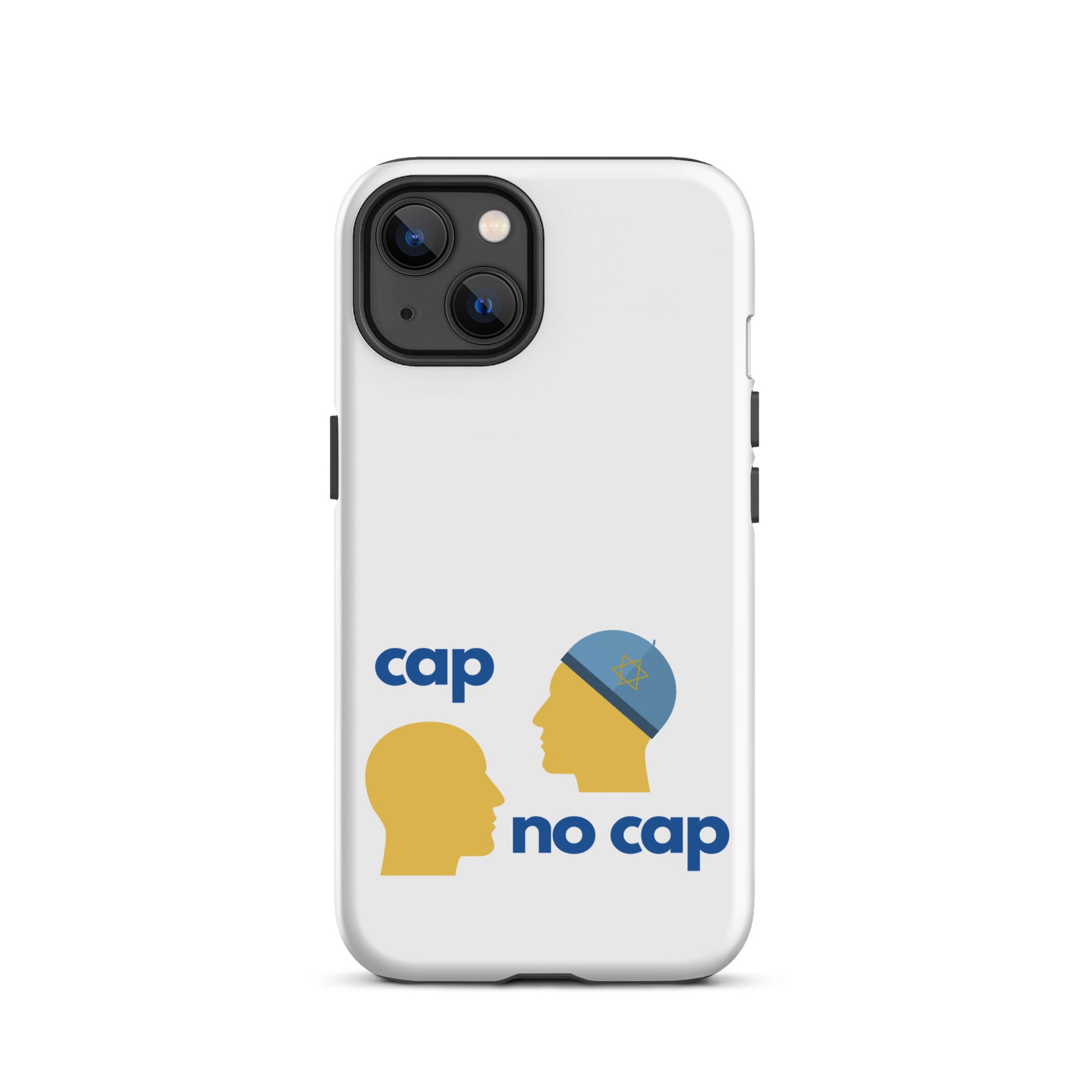 Serious protection. Zero cap. The Cap No Cap Tough Case for iPhone® turns a phrase everyone knows into a smart Jewish visual joke that also keeps your phone safe. Cap on, cap off, the truth stays the same and so does your screen.