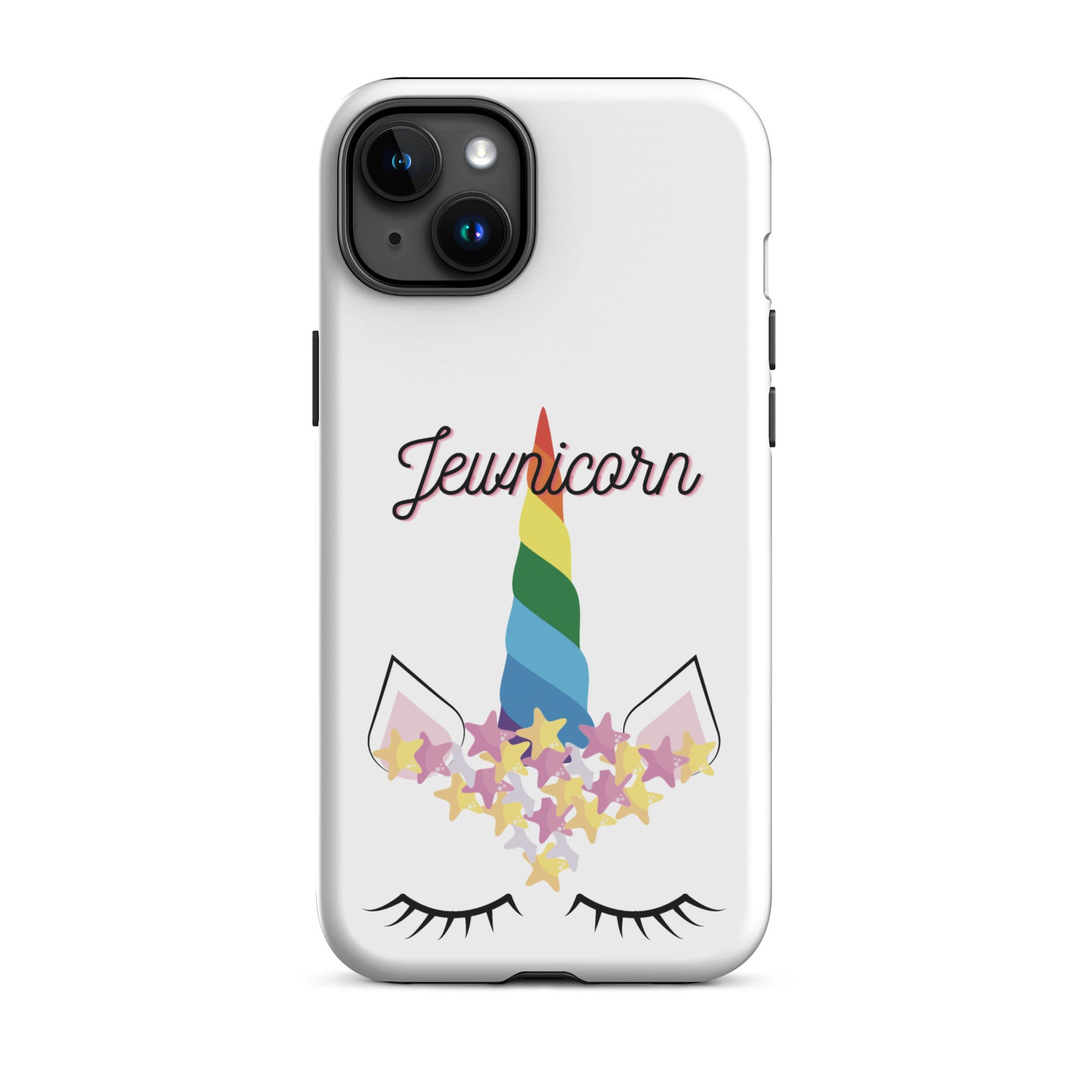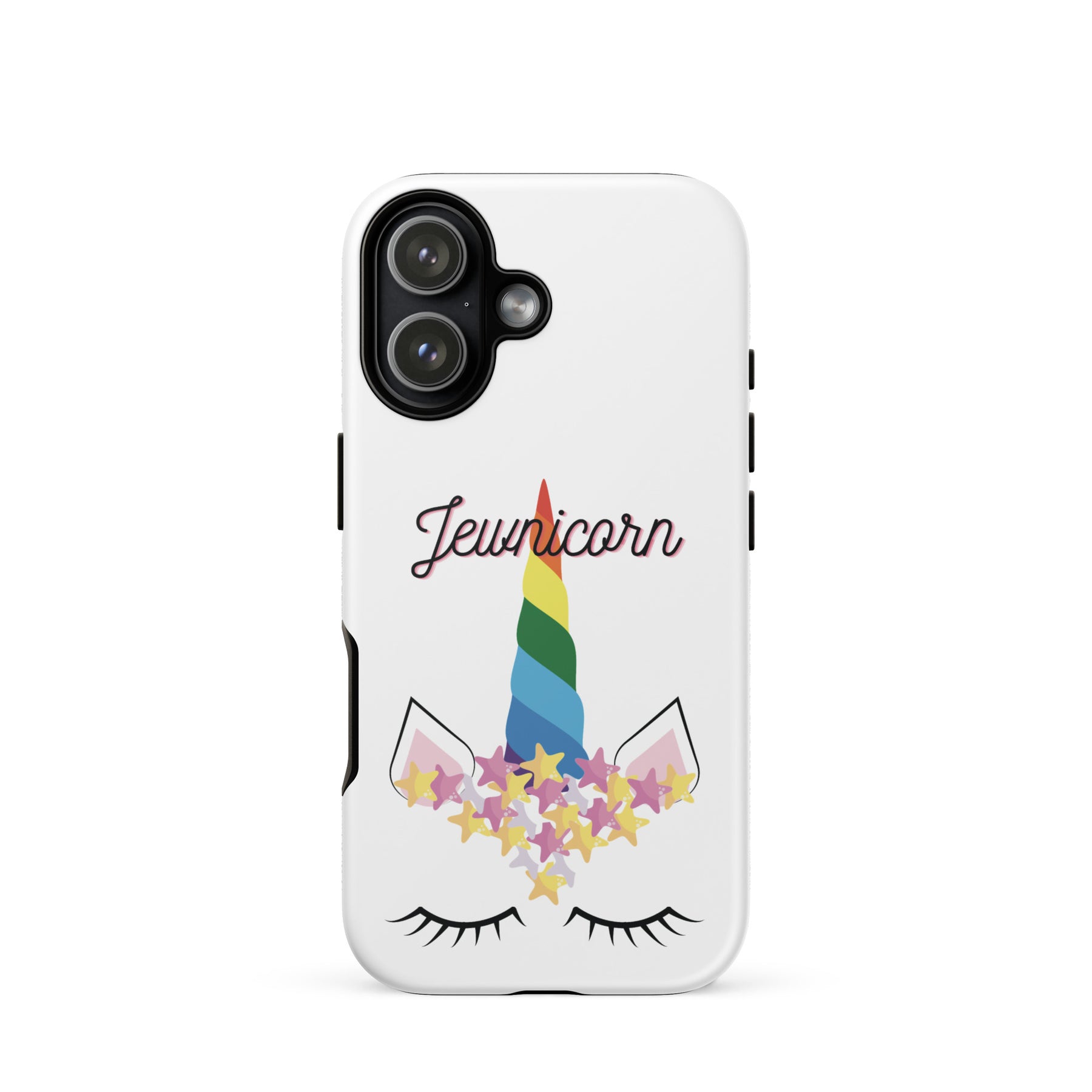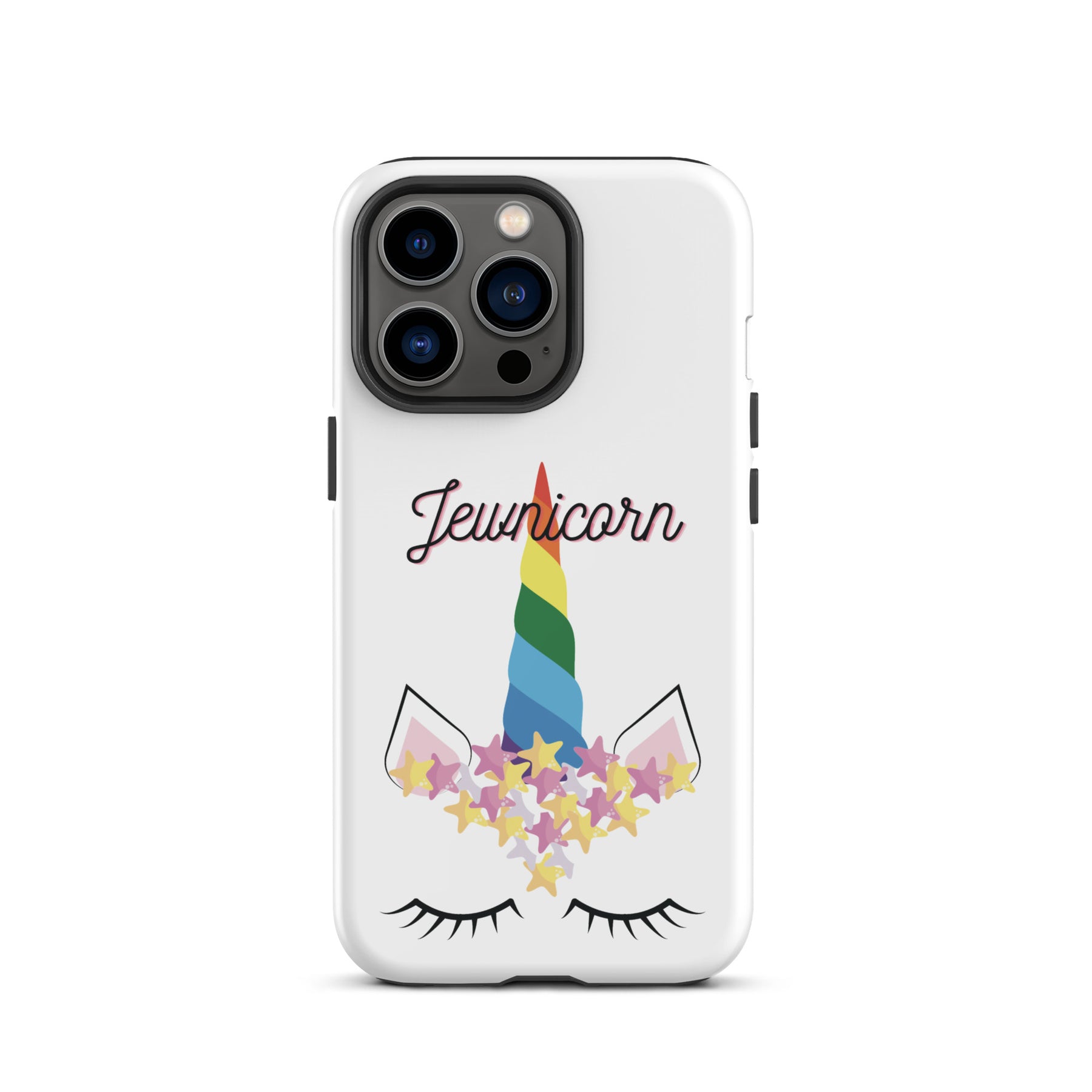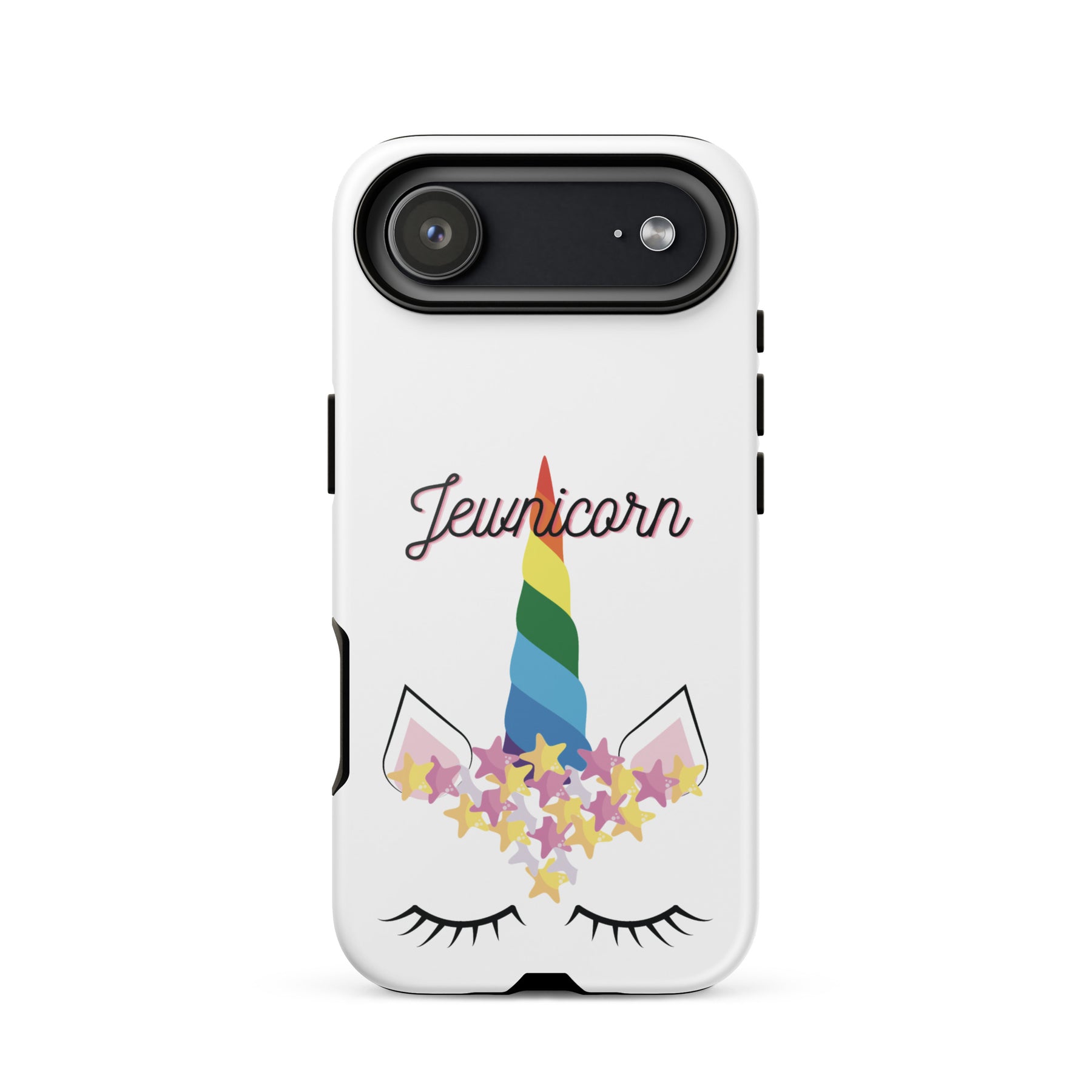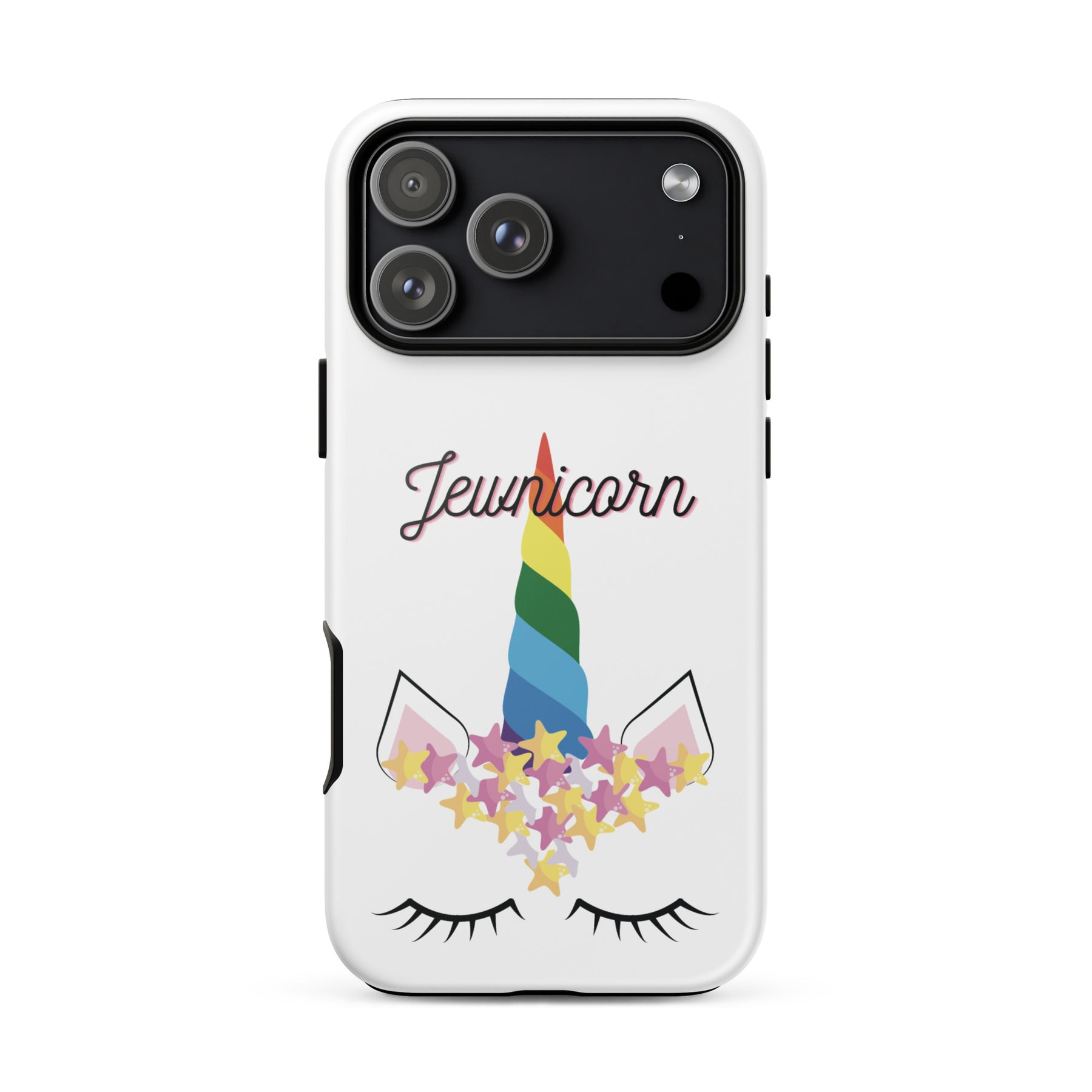 Give your phone a mix of charm and protection with the Jewnicorn Tough Case for iPhone®. The design features a cute unicorn face with soft closed eyes, pastel stars, and a bright rainbow horn. It’s playful, colorful, and brings a nice dose of personality to your everyday carry.