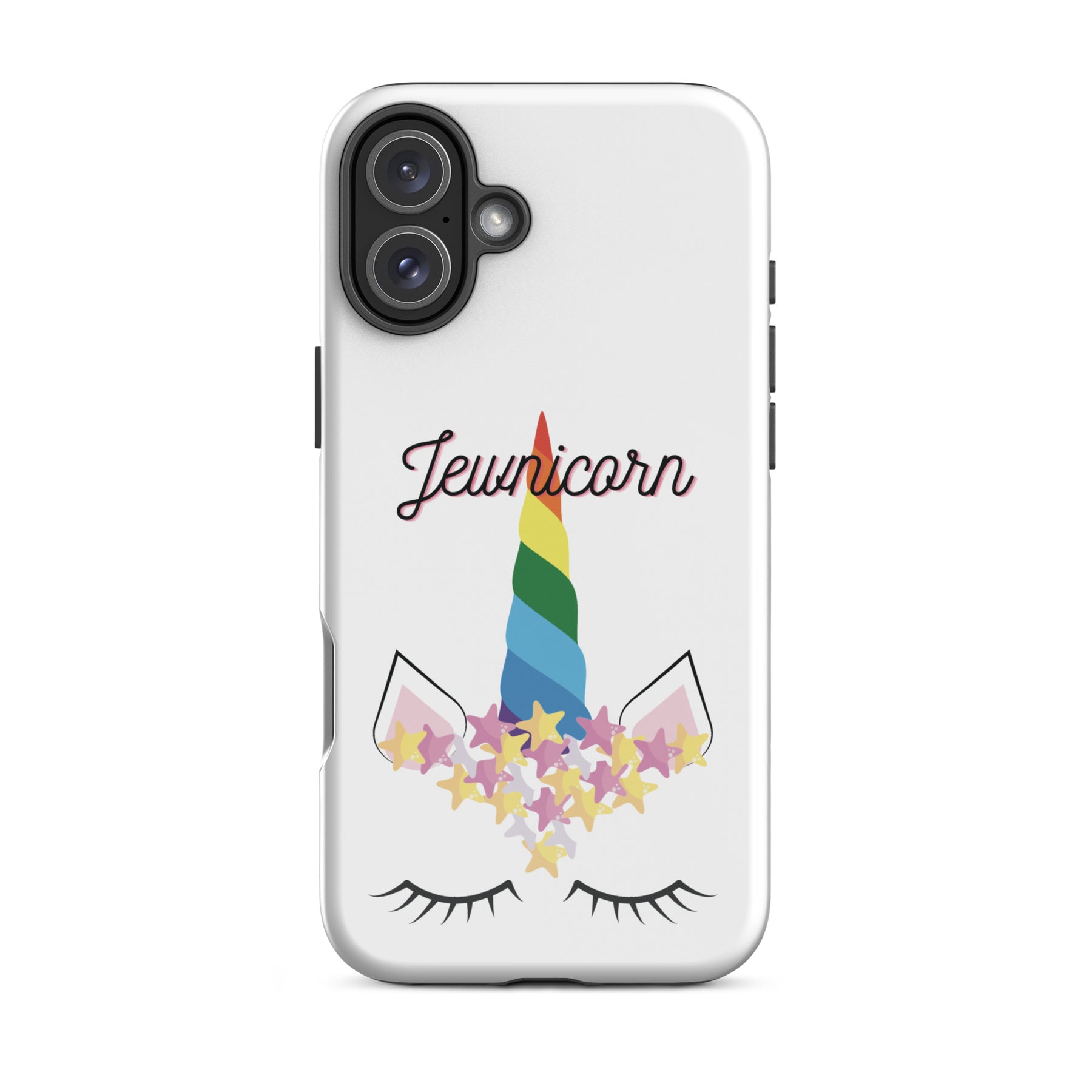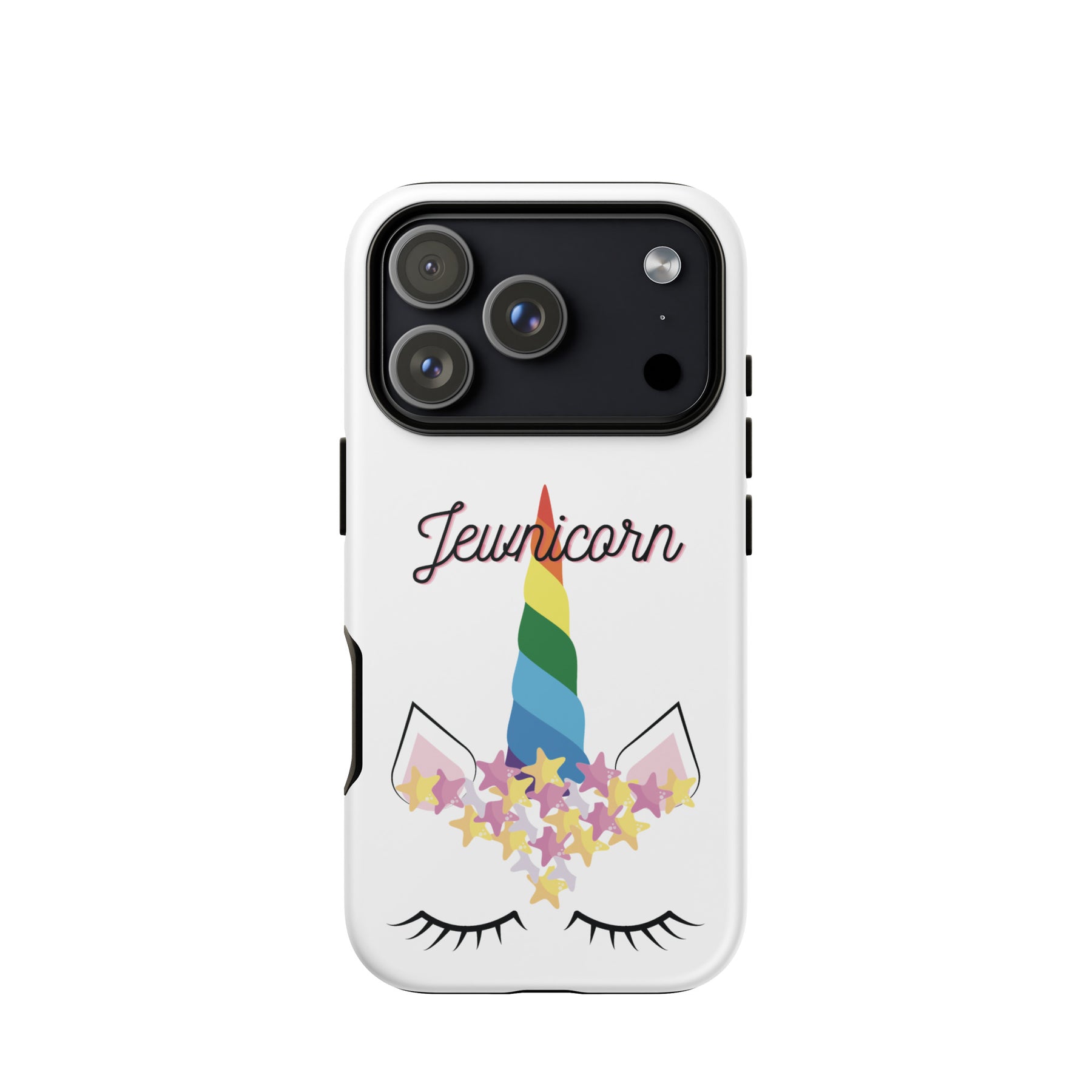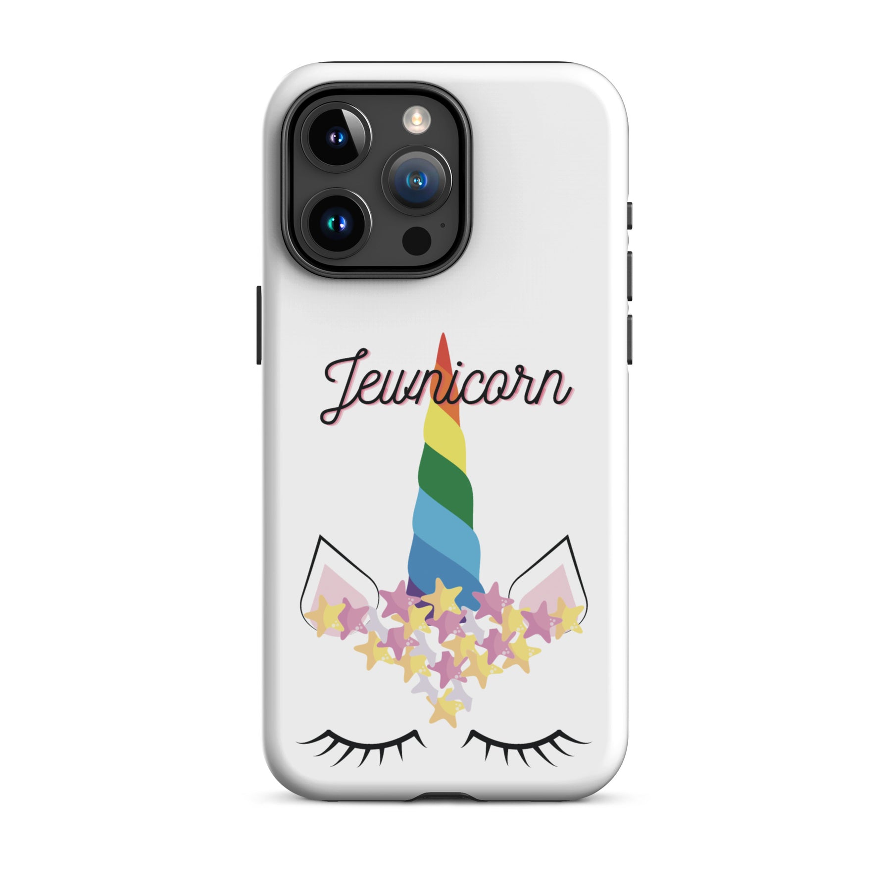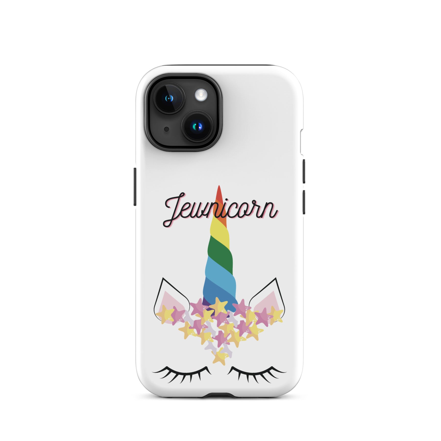 Give your phone a mix of charm and protection with the Jewnicorn Tough Case for iPhone®. The design features a cute unicorn face with soft closed eyes, pastel stars, and a bright rainbow horn. It’s playful, colorful, and brings a nice dose of personality to your everyday carry.