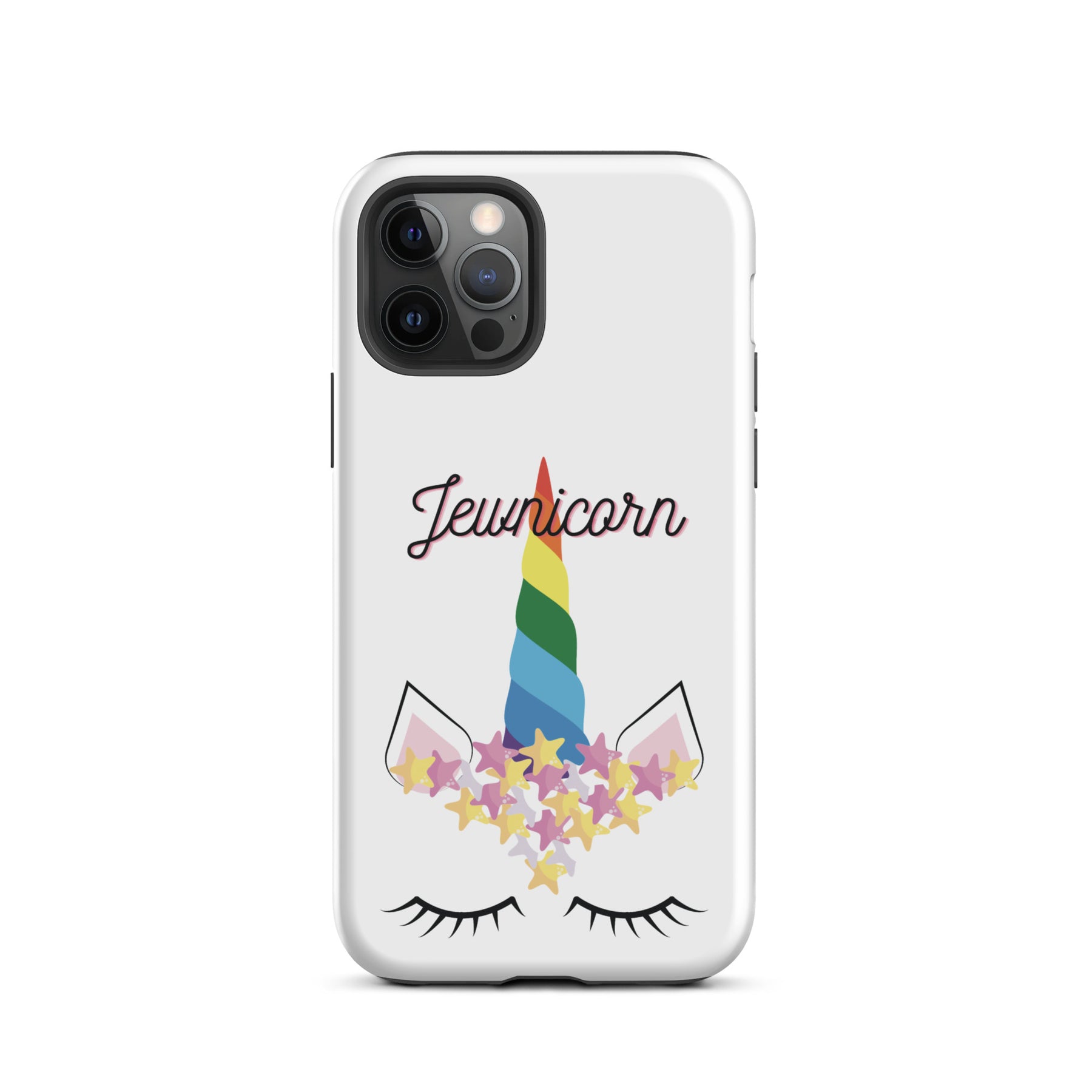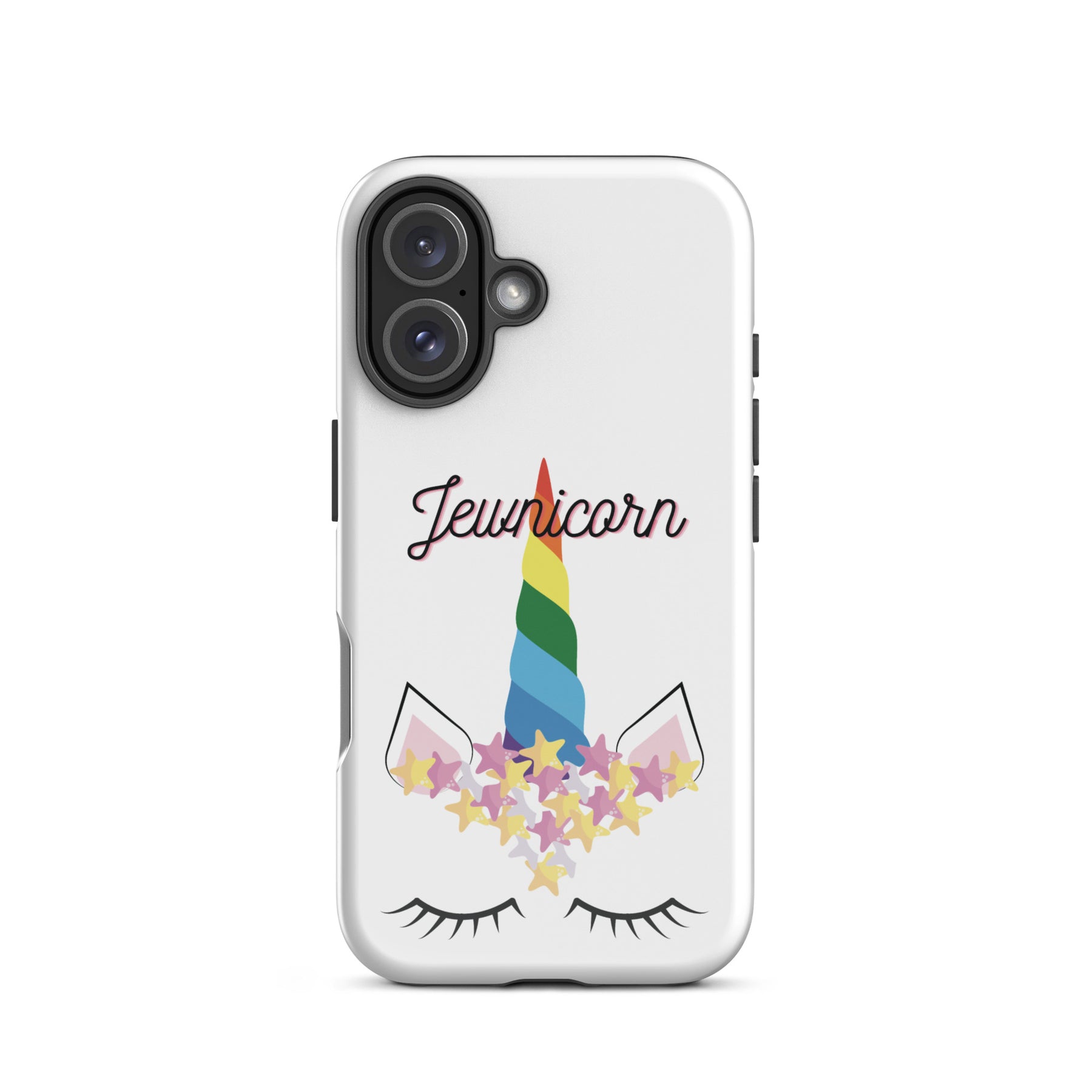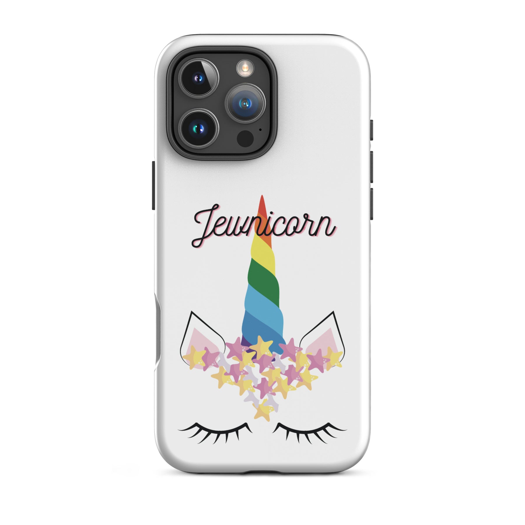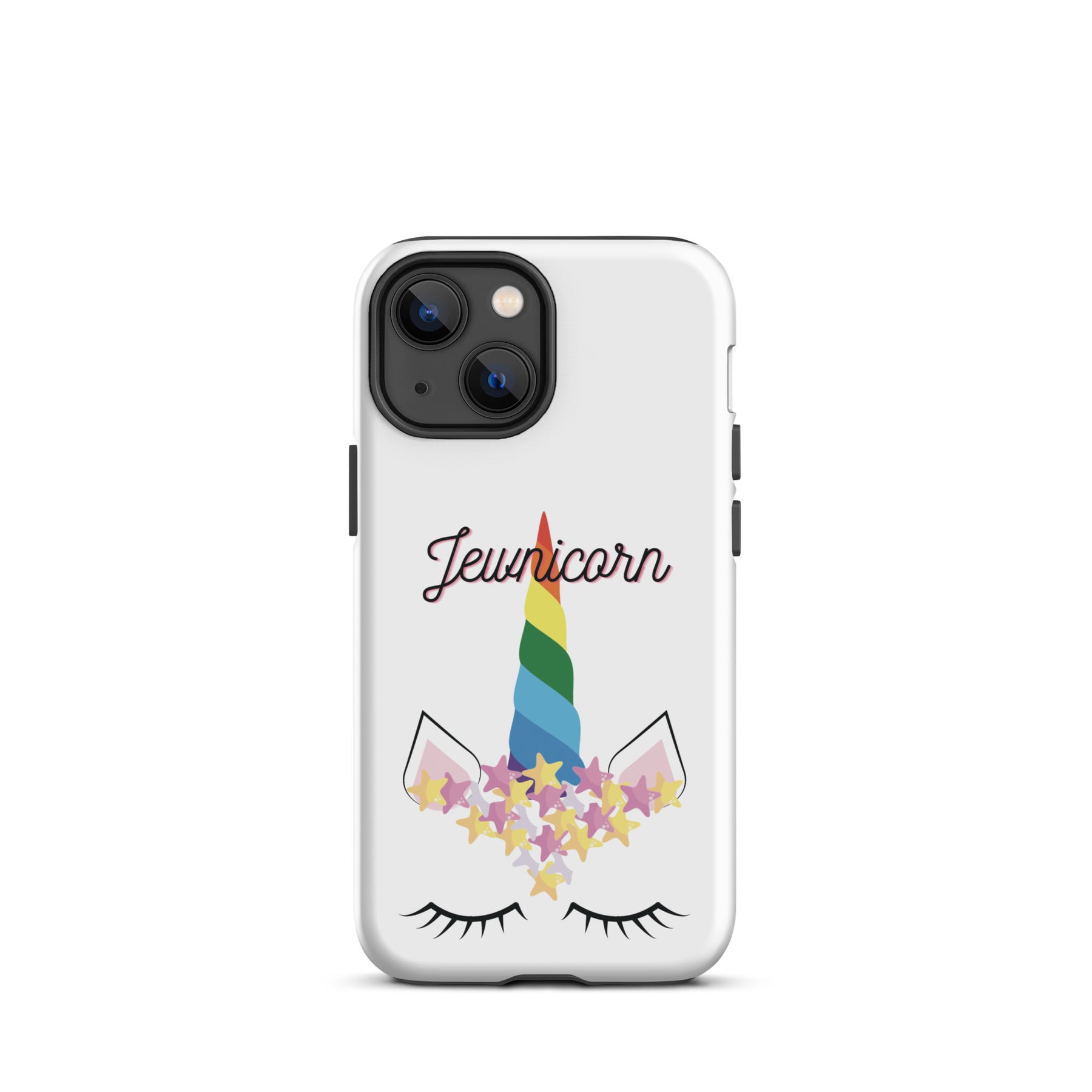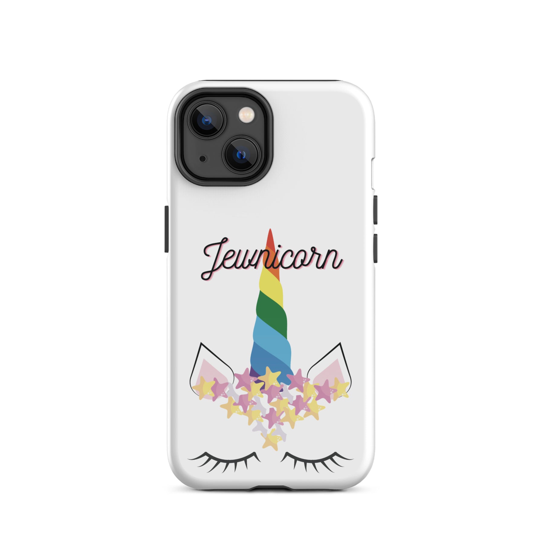 Give your phone a mix of charm and protection with the Jewnicorn Tough Case for iPhone®. The design features a cute unicorn face with soft closed eyes, pastel stars, and a bright rainbow horn. It’s playful, colorful, and brings a nice dose of personality to your everyday carry.