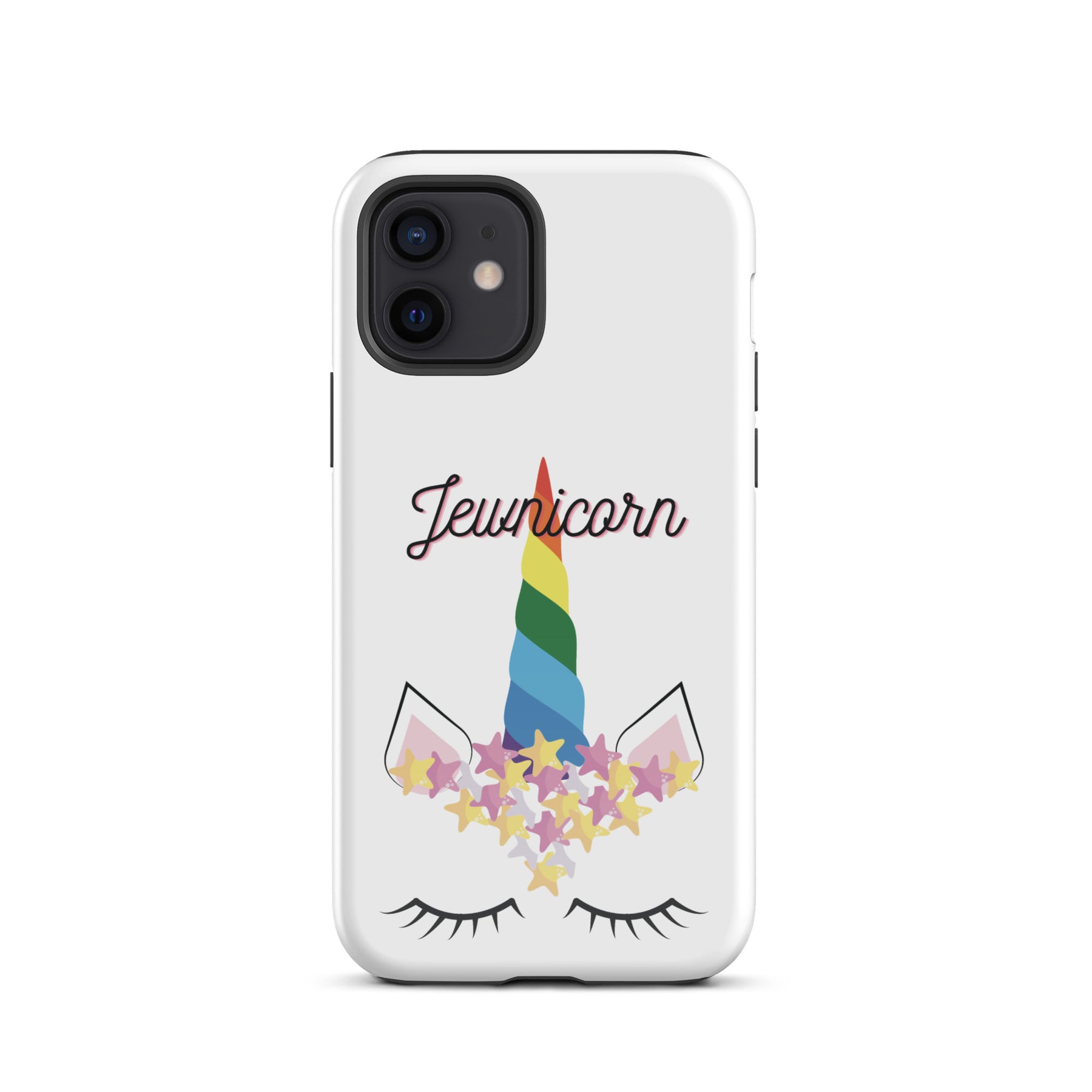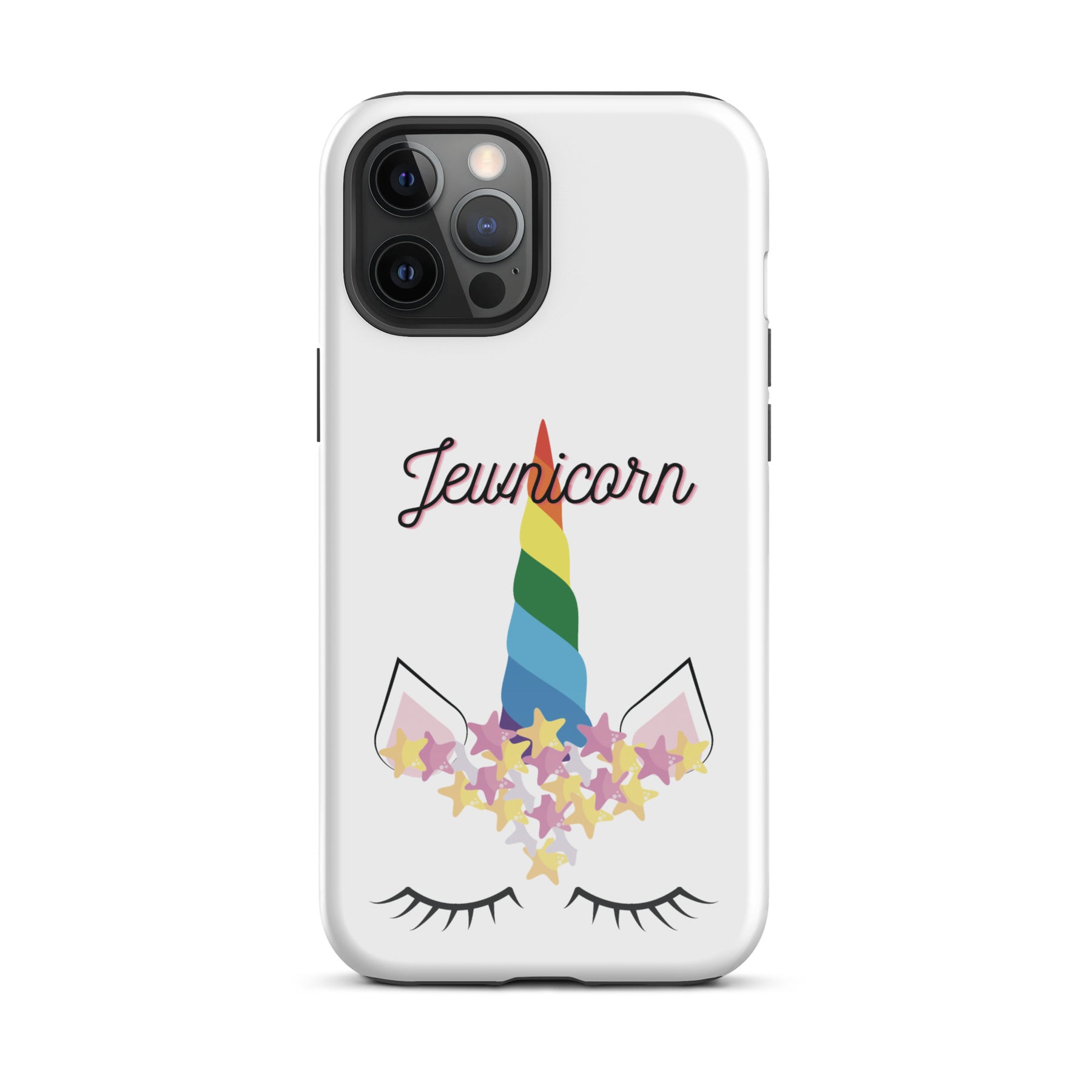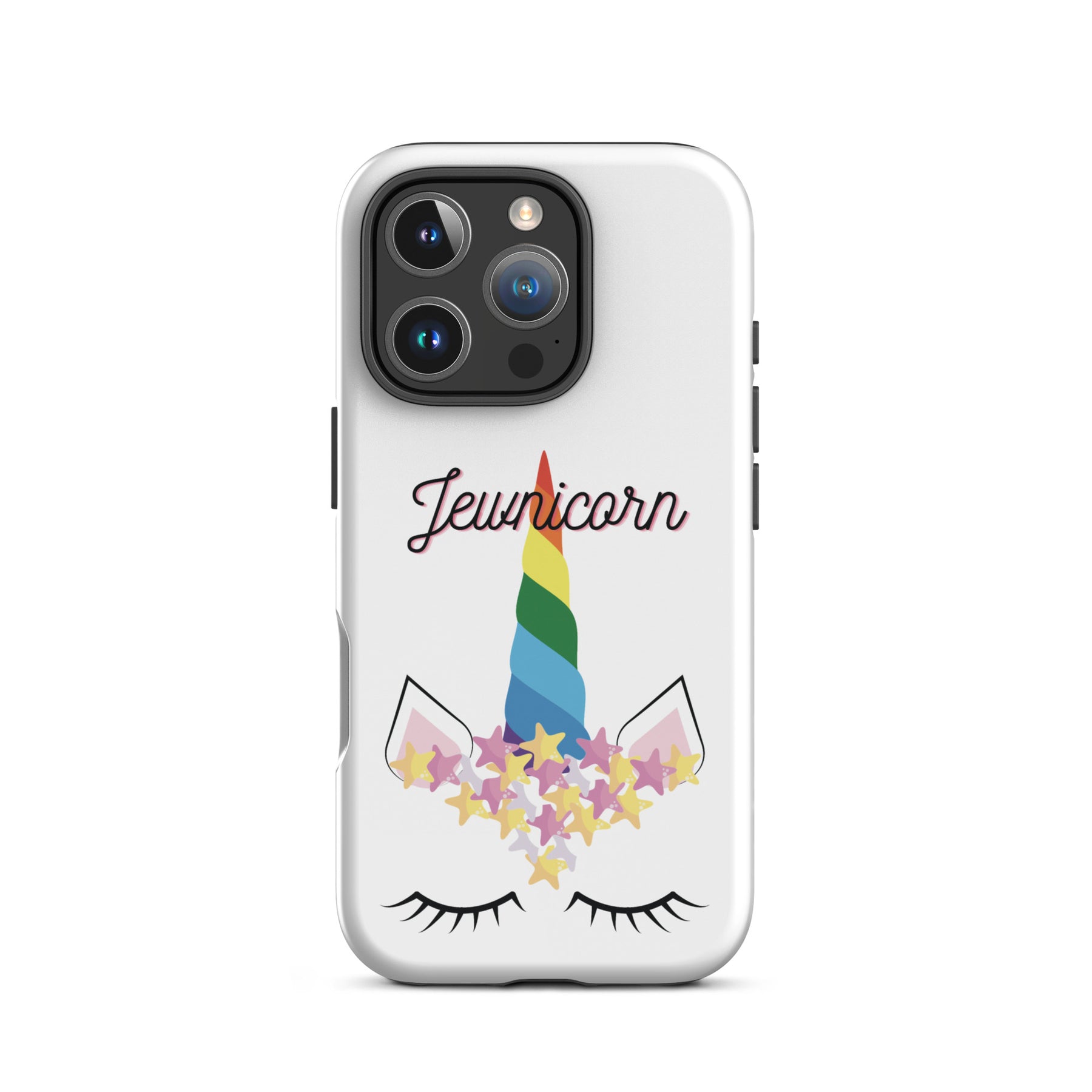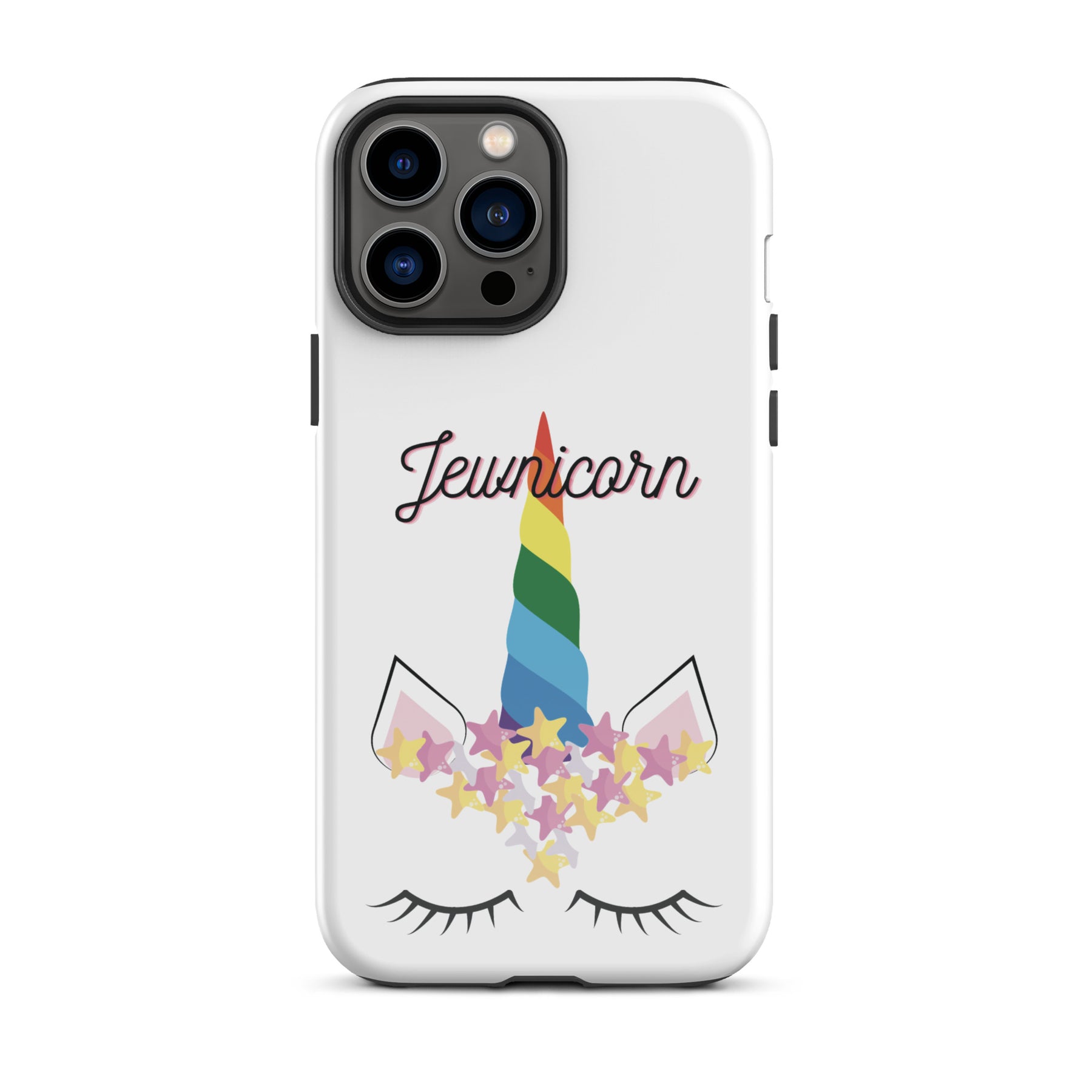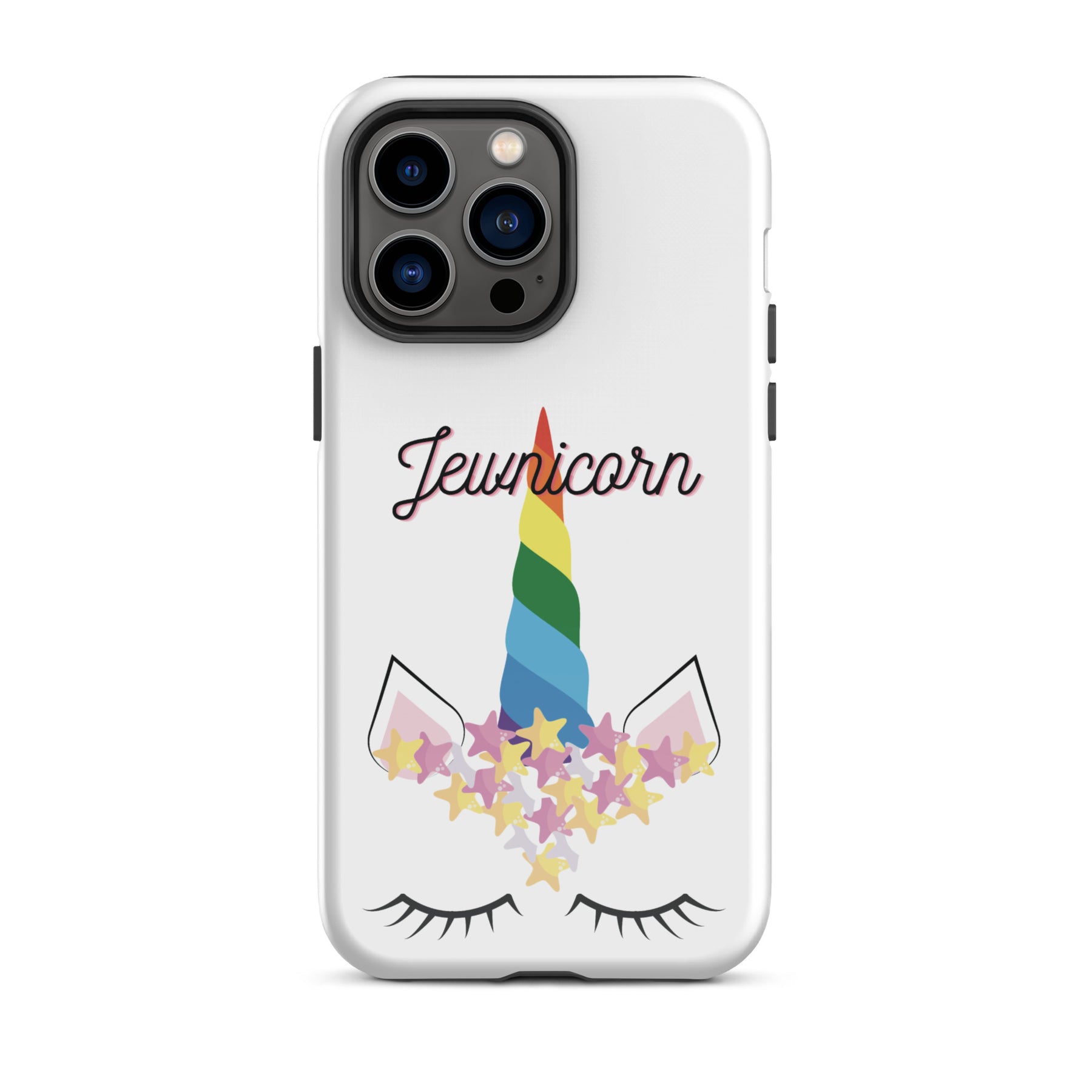 Give your phone a mix of charm and protection with the Jewnicorn Tough Case for iPhone®. The design features a cute unicorn face with soft closed eyes, pastel stars, and a bright rainbow horn. It’s playful, colorful, and brings a nice dose of personality to your everyday carry.