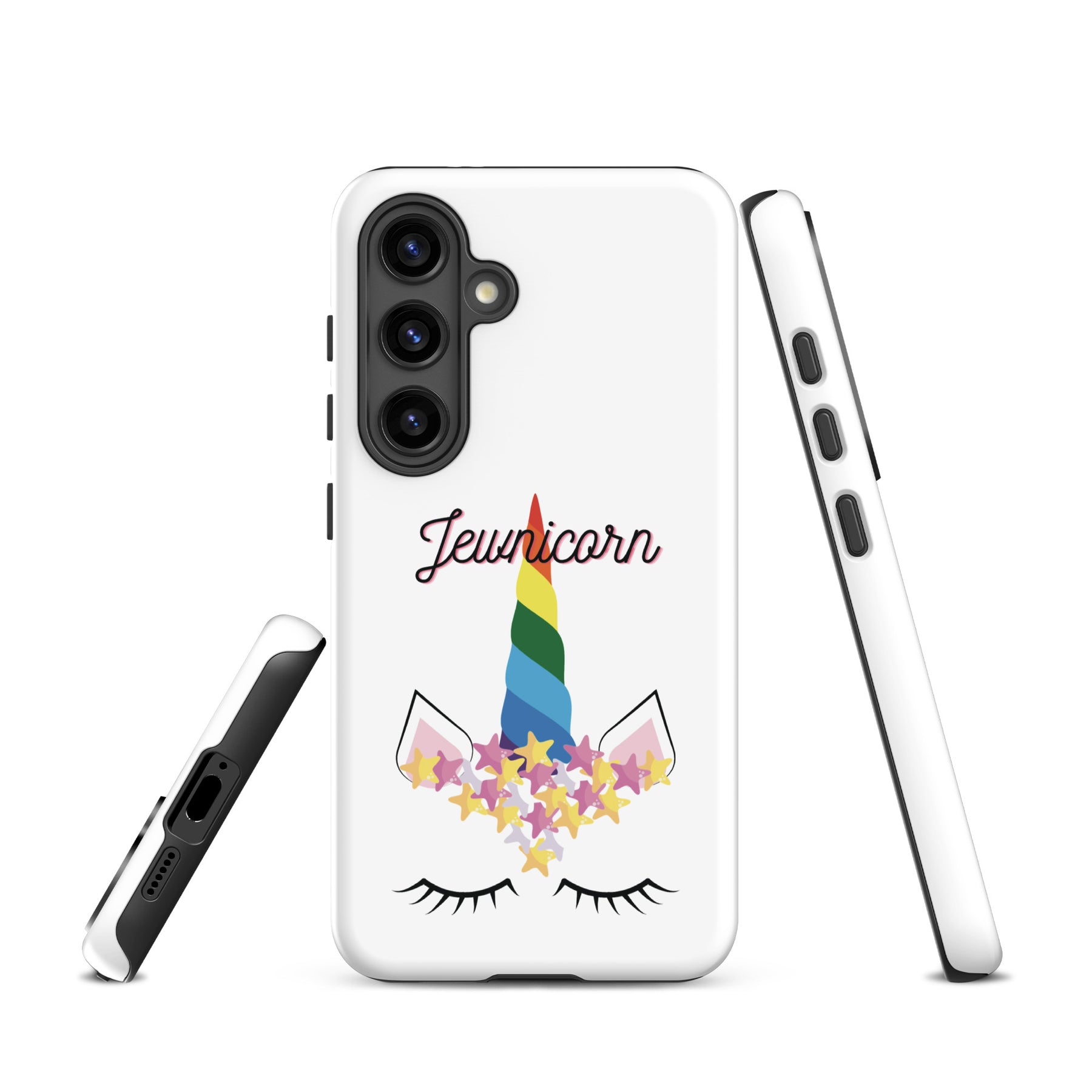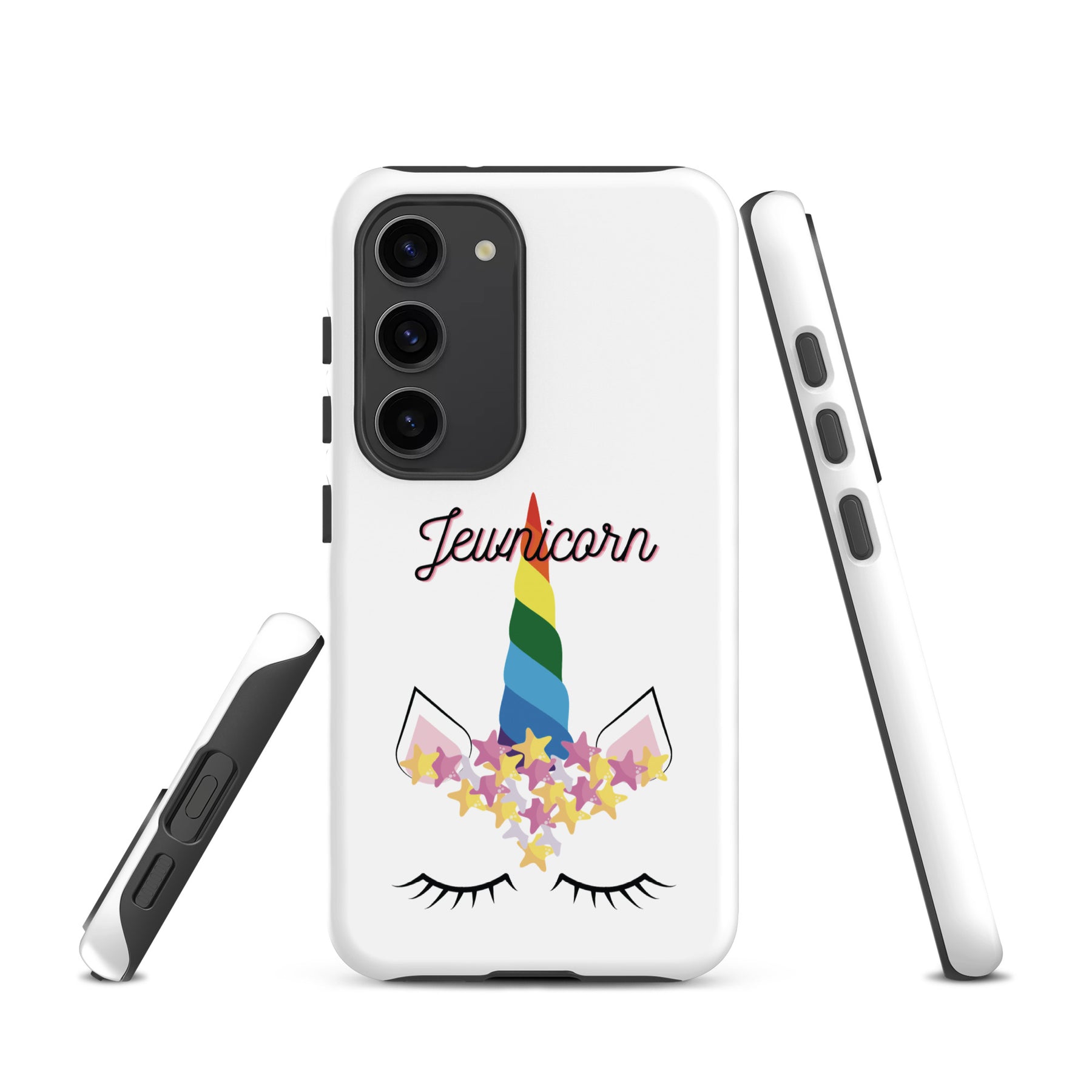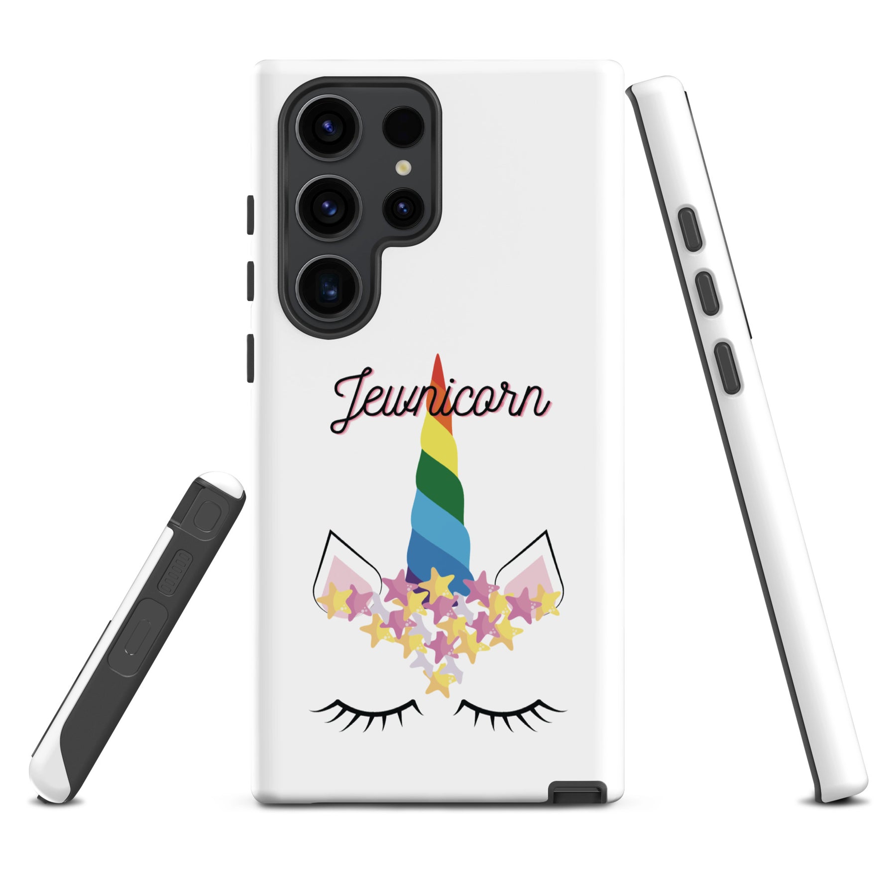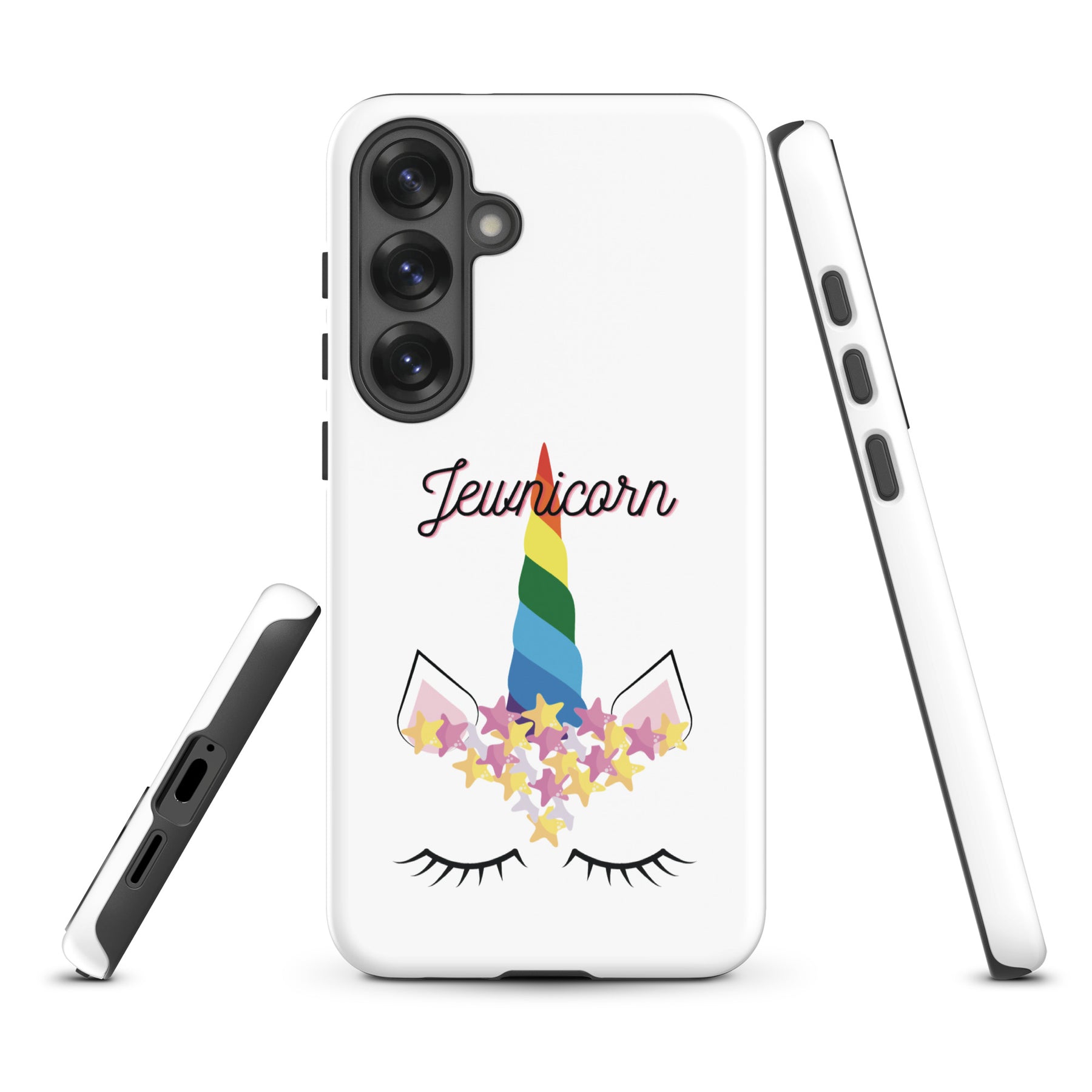 Give your Samsung phone real protection with a bright, cheerful twist. The Jewnicorn Tough Case features a sweet unicorn face with closed eyes, pastel stars, and a rainbow horn. It’s cute, colorful, and instantly adds personality to your phone.