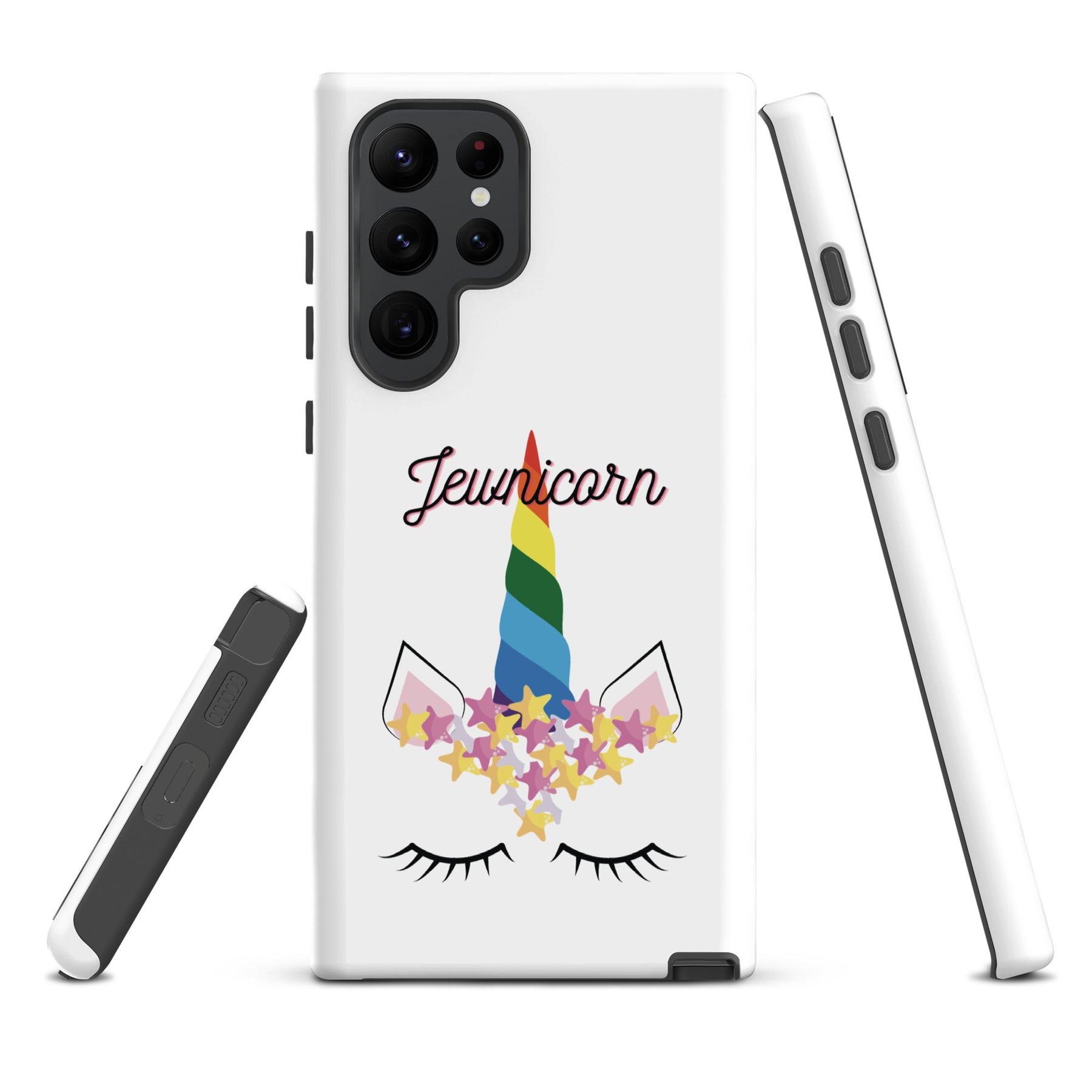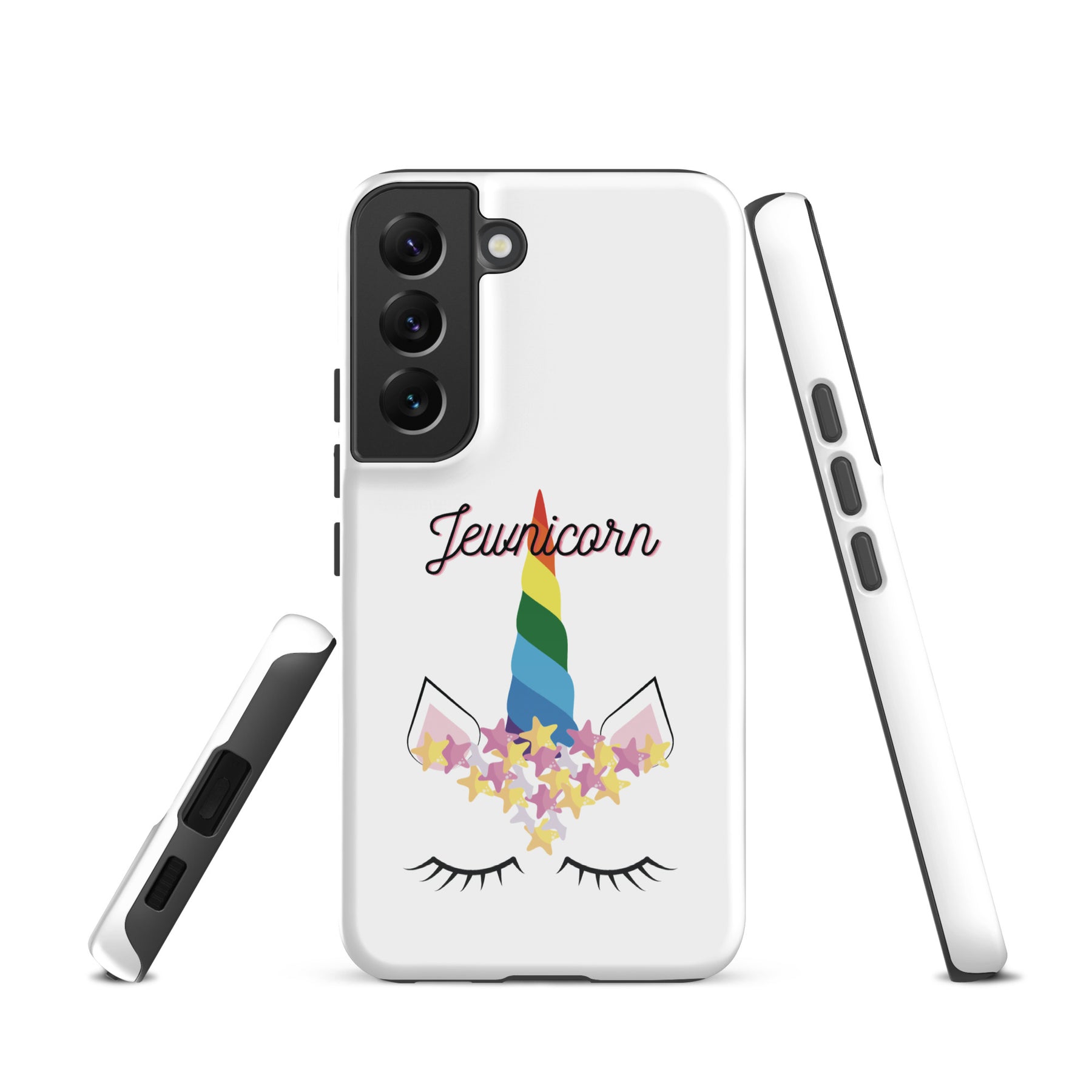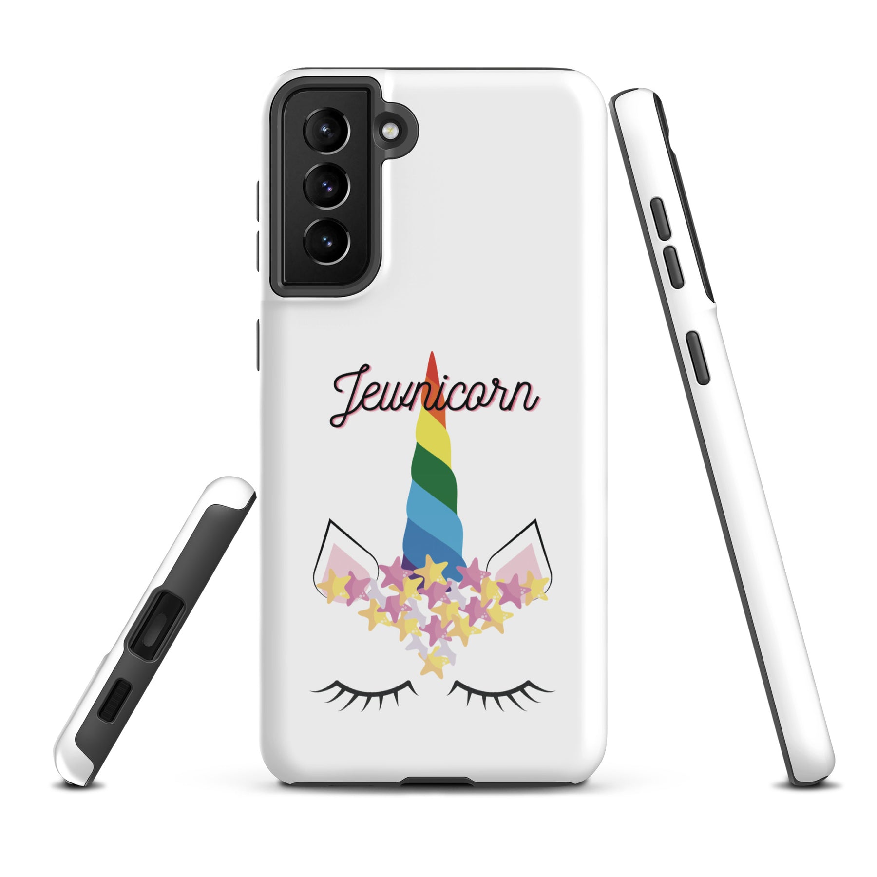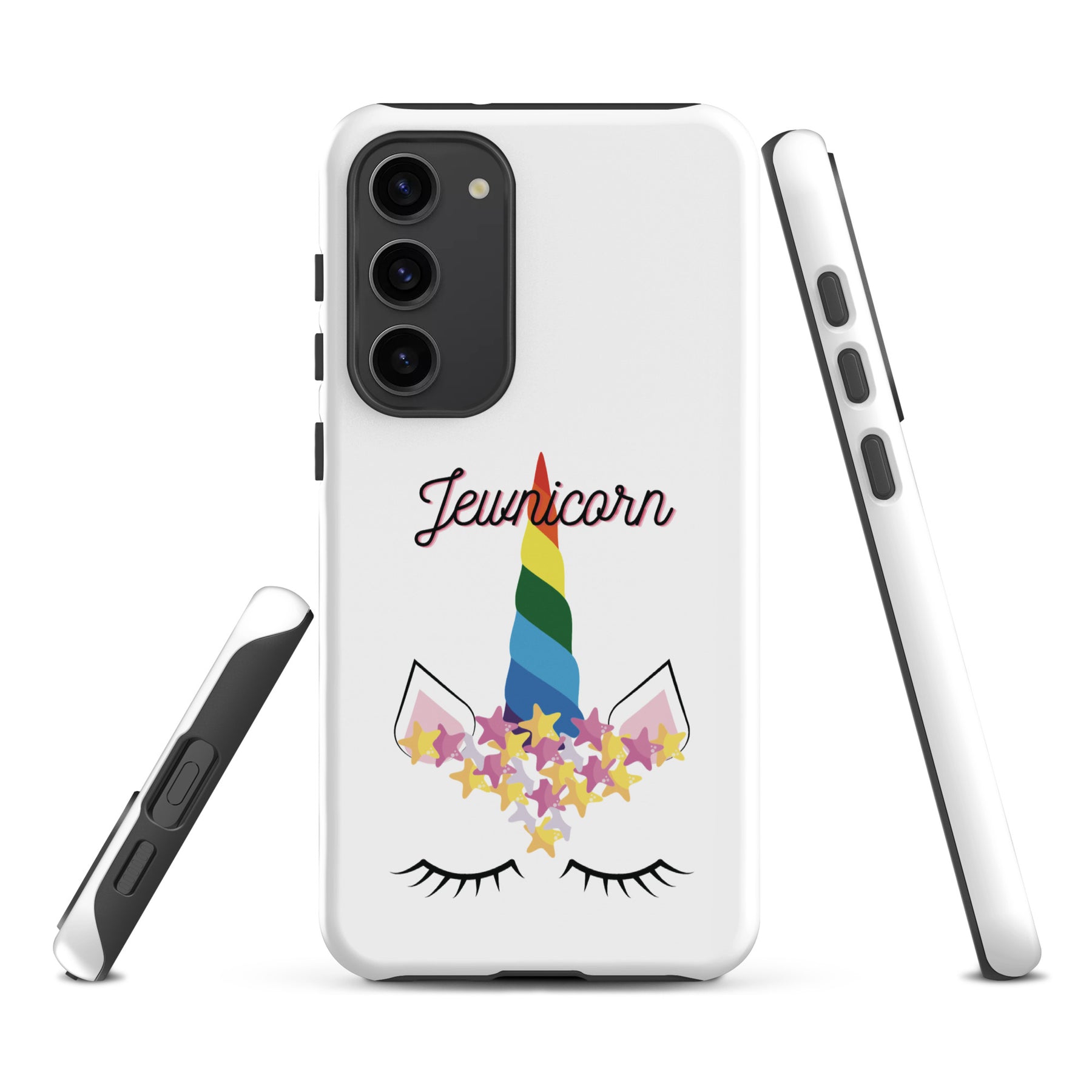 Give your Samsung phone real protection with a bright, cheerful twist. The Jewnicorn Tough Case features a sweet unicorn face with closed eyes, pastel stars, and a rainbow horn. It’s cute, colorful, and instantly adds personality to your phone.