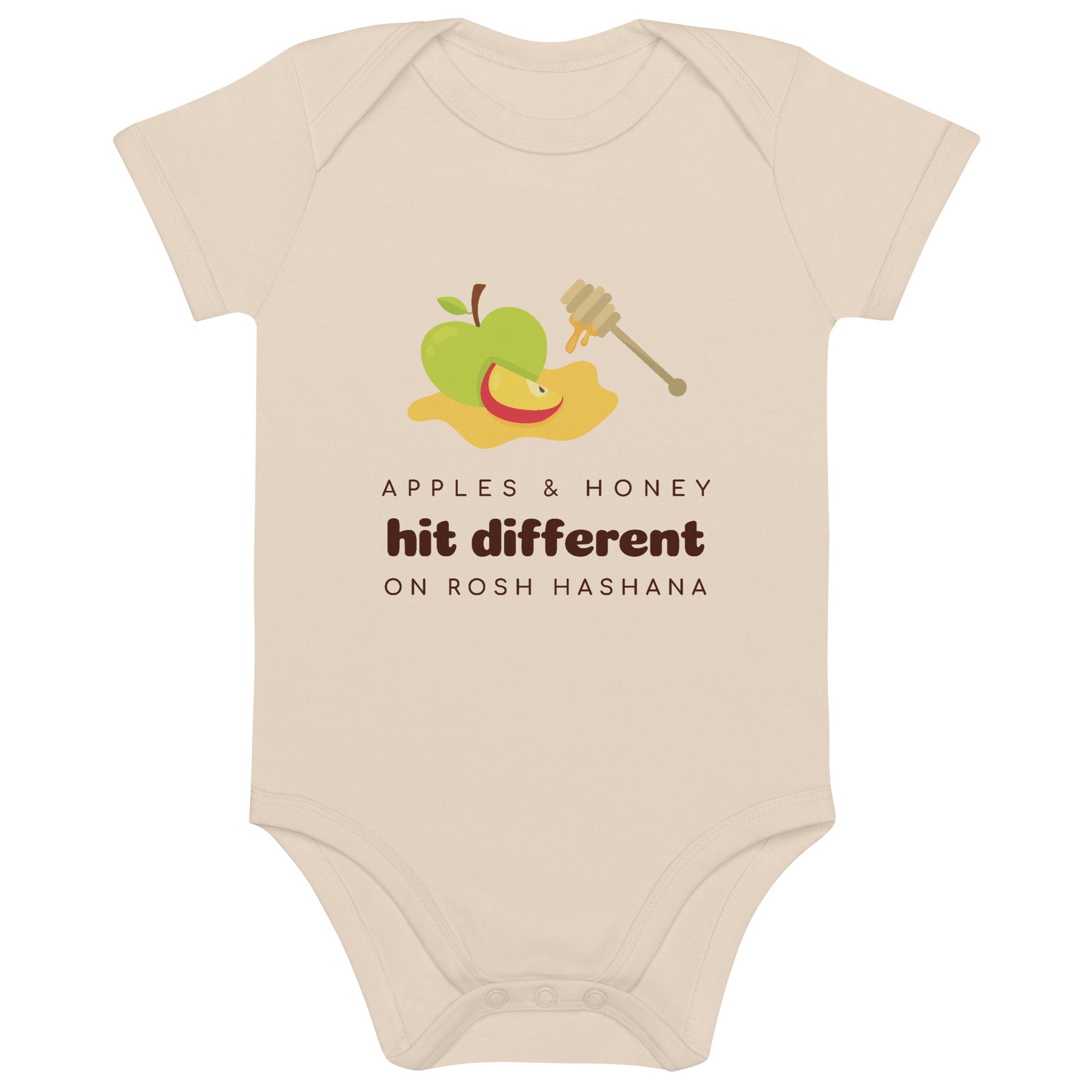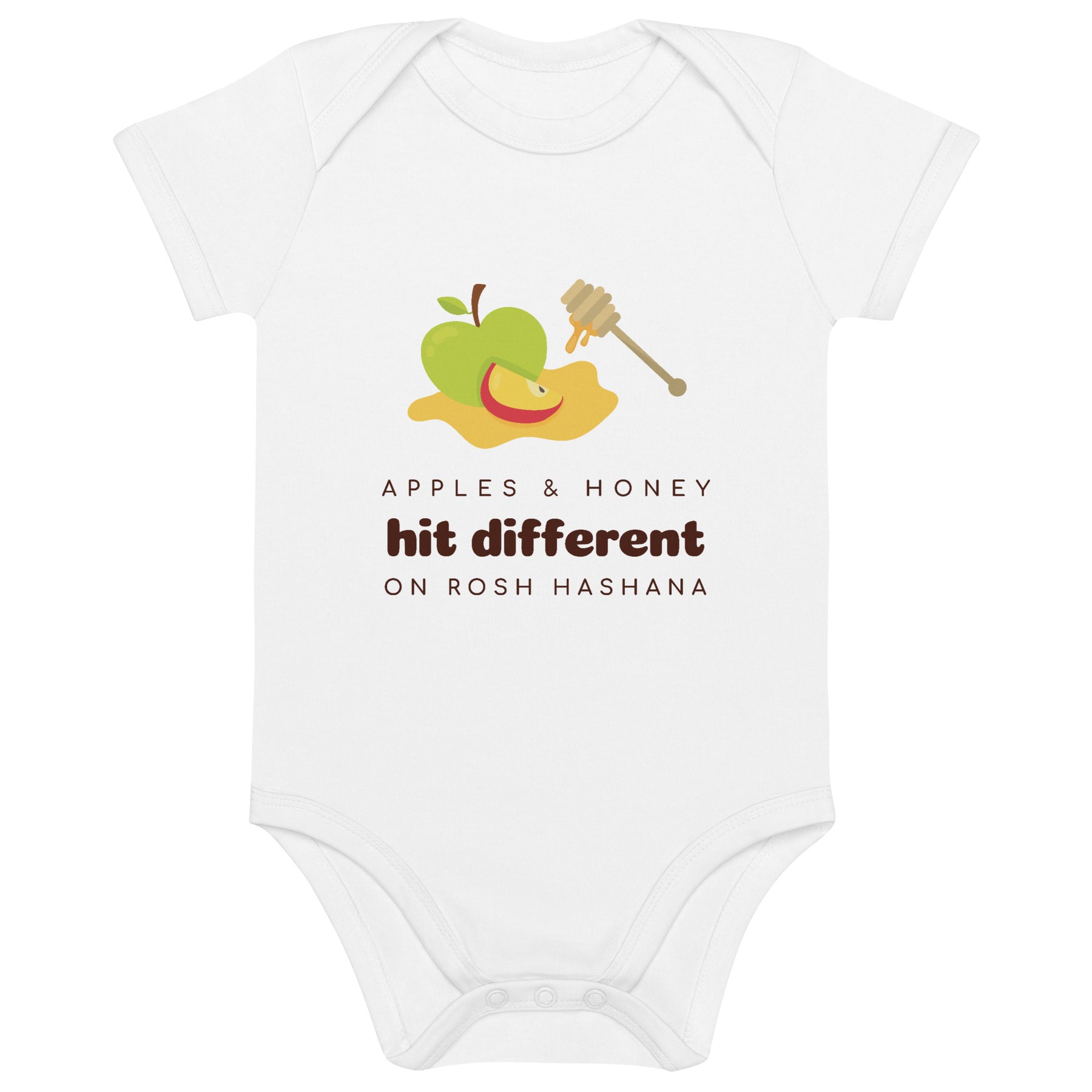 Celebrate a sweet New Year in the softest, most meaningful way with our Apples & Honey organic baby bodysuit. Made from 100% certified organic cotton, it’s gentle on delicate skin and kind to the planet — perfect for marking baby’s first Rosh Hashanah or gifting to new parents in your Jewish community.