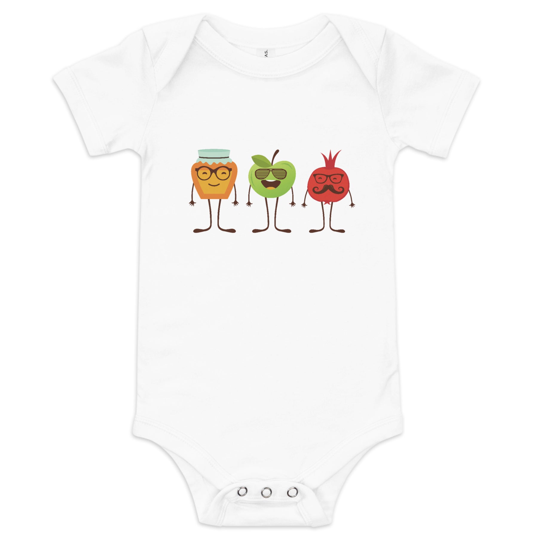 Tiny human, big holiday cuteness. The Honey Apple Pomegranates Baby One Piece brings sweet Rosh HaShana vibes to your little one with a cheerful apple, a happy jar of honey, and a pomegranate full of personality. It’s adorable, festive, and the perfect Shana Tova outfit for the Jewish New Year.