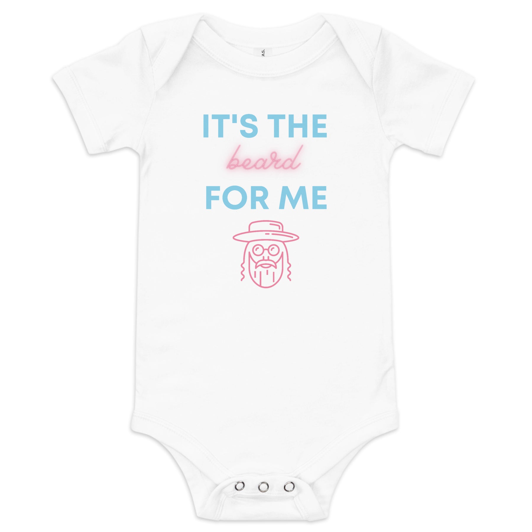 If you’re looking for a funny Jewish baby onesie, an It’s The Beard For Me baby outfit, a Jewish humor baby bodysuit, a Hasidic beard baby design, or a sweet Jewish baby gift, this one is a winner.