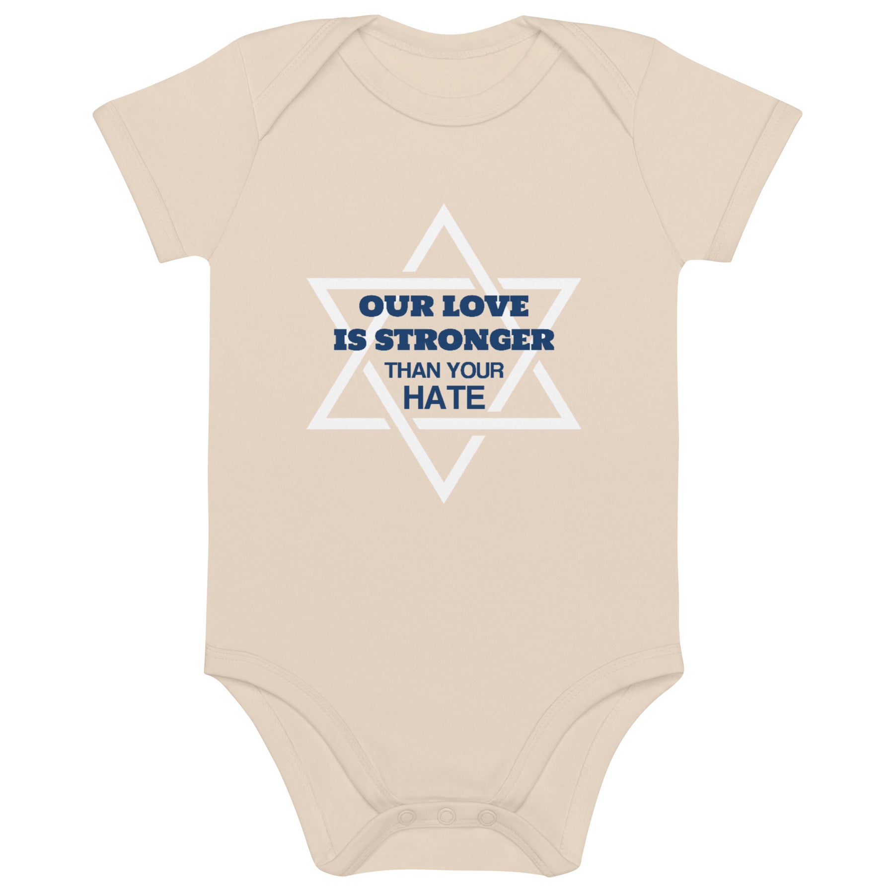 Wrap your little one in comfort and meaning with this Organic Cotton Baby Bodysuit featuring the message “Our Love Is Stronger Than Your Hate.” Made from ultra-soft, breathable organic cotton, it’s gentle on delicate skin and strong in spirit.
