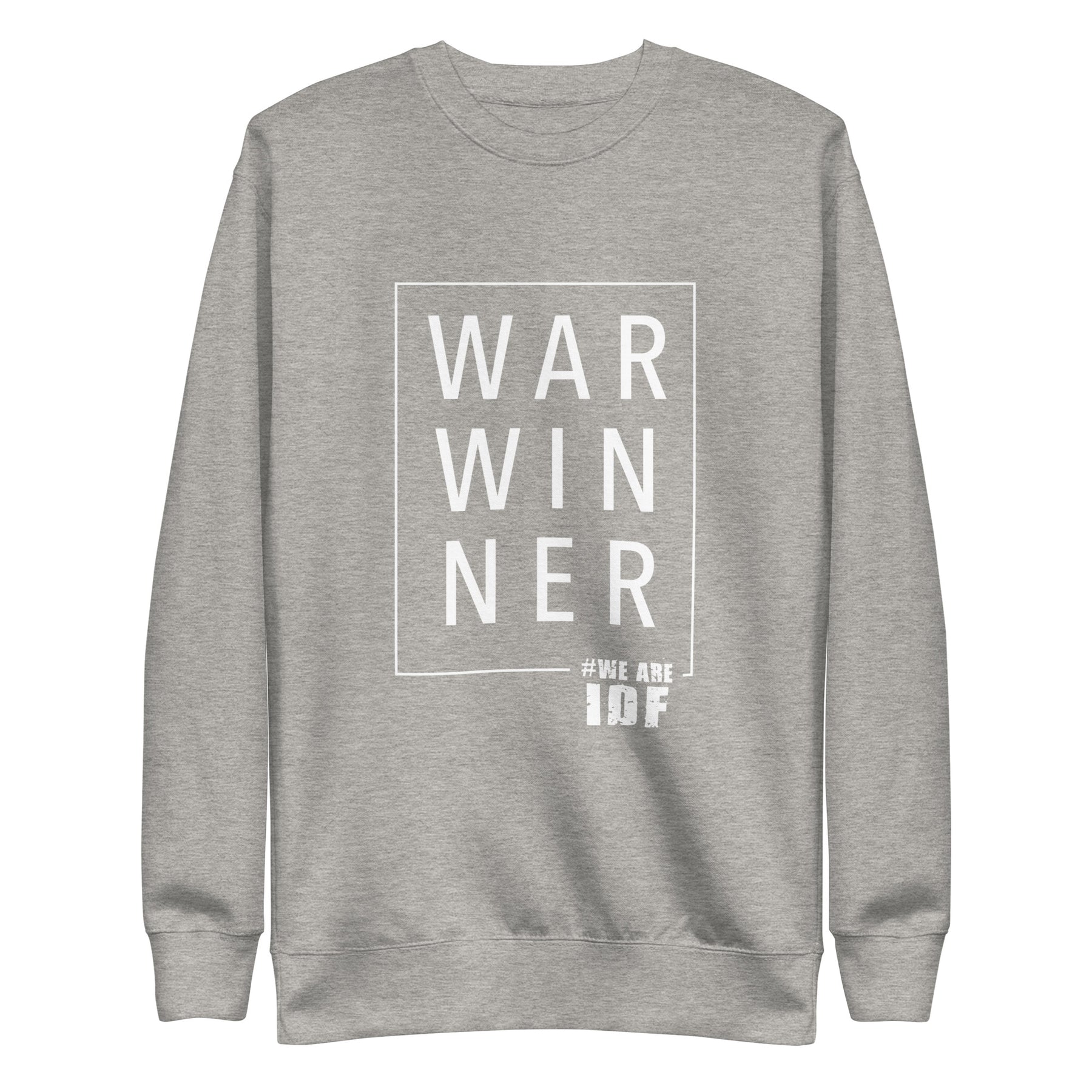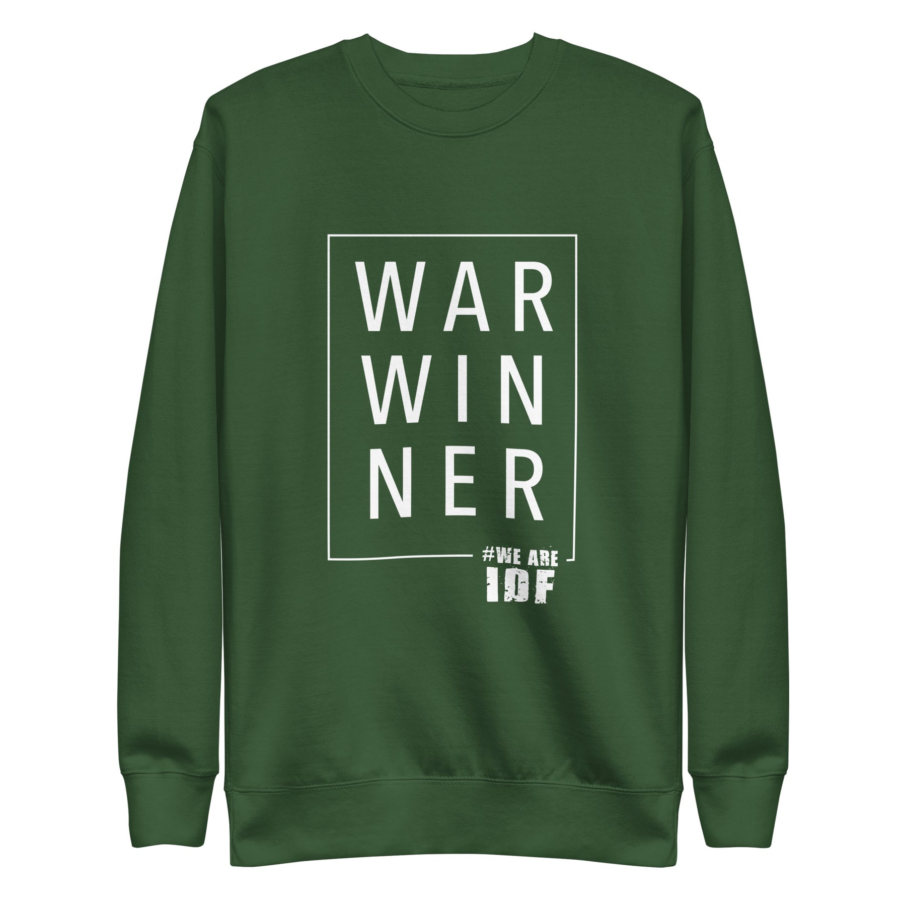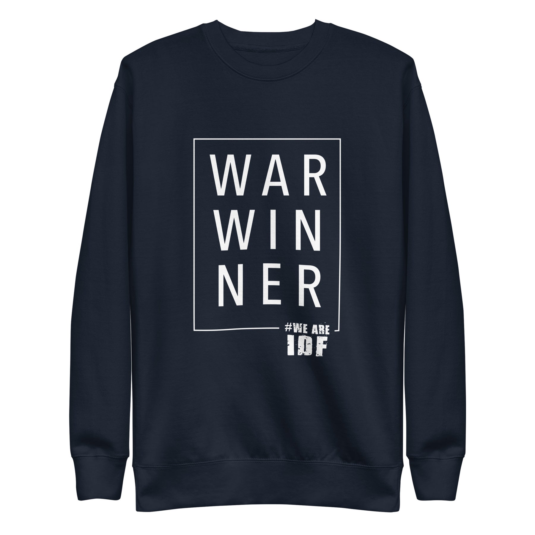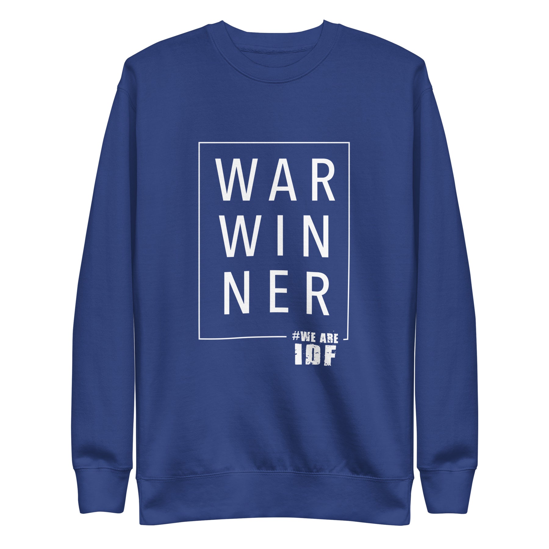 The Premium Sweatshirt | Israel War Winner offers a powerful blend of comfort and statement-making style for true supporters of the Israel Defense Forces. This pro Israel apparel features a prominent “WAR WINNER” graphic and “#WE ARE IDF” slogan, paying tribute to the IDF victory in the Gaza conflict 2025.