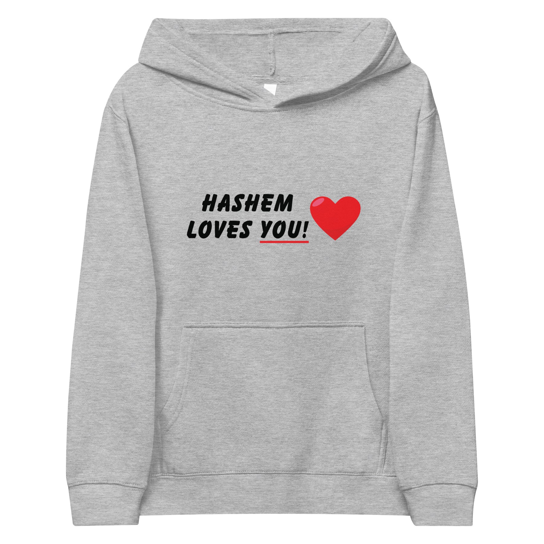 The Kids Fleece Hoodie | HaShem Loves You is a wonderful blend of warmth, style, and divine love, providing your child with comfort and spiritual inspiration.
