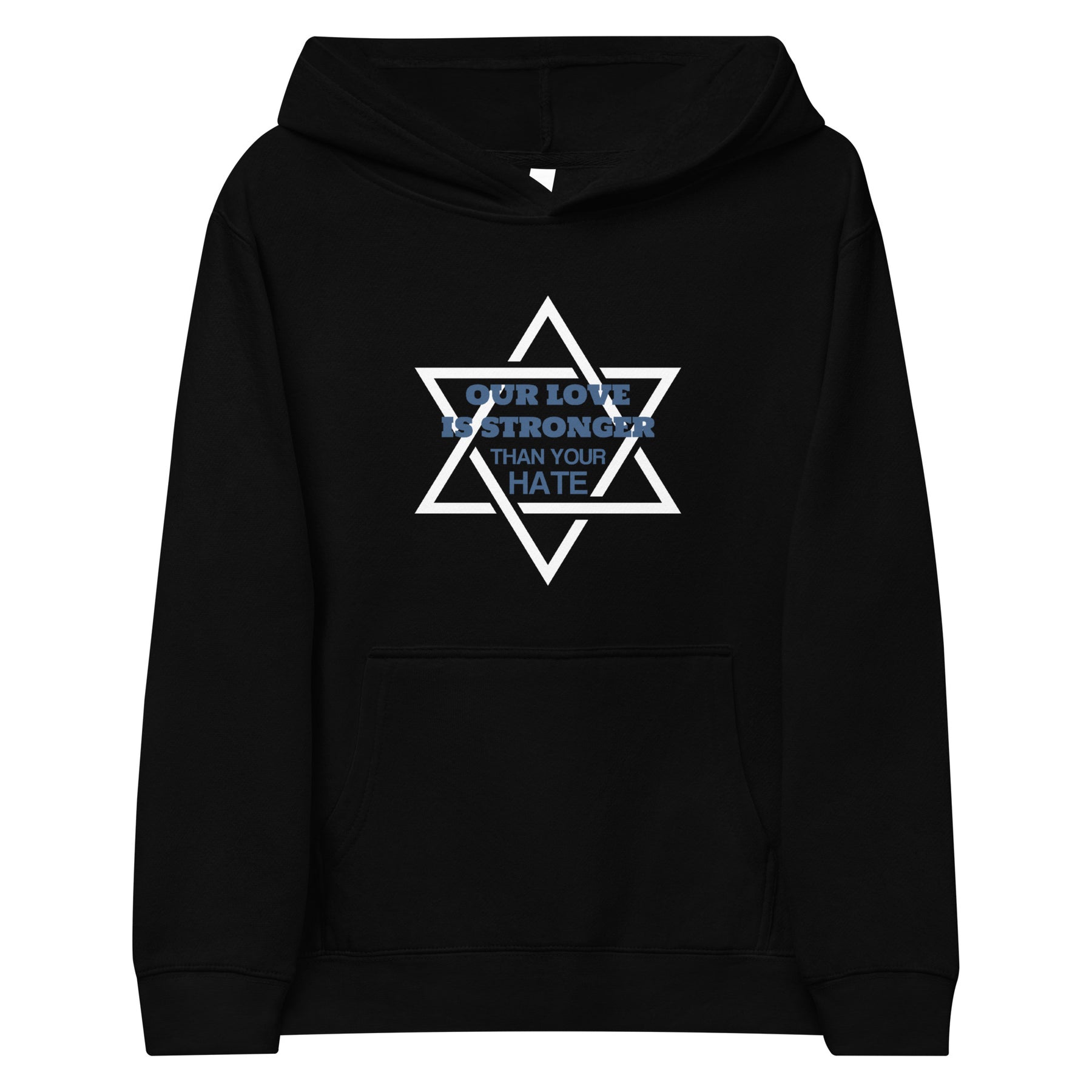With bold lettering and a strong message rooted in Jewish pride, resilience, and community, this hoodie is ideal for kids who want to wear their values. Whether it’s for school, synagogue, or family gatherings, it’s a powerful and cozy way to stand up against antisemitism with love.
