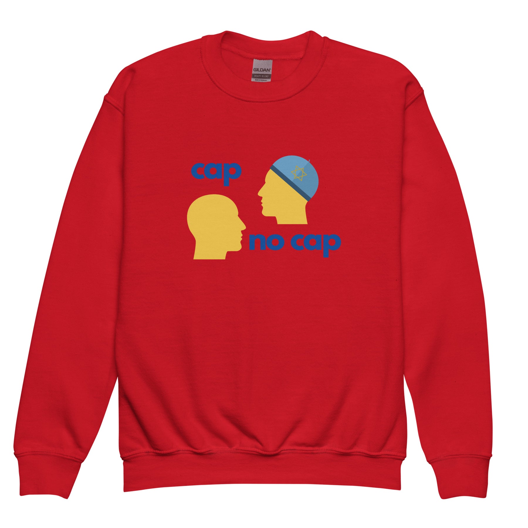 Cozy fit. Honest energy. The Cap No Cap Youth Sweatshirt turns a phrase kids hear everywhere into a clever Jewish visual joke. Cap on, cap off, the truth stays the same. Simple, funny, and easy to get.