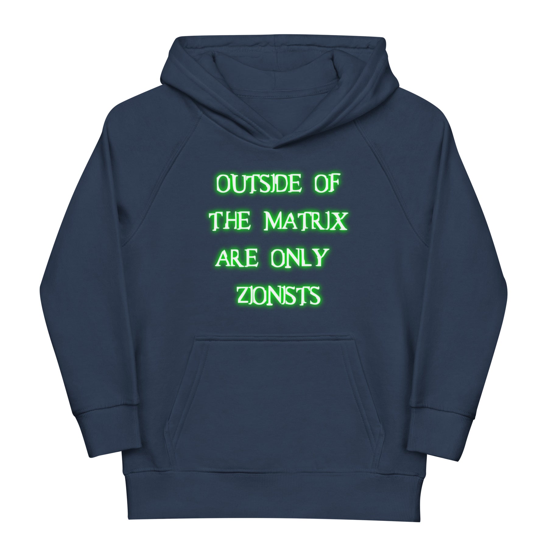 Enter the Matrix with our Kids Eco Hoodie featuring a bold design that says “Outside the Matrix, only Zionists remain.” 🌿💻✨ Eco-friendly, stylish, and perfect for young rebels. 🌍🕶️ #MatrixVibes #EcoChic #ZionistPower