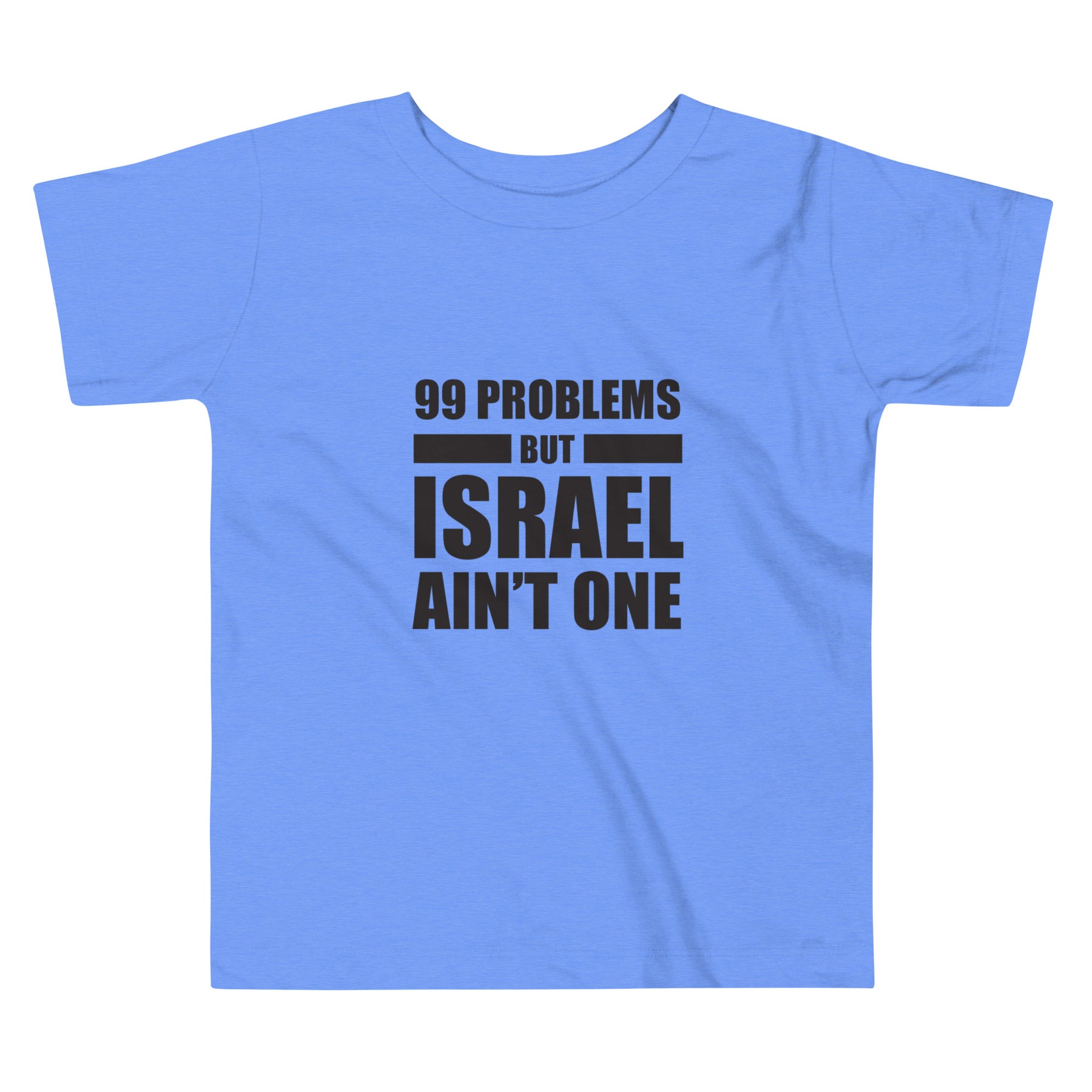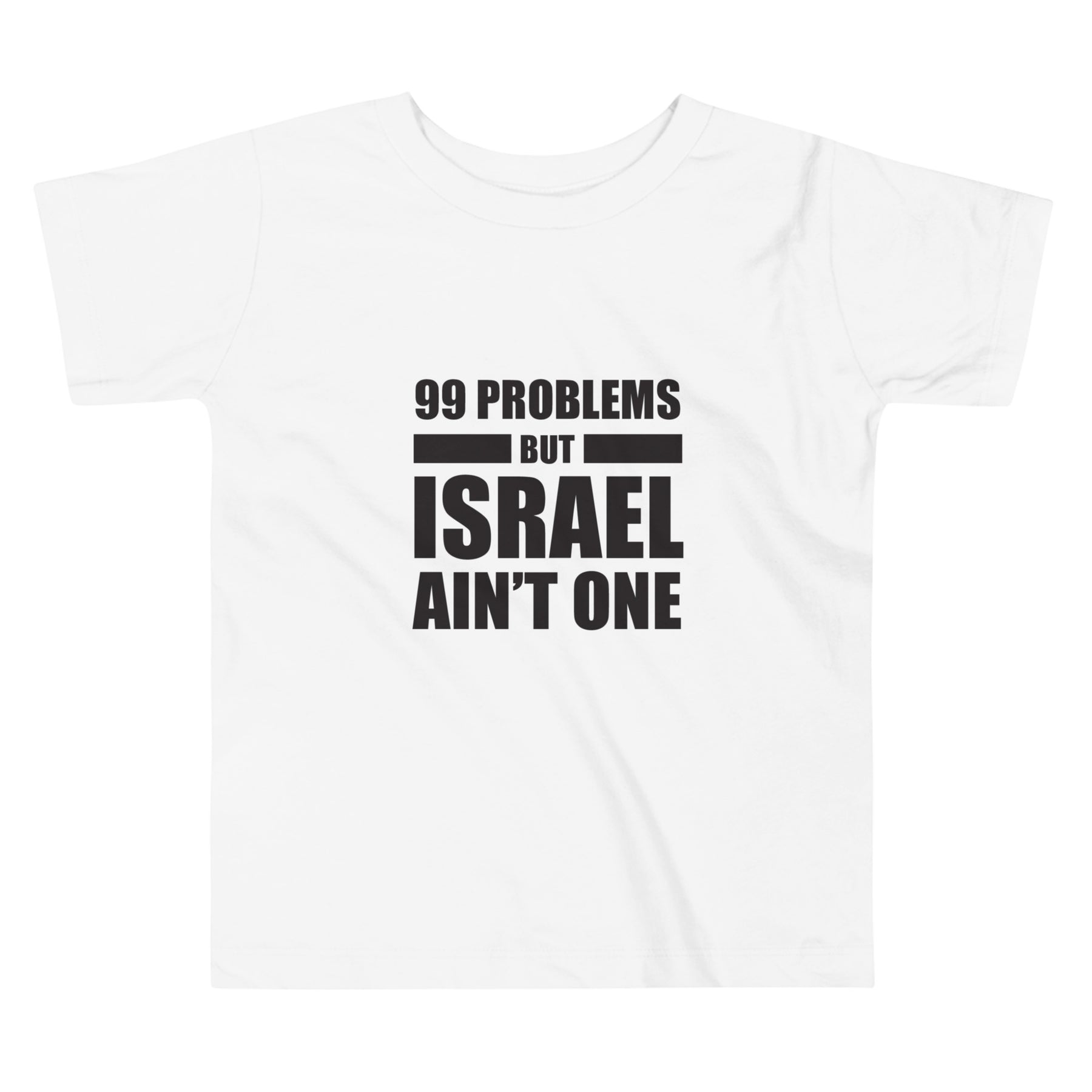 Big message for little voices. The “99 Problems But Israel Ain’t One” Toddler Short Sleeve Tee is the perfect way to dress your little one in soft comfort and bold Jewish pride. Designed for the tiniest supporters of Israel, this tee makes a proud, playful statement at home, at the park, or during community events.