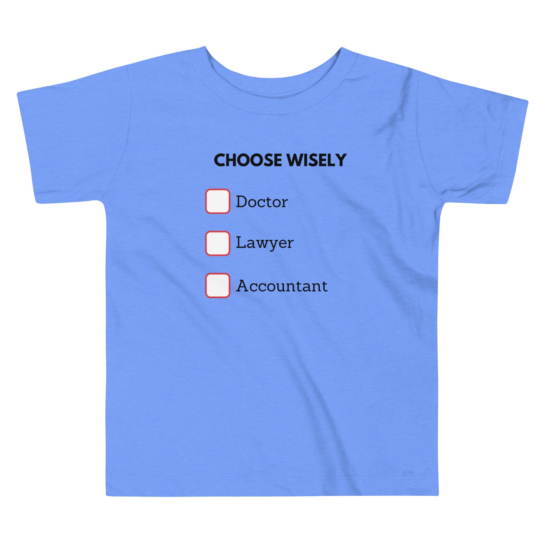 The Choose Wisely Toddler Short Sleeve Tee brings classic Jewish humor to the youngest members of the family. With its simple checklist design, it playfully hints at thoughtful decision-making, something toddlers may not master yet, but parents definitely recognize.