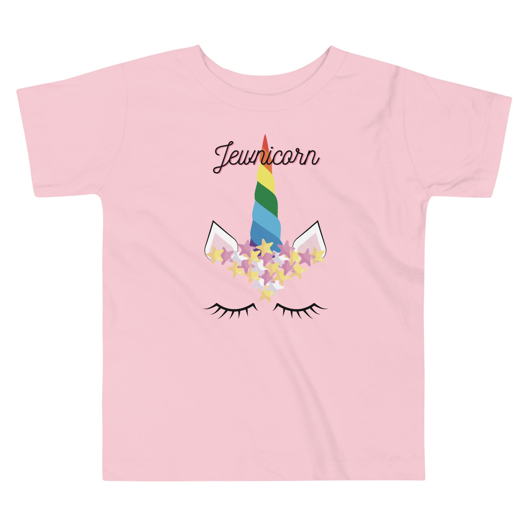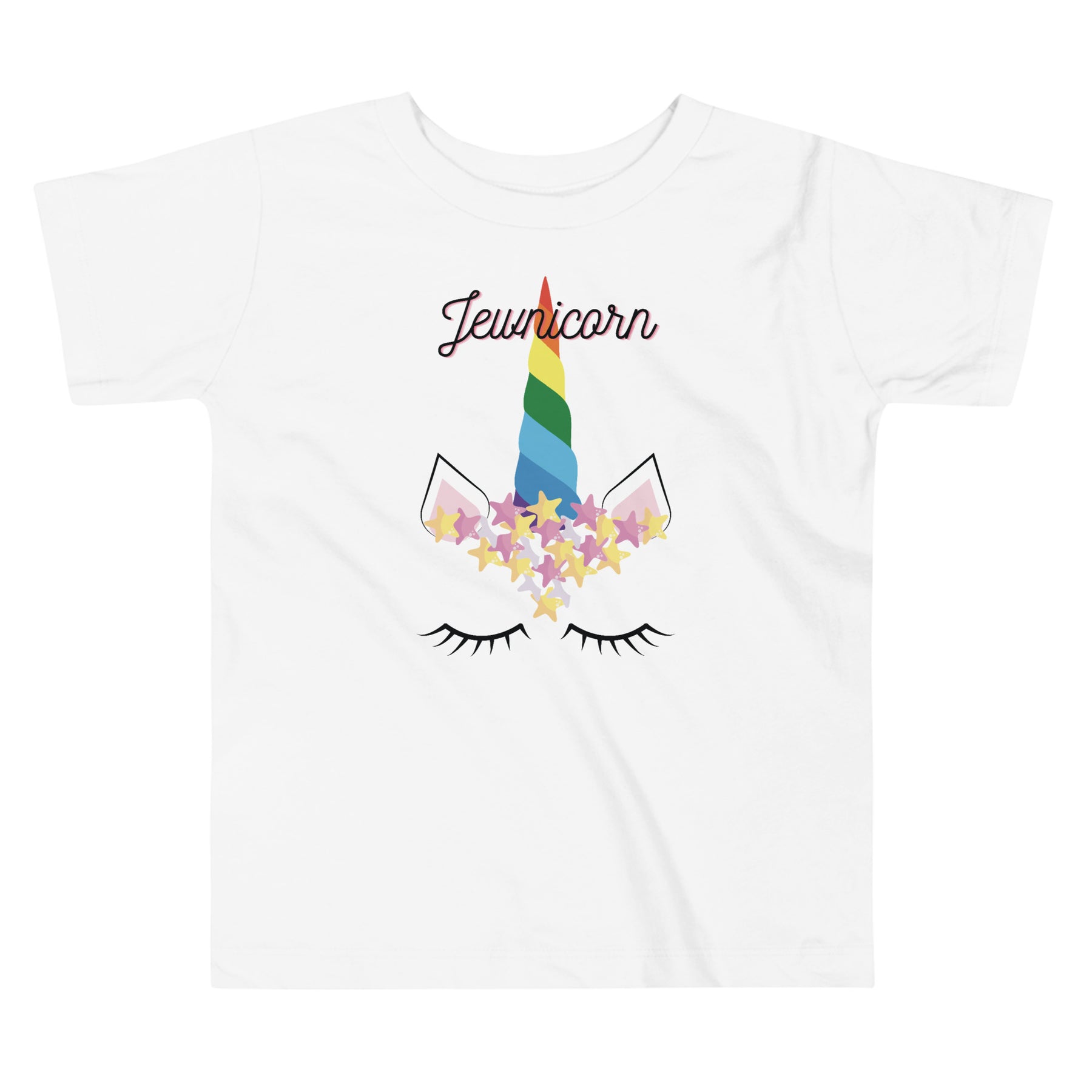 Let your little one sparkle with Jewish pride in this adorable Jewnicorn Toddler Tee. With a colorful unicorn-meets-Star-of-David design, it’s made for toddlers who bring magic and mischief wherever they go.