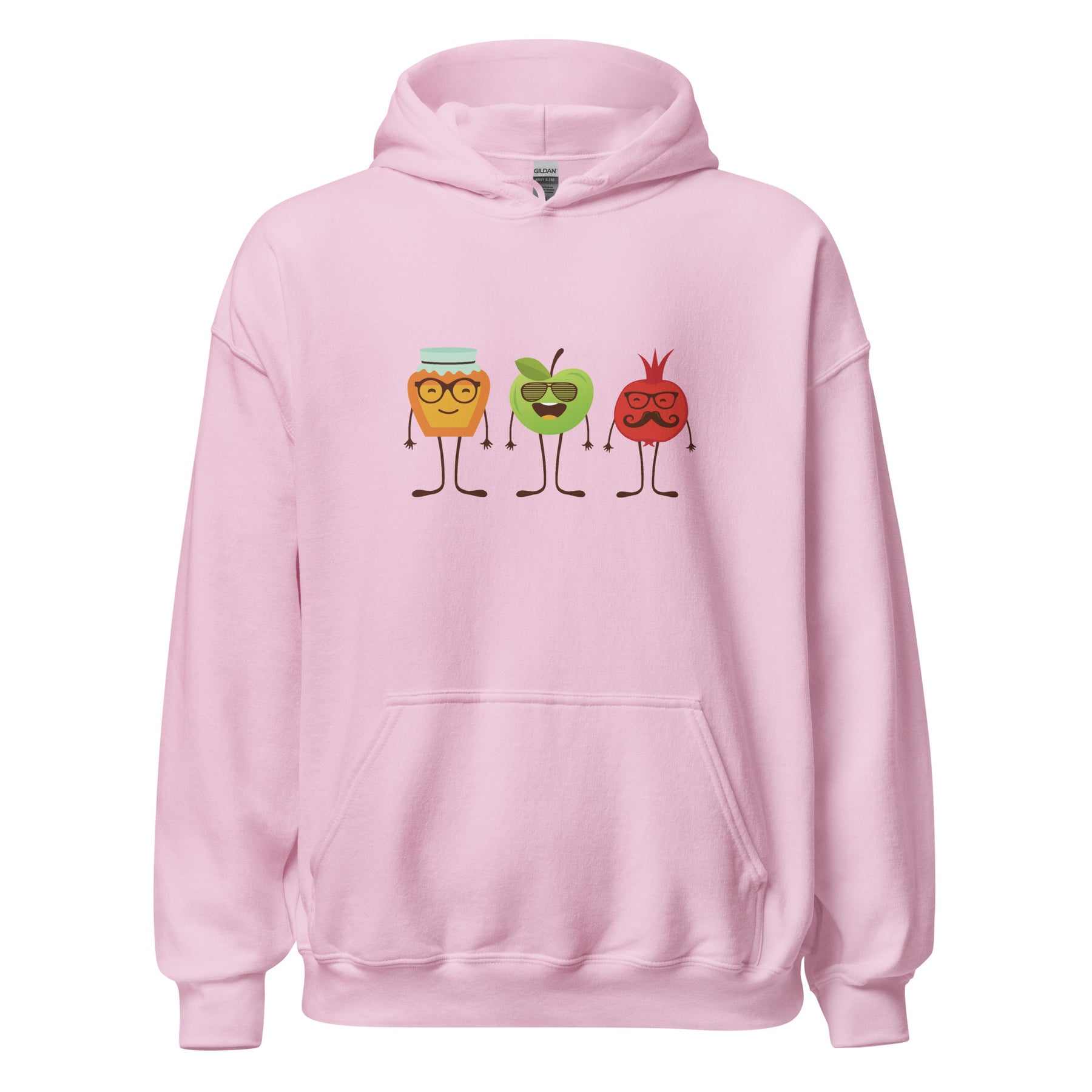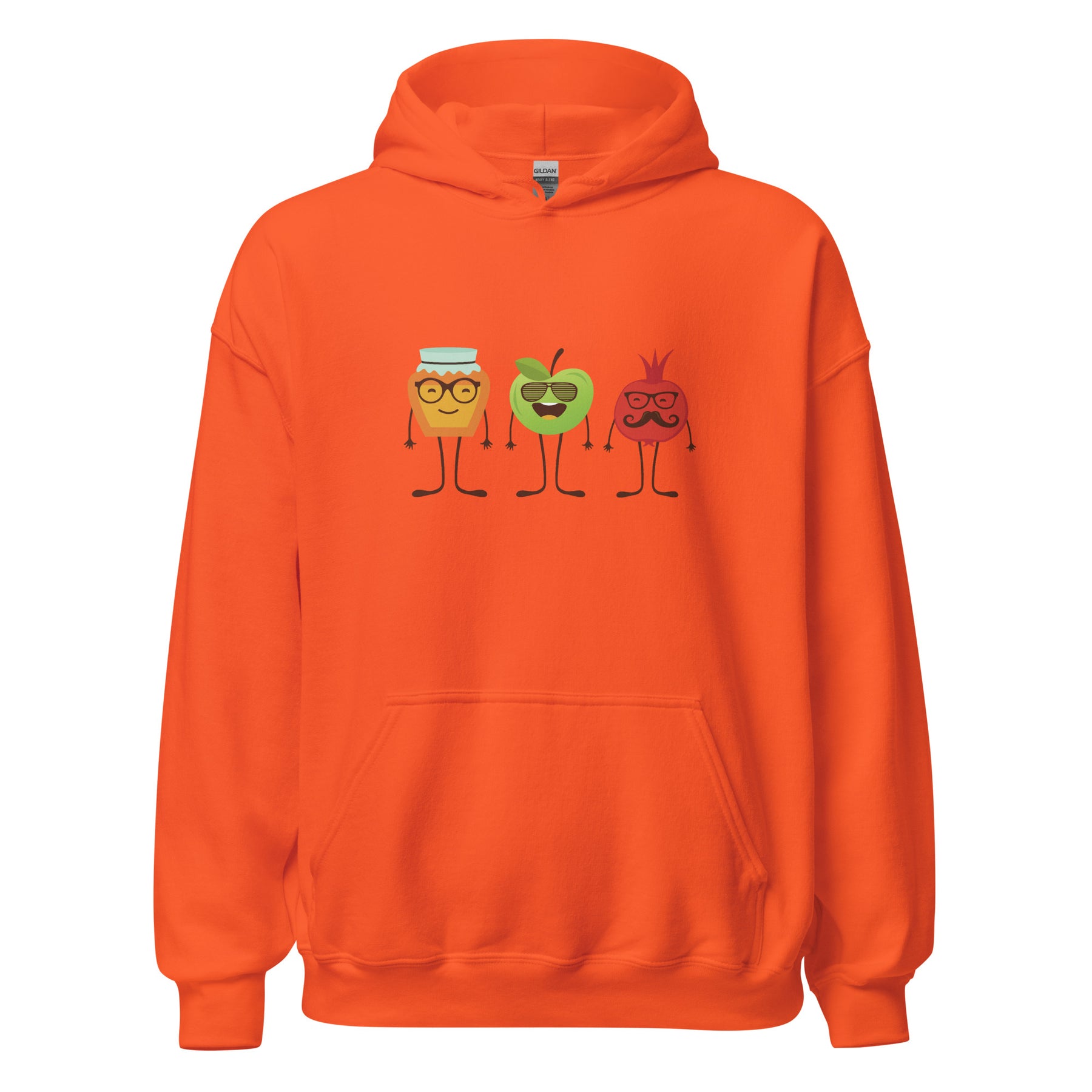 Sweet, cozy, and full of Rosh HaShana charm — the Honey Apple Pomegranates Heavy Blend Hoodie brings the holiday spirit to life in the cutest way. The design features the classic Jewish New Year trio: a smiling apple, a happy jar of honey, and a pomegranate with personality. It’s playful, festive, and perfect for anyone who loves celebrating Shana Tova with a warm layer and a little humor.