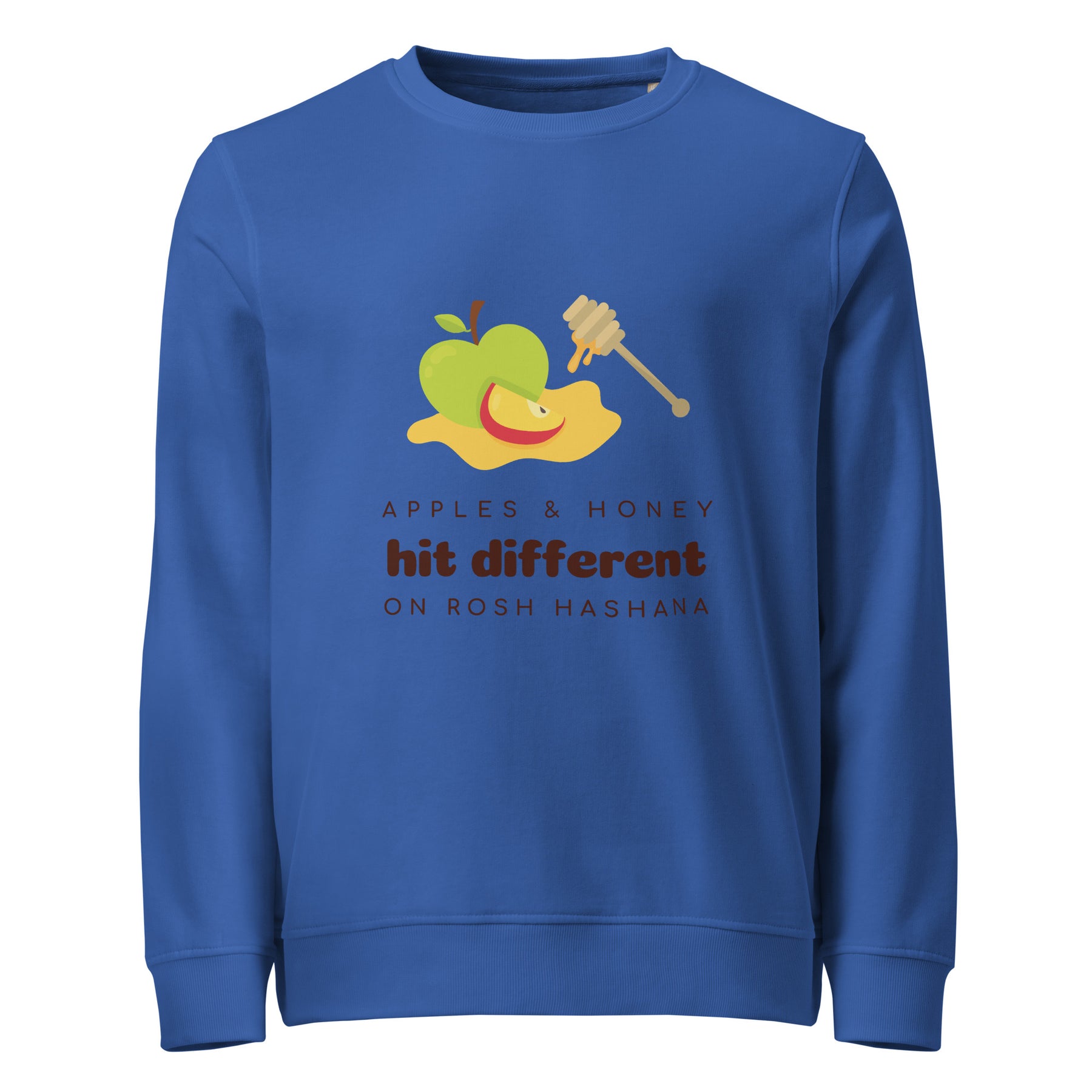Wrap yourself in warmth and tradition with the Apples & Honey organic sweatshirt — a cozy, eco-conscious way to celebrate Rosh Hashanah and Jewish heritage. Made with soft organic cotton, it blends sustainable fashion with a sweet symbol of the Jewish New Year.