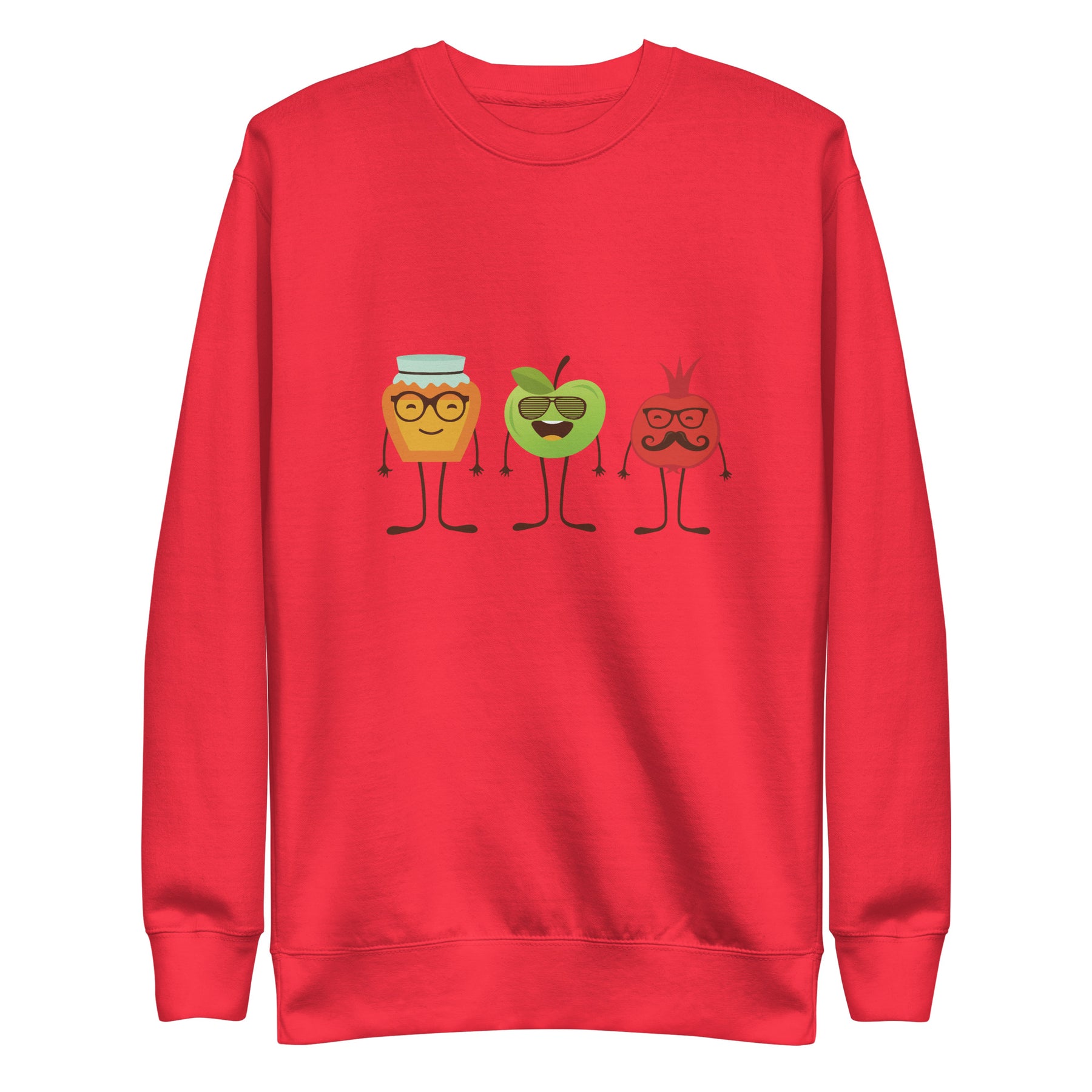 Cozy, festive, and full of charm — the Honey Apple Pomegranates Premium Sweatshirt brings a sweet spin to your Rosh HaShana look. The design features the Jewish New Year trio — a cheerful apple, a cute jar of honey, and a stylish pomegranate — each with their own little personality. It’s playful, warm, and perfect for celebrating Shana Tova in comfort.