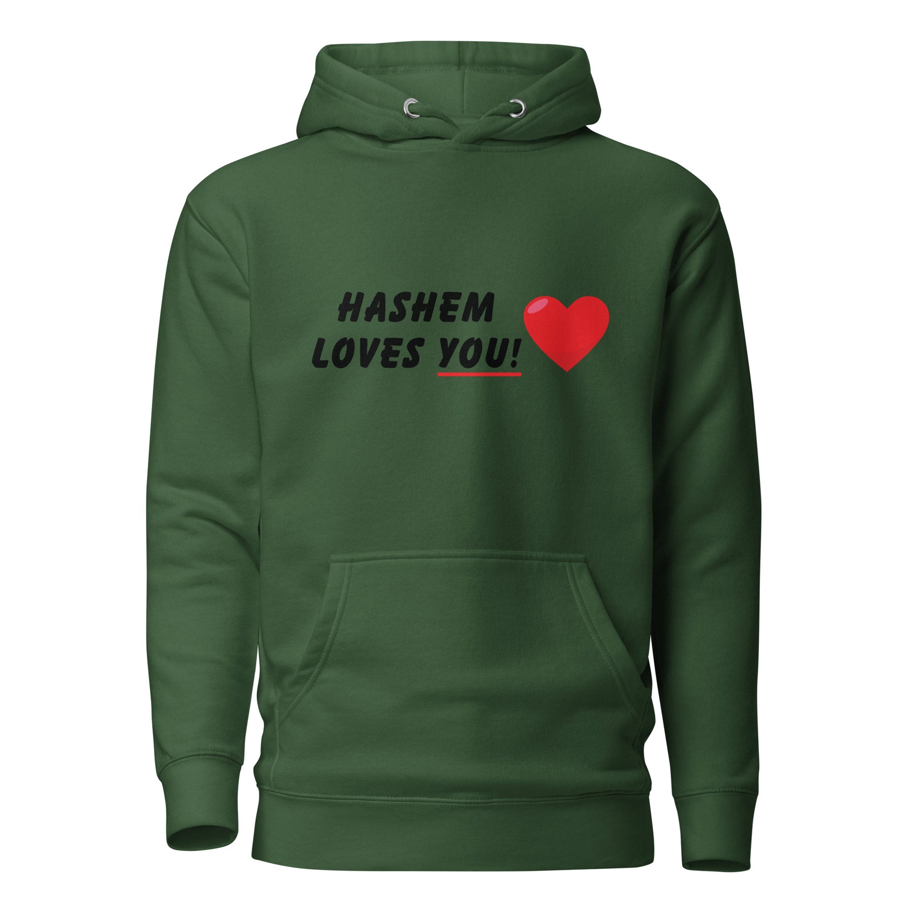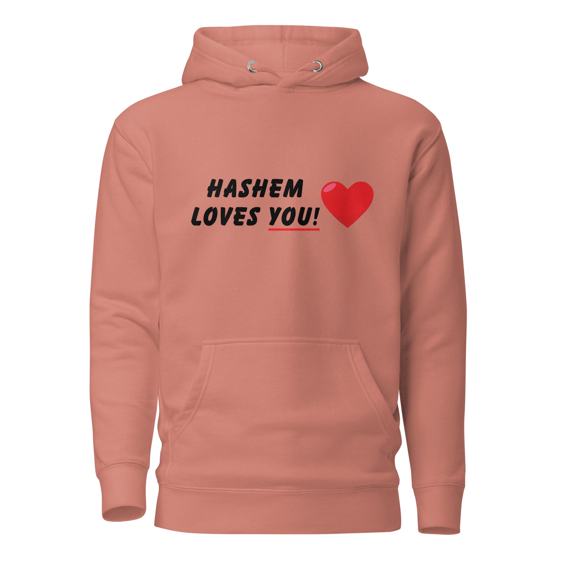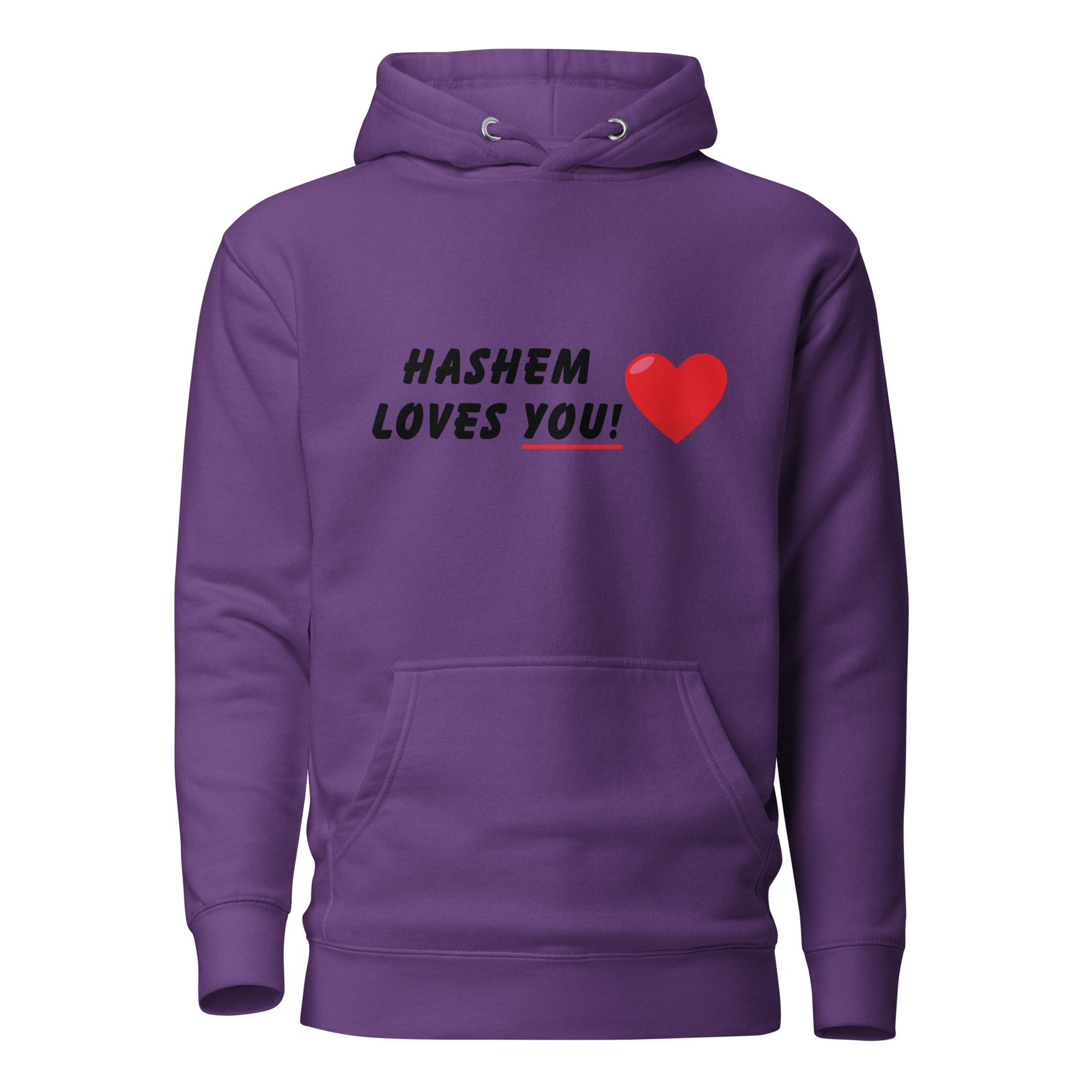 A generous front pouch pocket adds functional style for storing essentials or keeping hands warm. The design displays the uplifting phrase “HaShem Loves You” prominently, making it so much more than just a cozy hoodie—it’s a statement of faith, love, and encouragement.