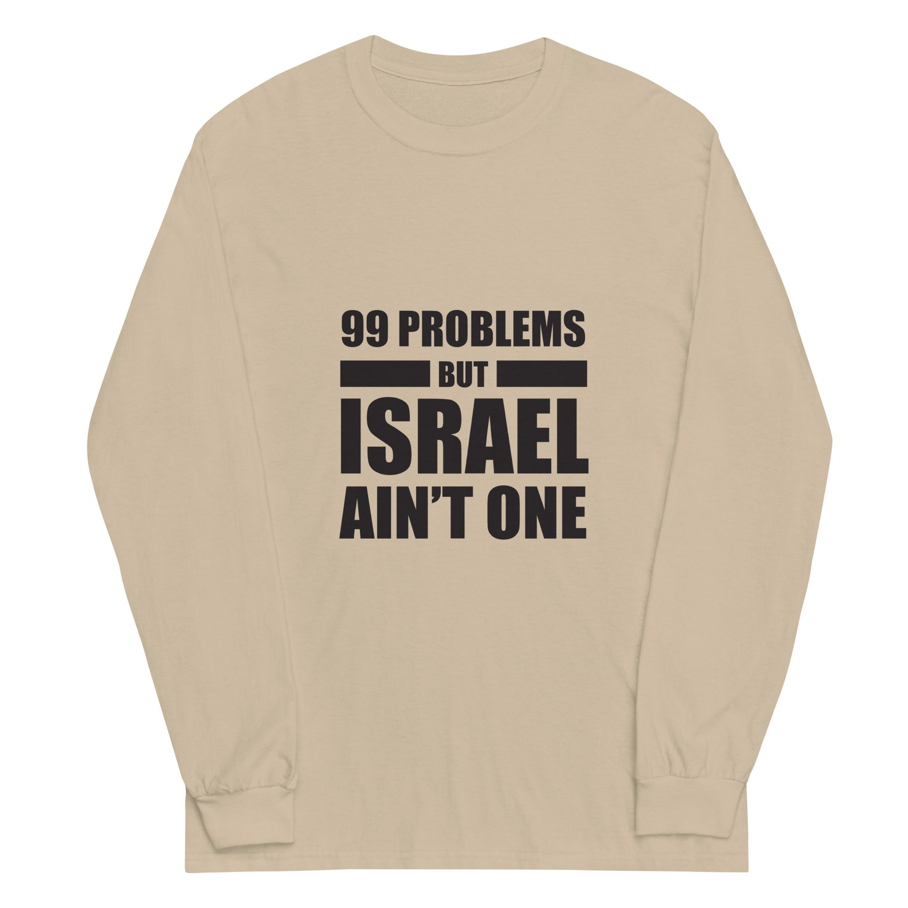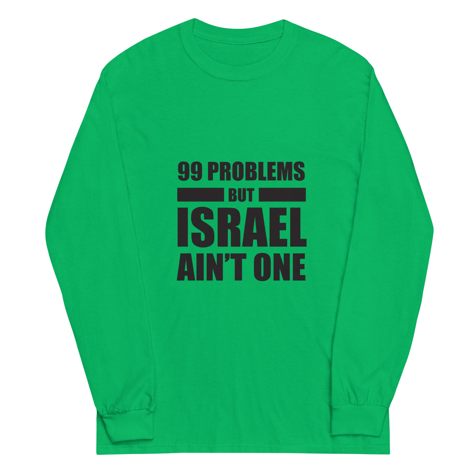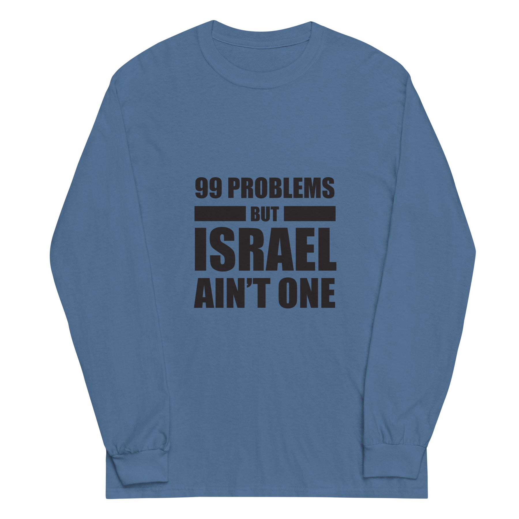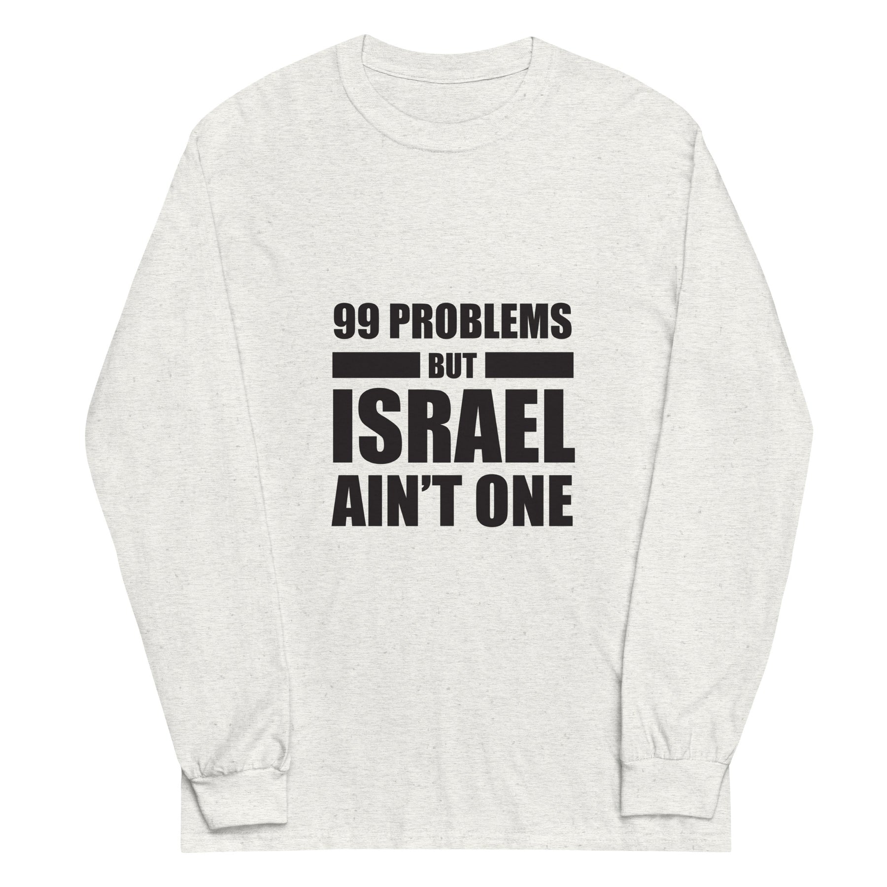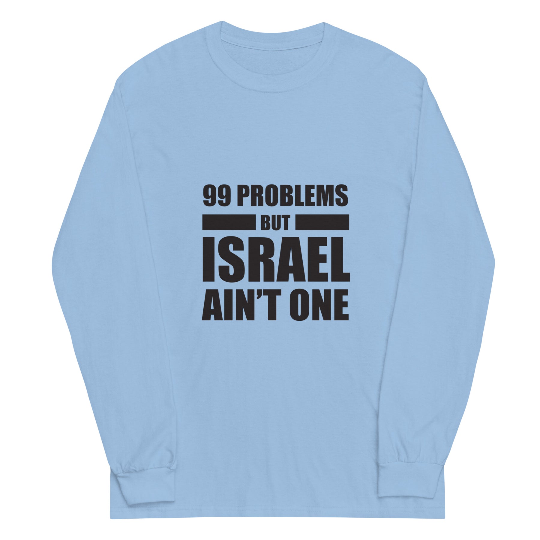 For those who wear their pride on their sleeve — literally. The “99 Problems But Israel Ain’t One” Men’s Long Sleeve Shirt is a bold fusion of comfort and conviction. Whether you’re walking into a Jewish community event, speaking up on campus, or just living out your identity, this shirt makes your message loud and clear: you stand with Israel.