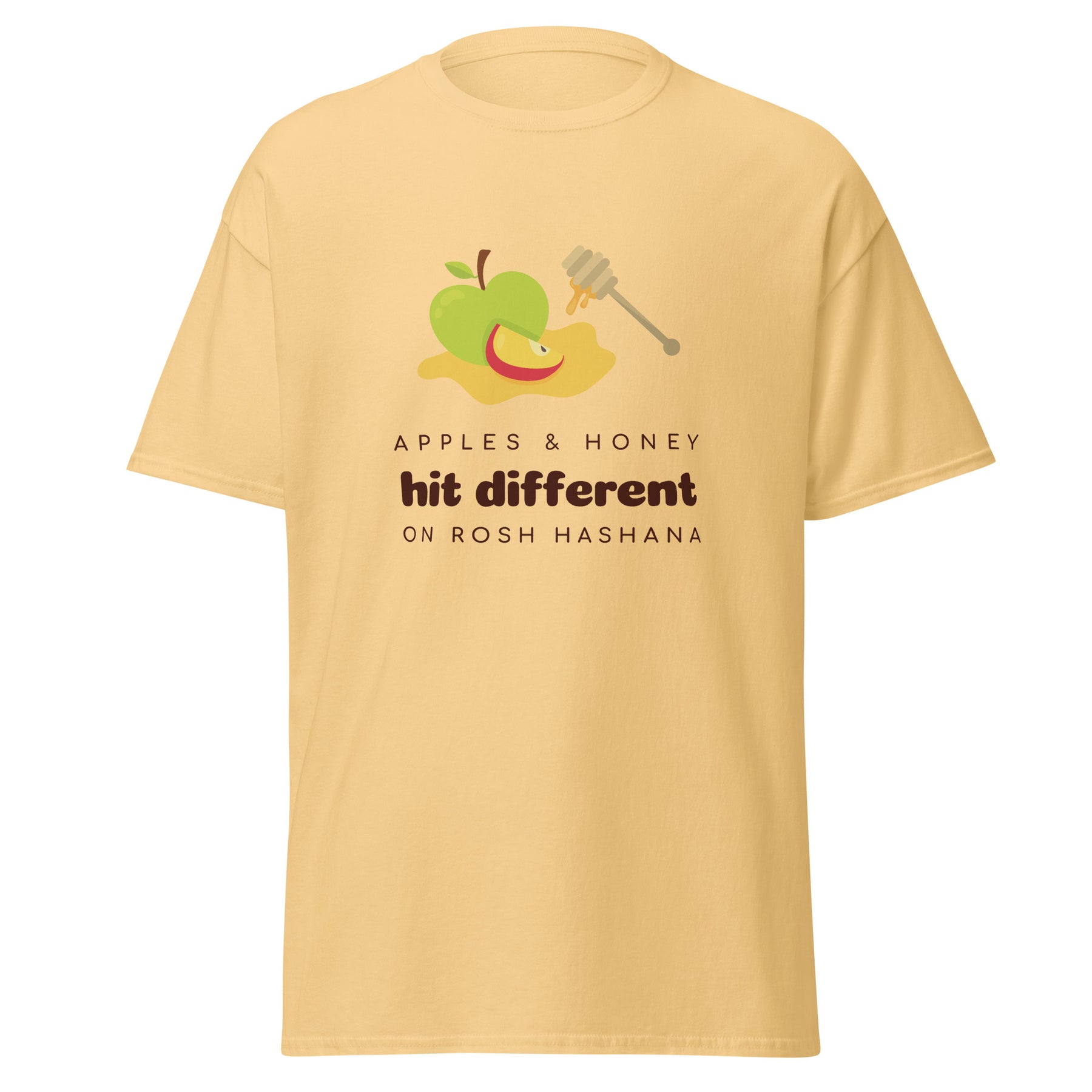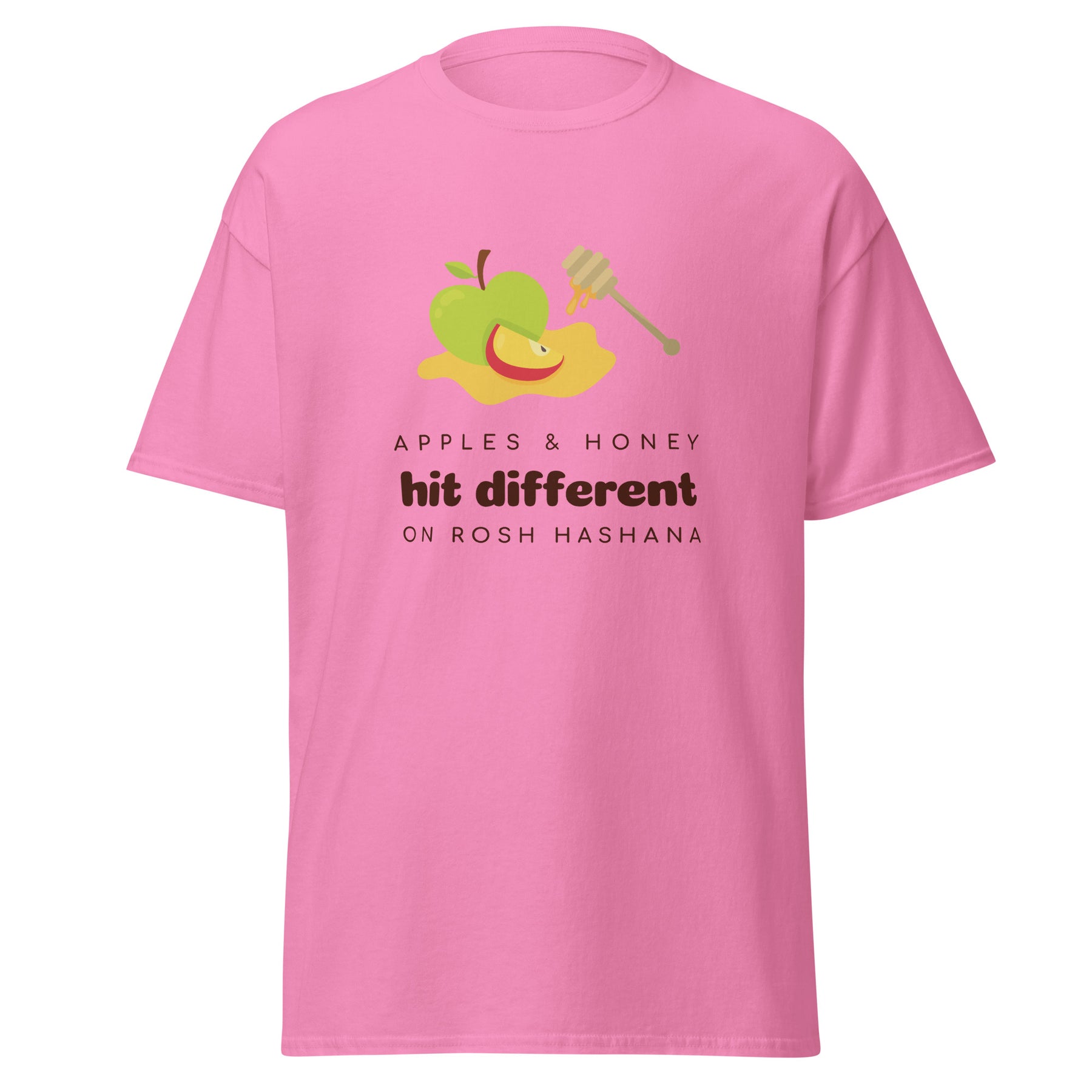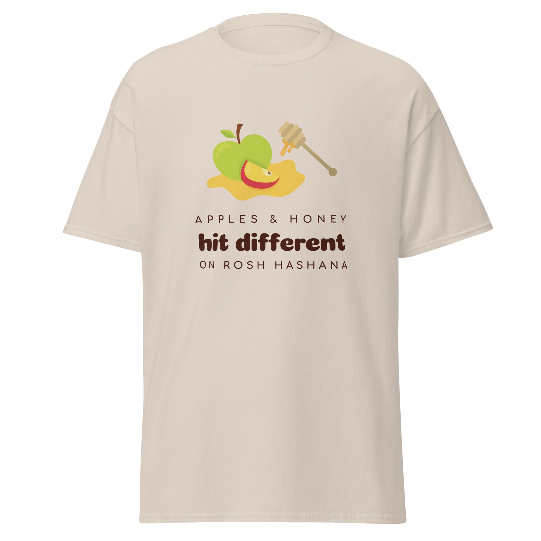 Celebrate the Jewish New Year with sweetness and humor in this “Apples & Honey Hit Different on Rosh Hashanah” t-shirt — the perfect blend of tradition and style. Whether you’re heading to a family dinner, synagogue, or just want to show off your love for Jewish holidays, this tee makes a bold, festive statement.