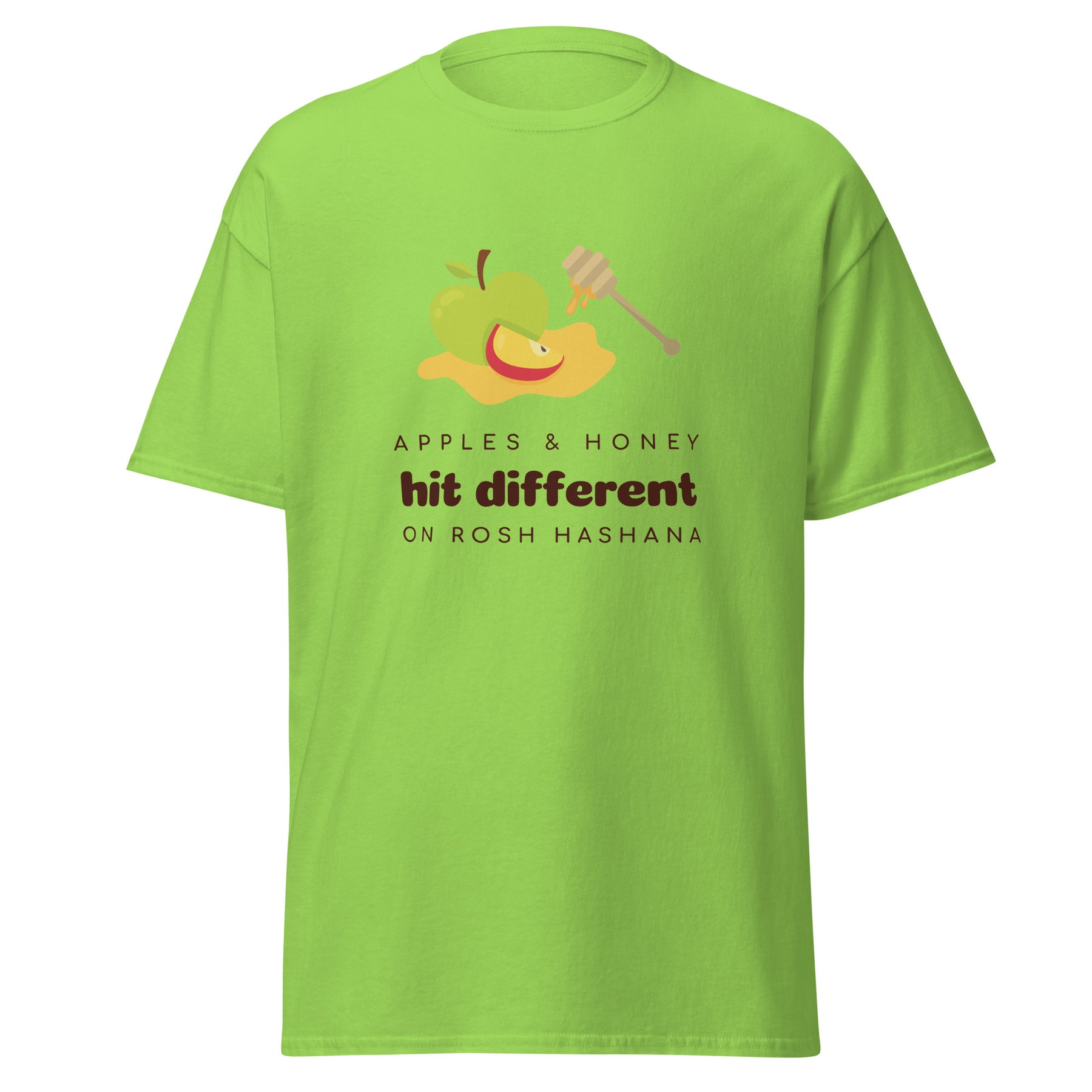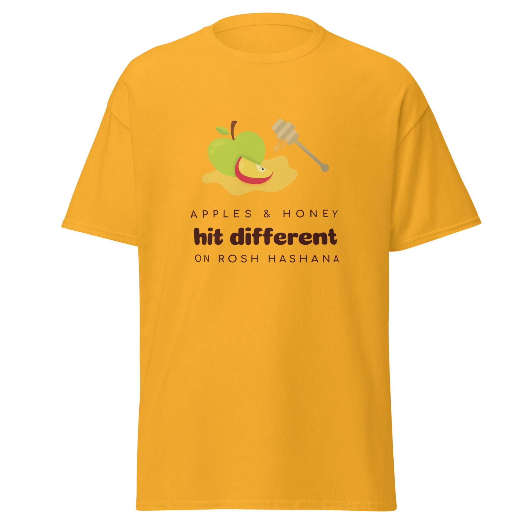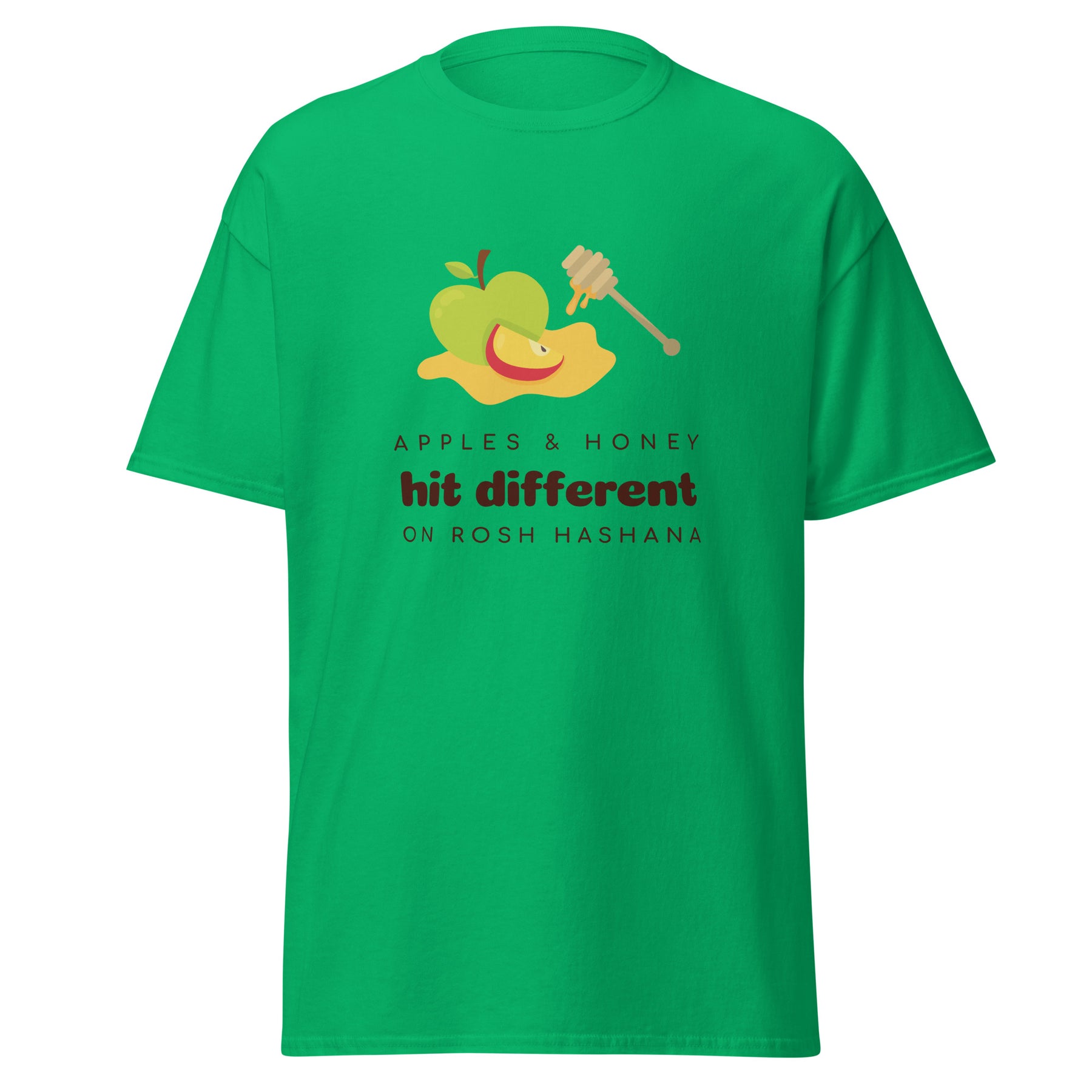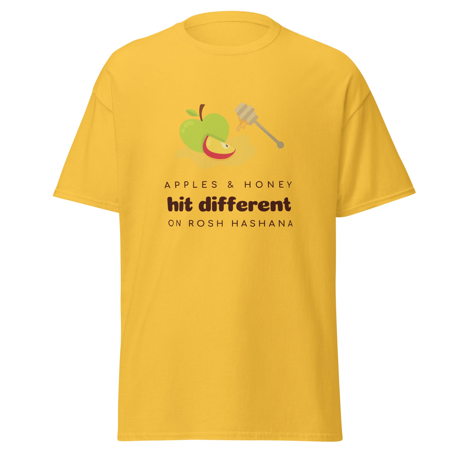 Celebrate the Jewish New Year with sweetness and humor in this “Apples & Honey Hit Different on Rosh Hashanah” t-shirt — the perfect blend of tradition and style. Whether you’re heading to a family dinner, synagogue, or just want to show off your love for Jewish holidays, this tee makes a bold, festive statement.
