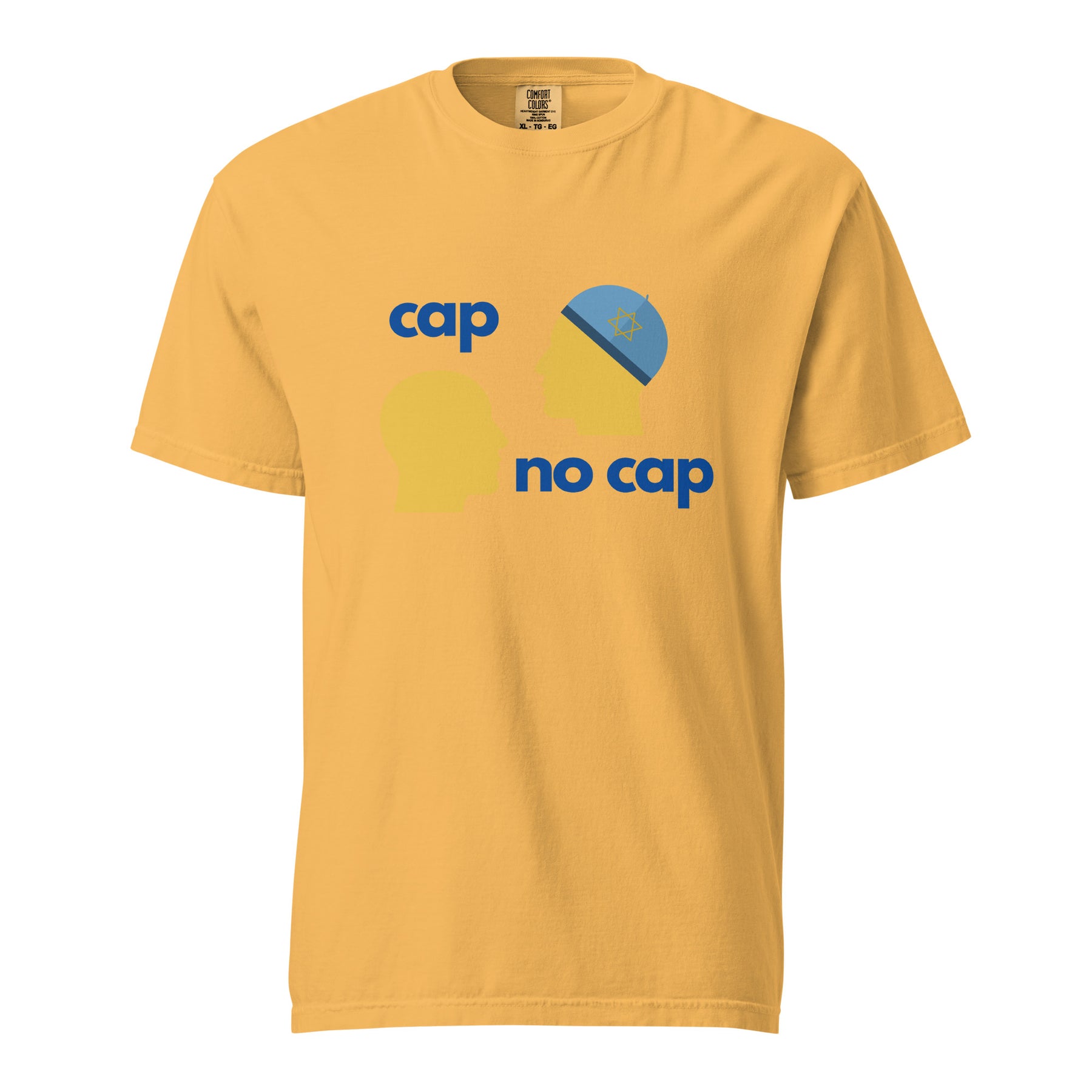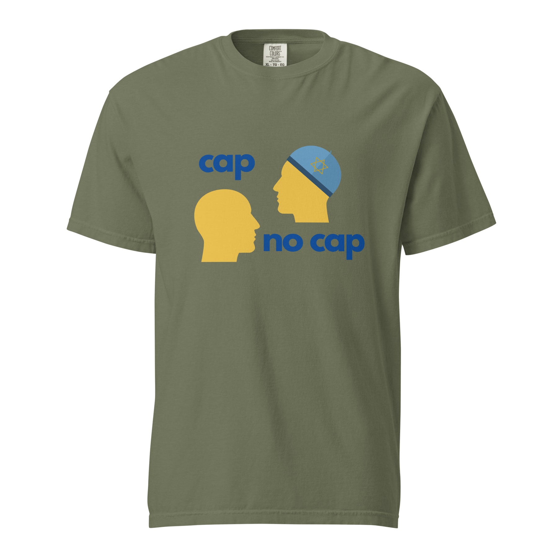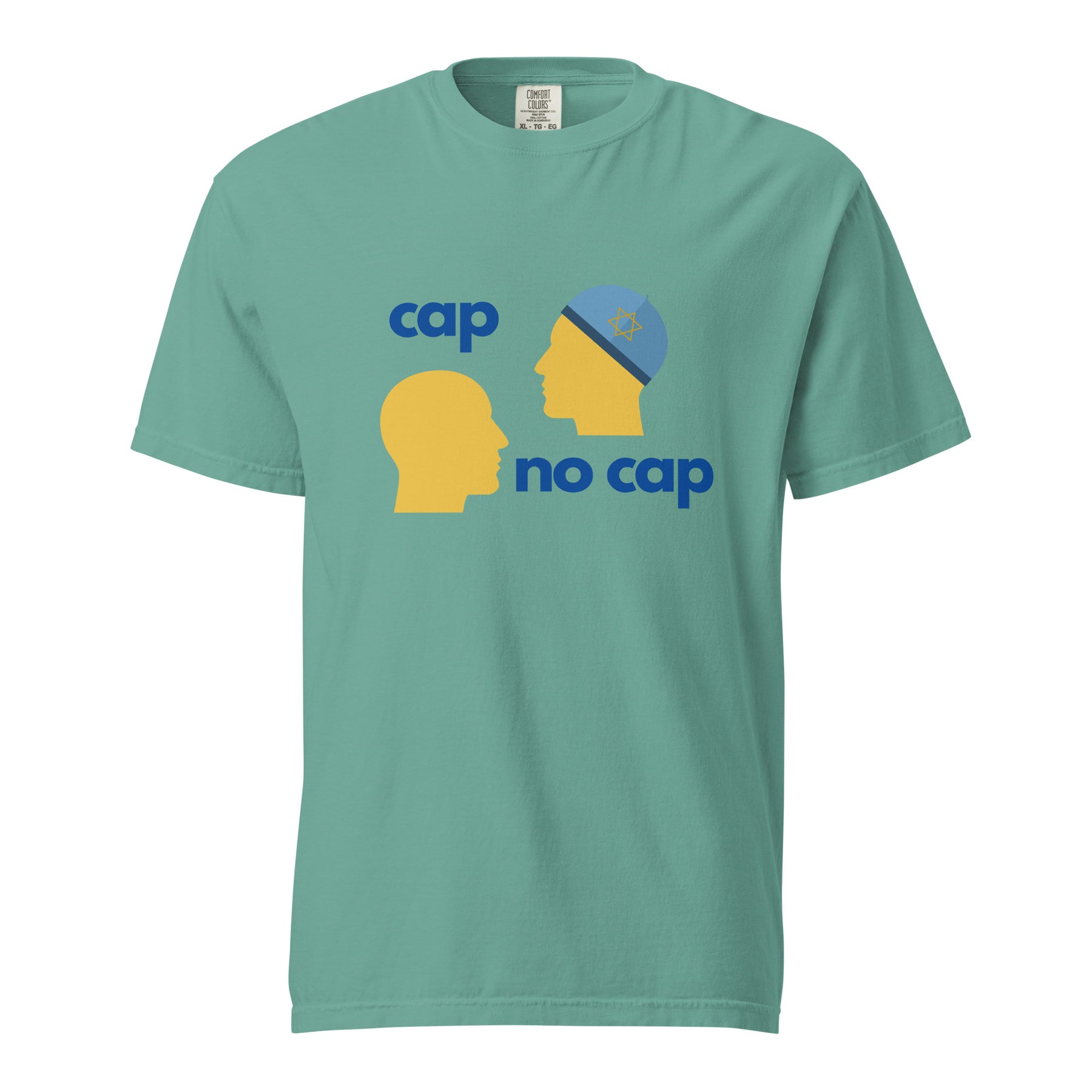 Truth stays the same. Cap or no cap. The Cap No Cap Garment Dyed Heavyweight T-Shirt takes a familiar phrase and gives it a clever Jewish twist. With the kippah detail doing the talking, it’s smart, subtle, and instantly gets the point across.