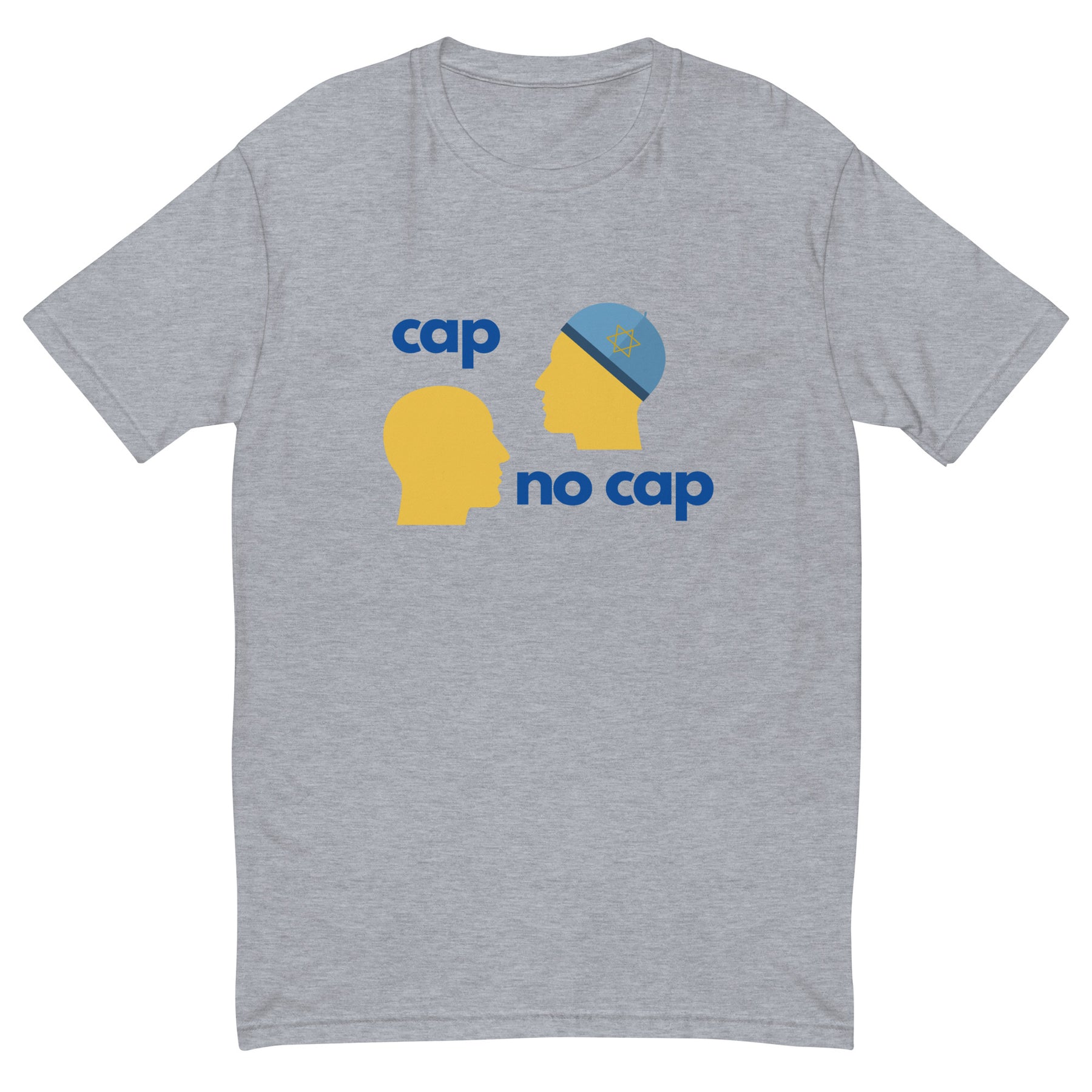 Clean fit. Clear truth. The Cap No Cap Men’s Fitted T-Shirt takes a phrase everyone knows and turns it into a smart Jewish visual joke. Cap on, cap off, honesty doesn’t change. Simple, sharp, and instantly gets the point across.