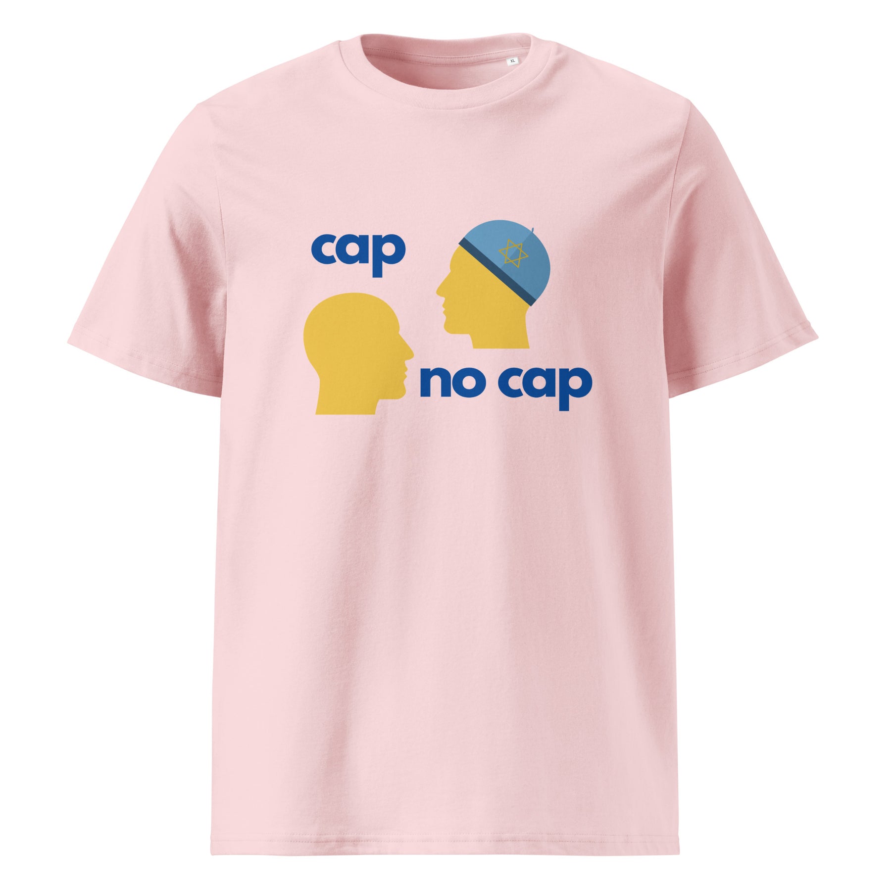 Honesty, but make it wearable. The Cap No Cap Organic Cotton T-Shirt flips a familiar phrase into a sharp Jewish visual joke. Cap on, cap off, the truth stays the same. Simple, clever, and instantly recognizable.