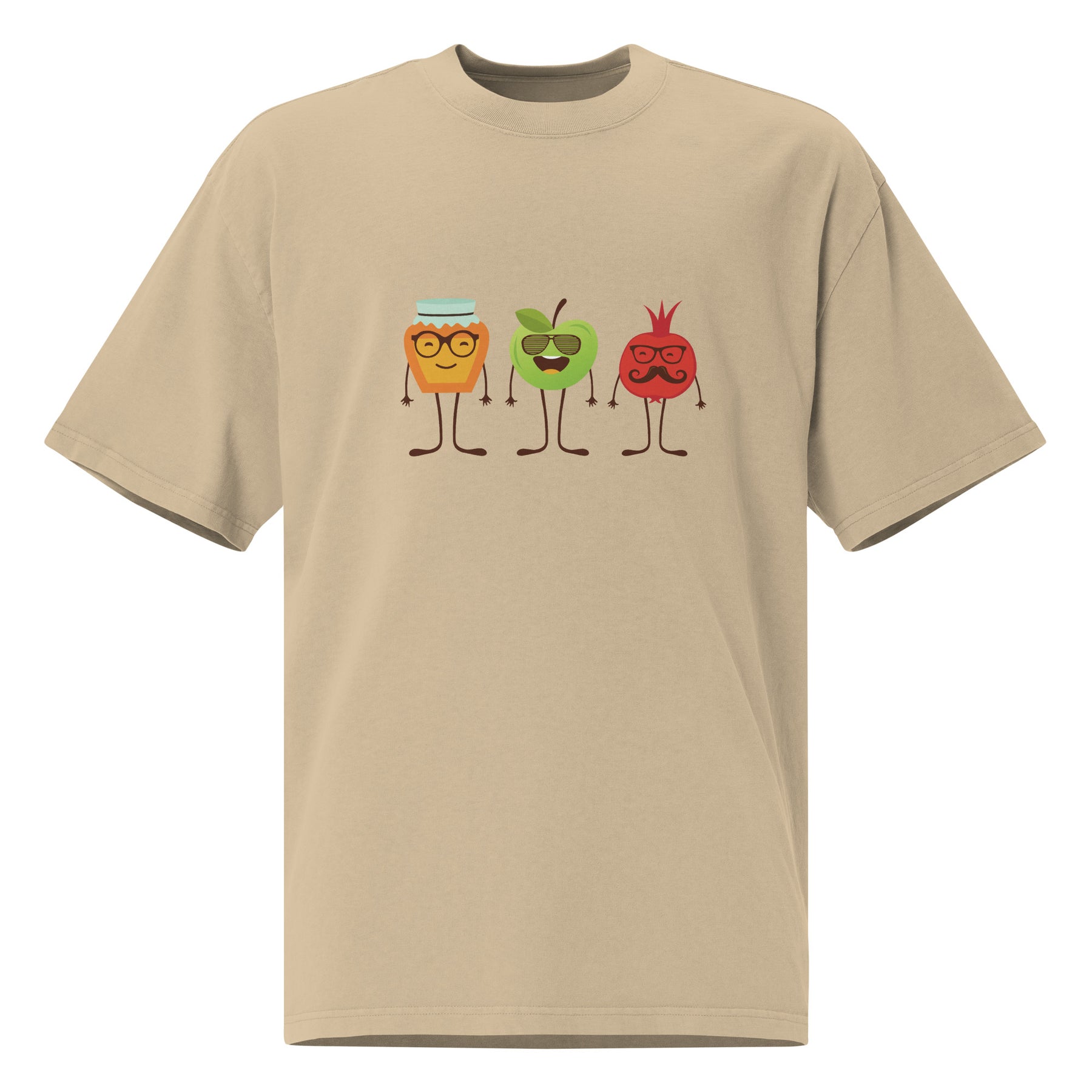 Comfy, cute, and perfect for the holiday — the Honey Apple Pomegranates Oversized Faded Tee brings an easy, relaxed vibe to your Rosh HaShana look. The design features the classic Jewish New Year trio — honey, apple, and pomegranate — each with their own charming personality. It’s playful, festive, and exactly the kind of Shana Tova shirt that makes people smile the second they see it.