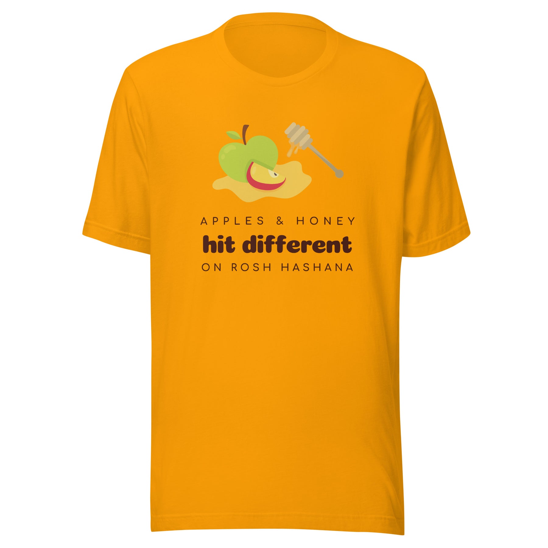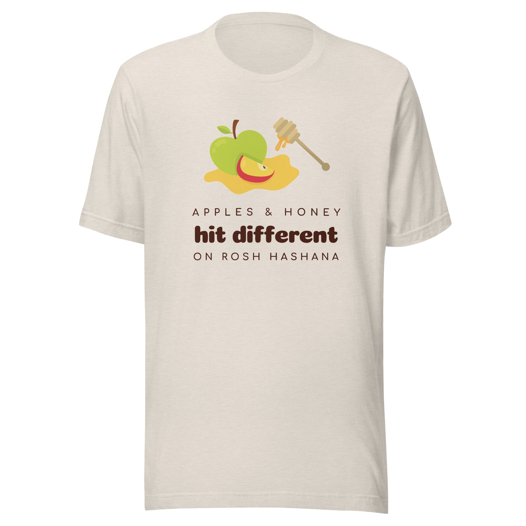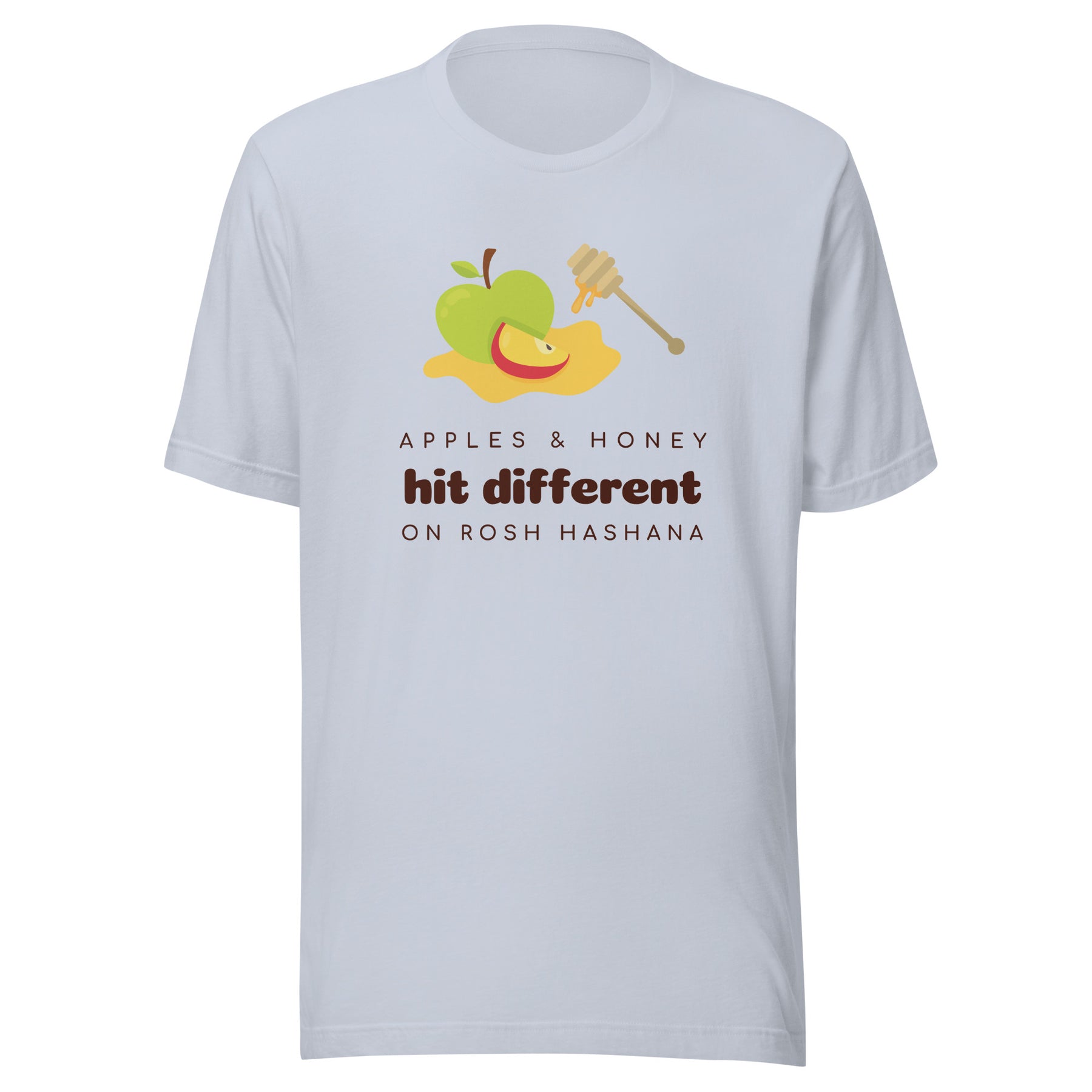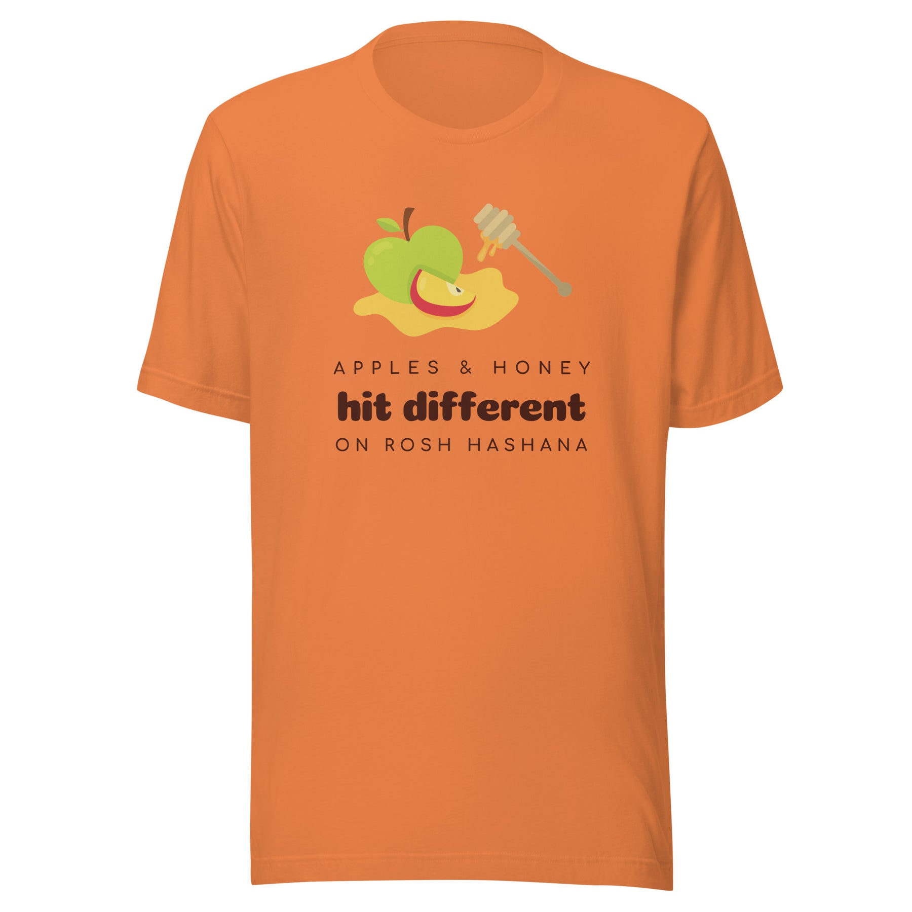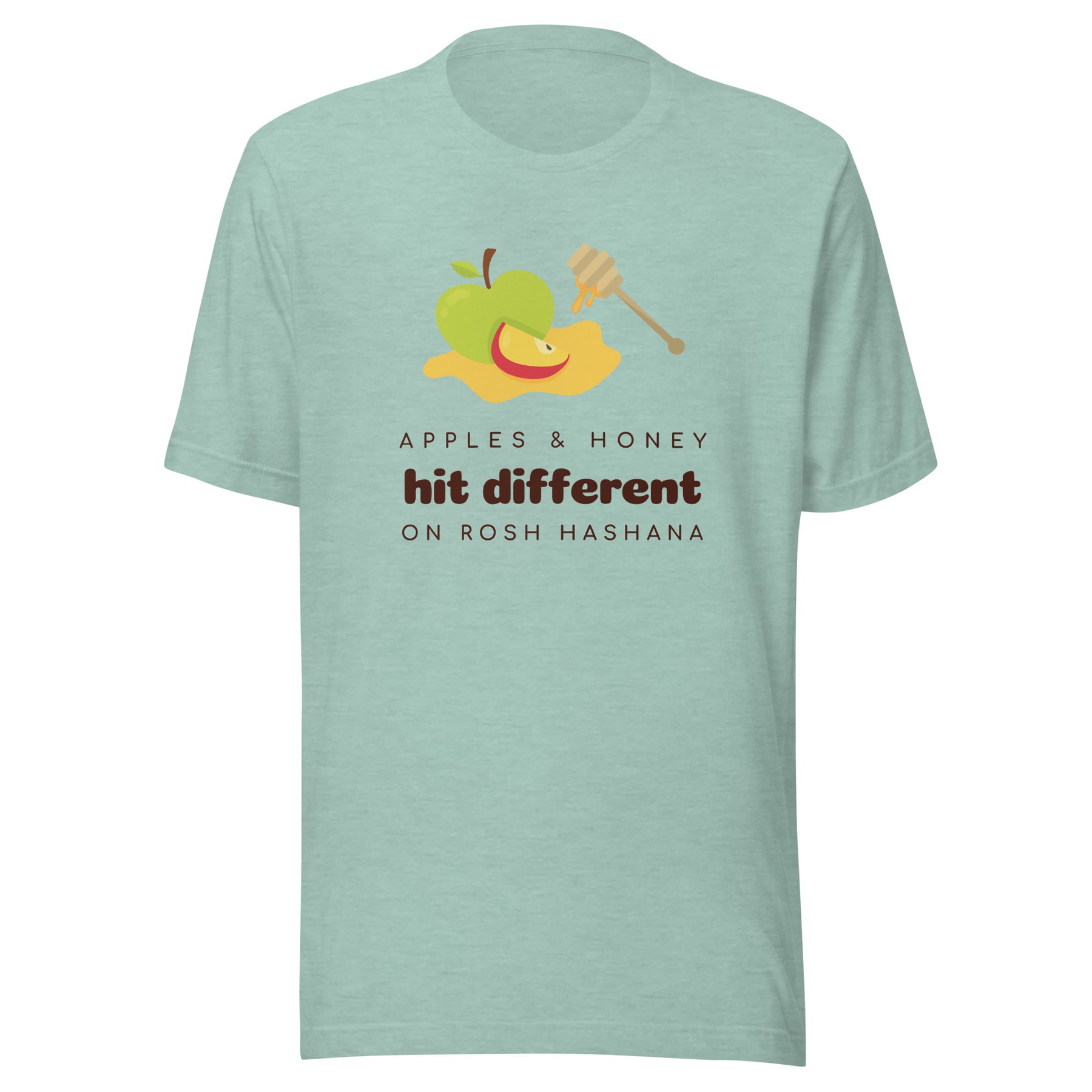Start the Jewish New Year fresh, funny, and full of flavor with this “Apples & Honey Hit Different on Rosh Hashanah” tee. Designed to celebrate Jewish culture, Rosh Hashanah traditions, and a love for classic Jewish holiday symbols, this shirt is as sweet as it is clever.
