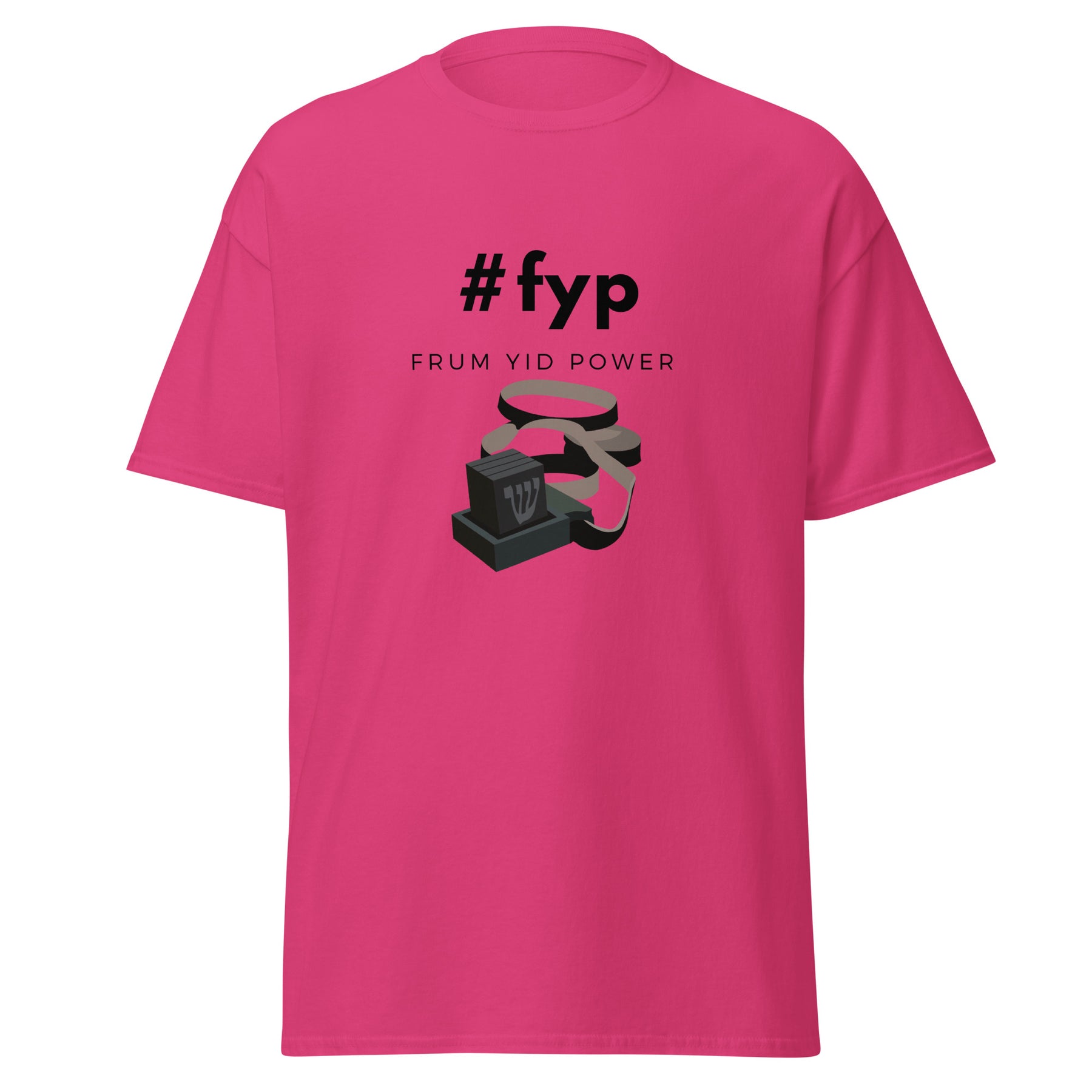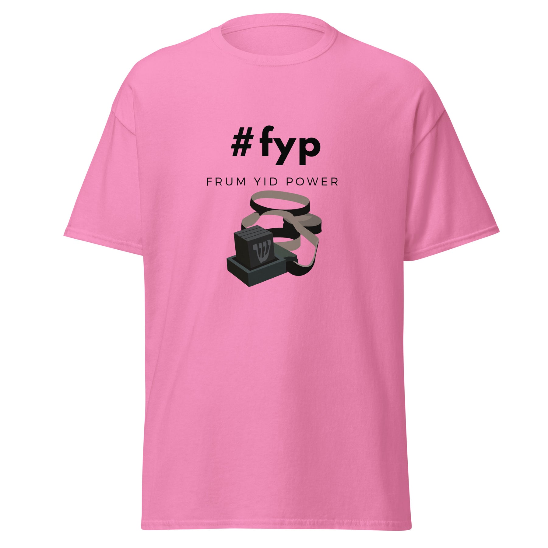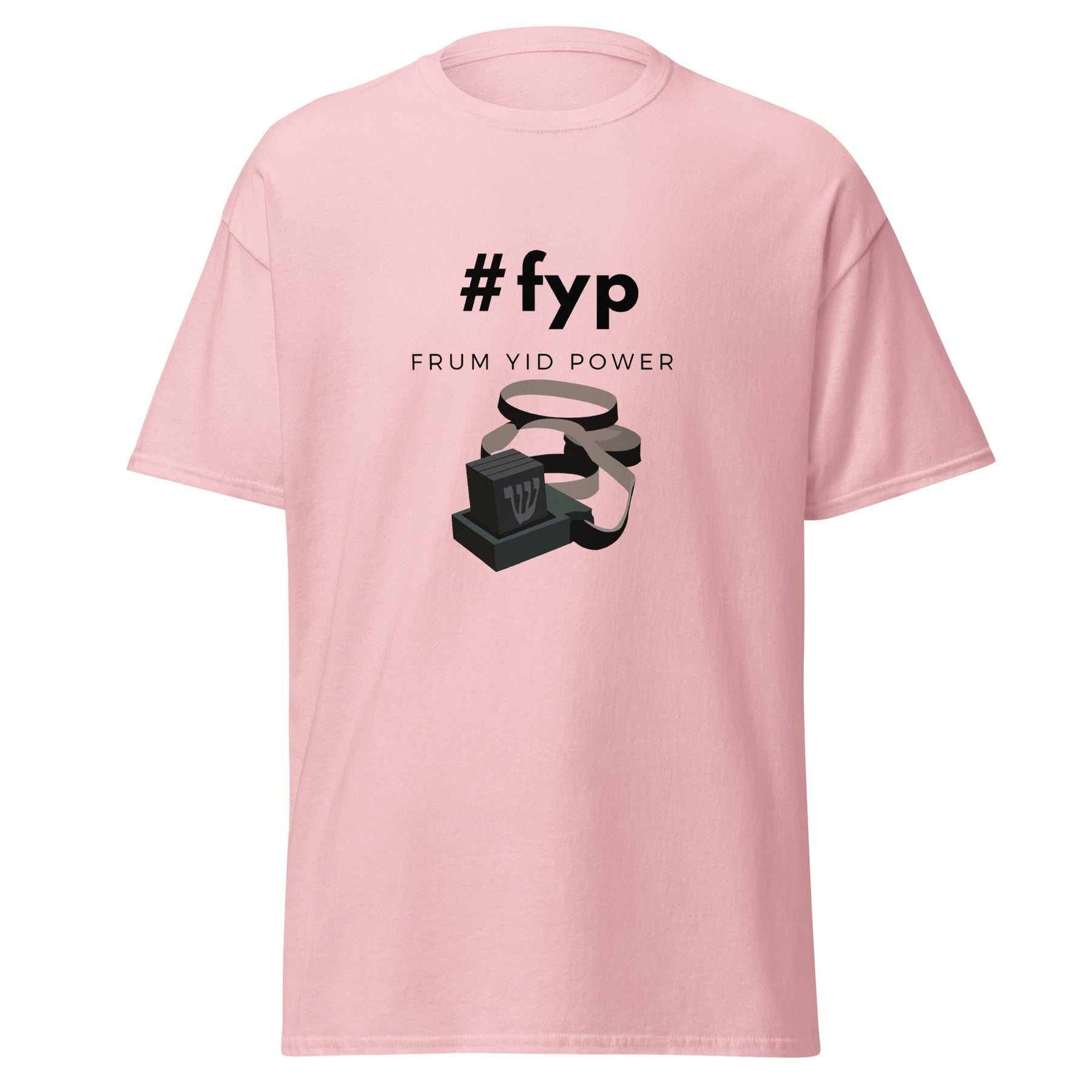 The tefillin graphic paired with #fyp – Frum Yid Power reclaims the language of modern culture and grounds it in Torah, tradition, and lived Jewish commitment. It’s about strength through mitzvot, discipline, and faith. A shirt for those who know who they are and don’t need approval.