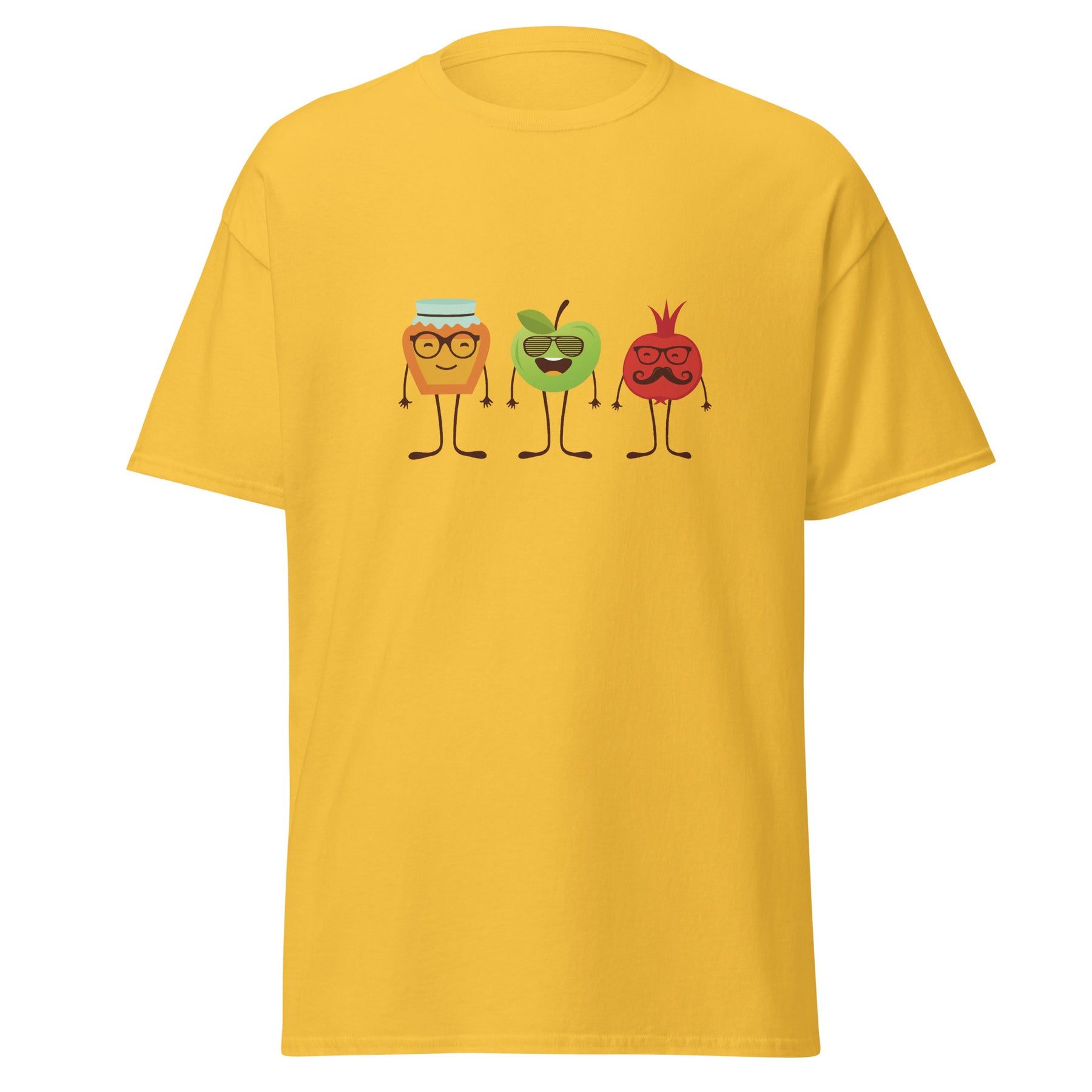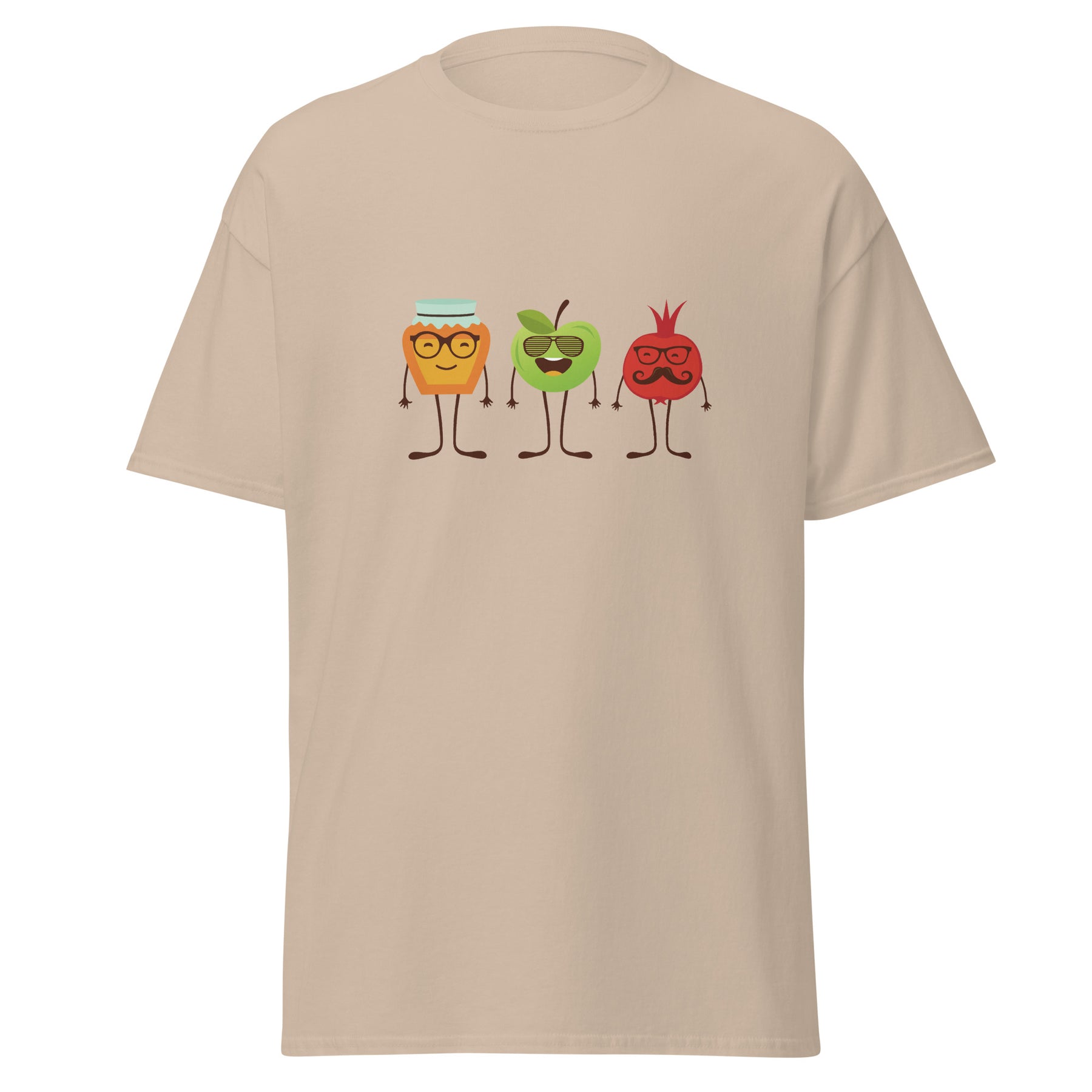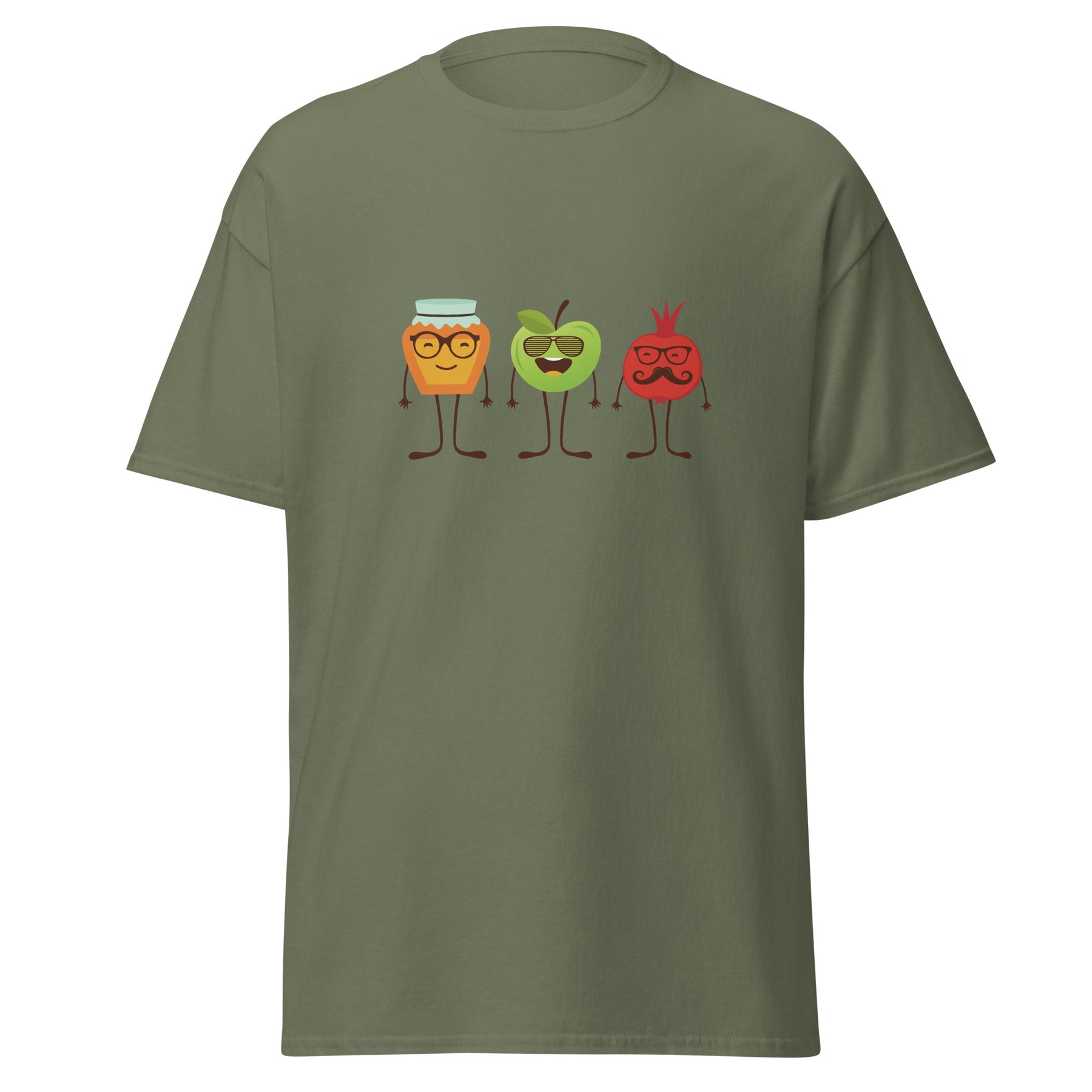 Get ready for the sweetest New Year with the Honey Apple Pomegranates Classic Tee. This fun Rosh HaShana design brings the holiday vibes to life with a jar of honey, a cheerful apple, and a mustached pomegranate — all looking like they’re about to wish you Shana Tova themselves. Cute, funny, and a little bit quirky, it’s the perfect shirt to wear for Jewish New Year dinners, family gatherings, synagogue events, or just to bring some good energy into the season.