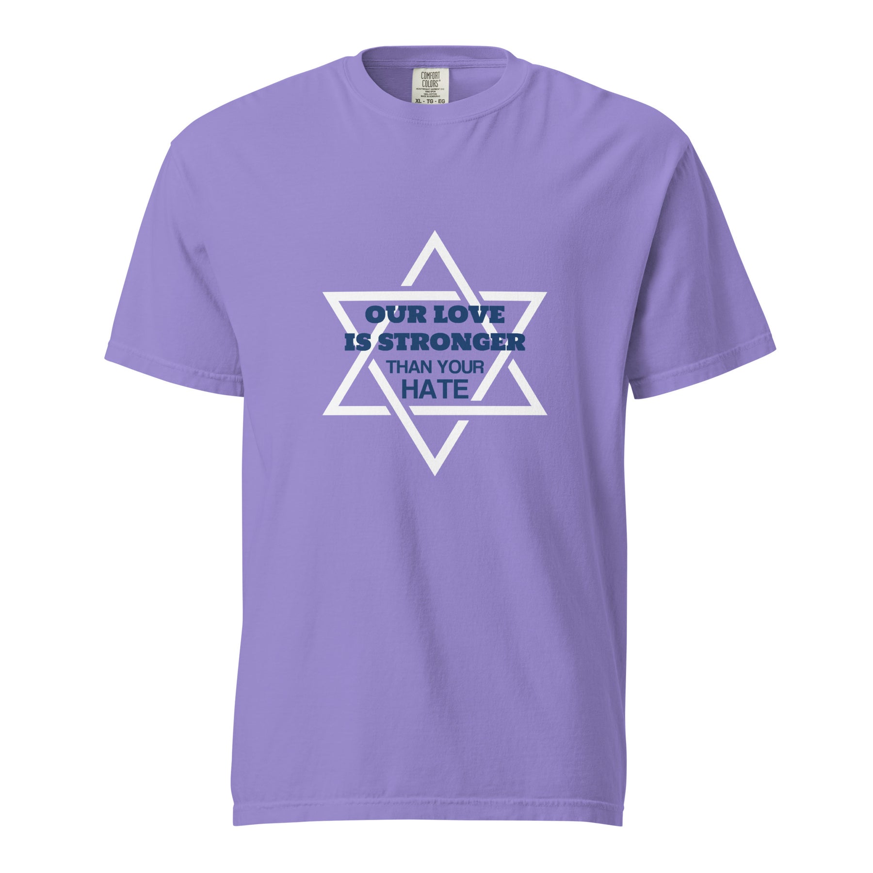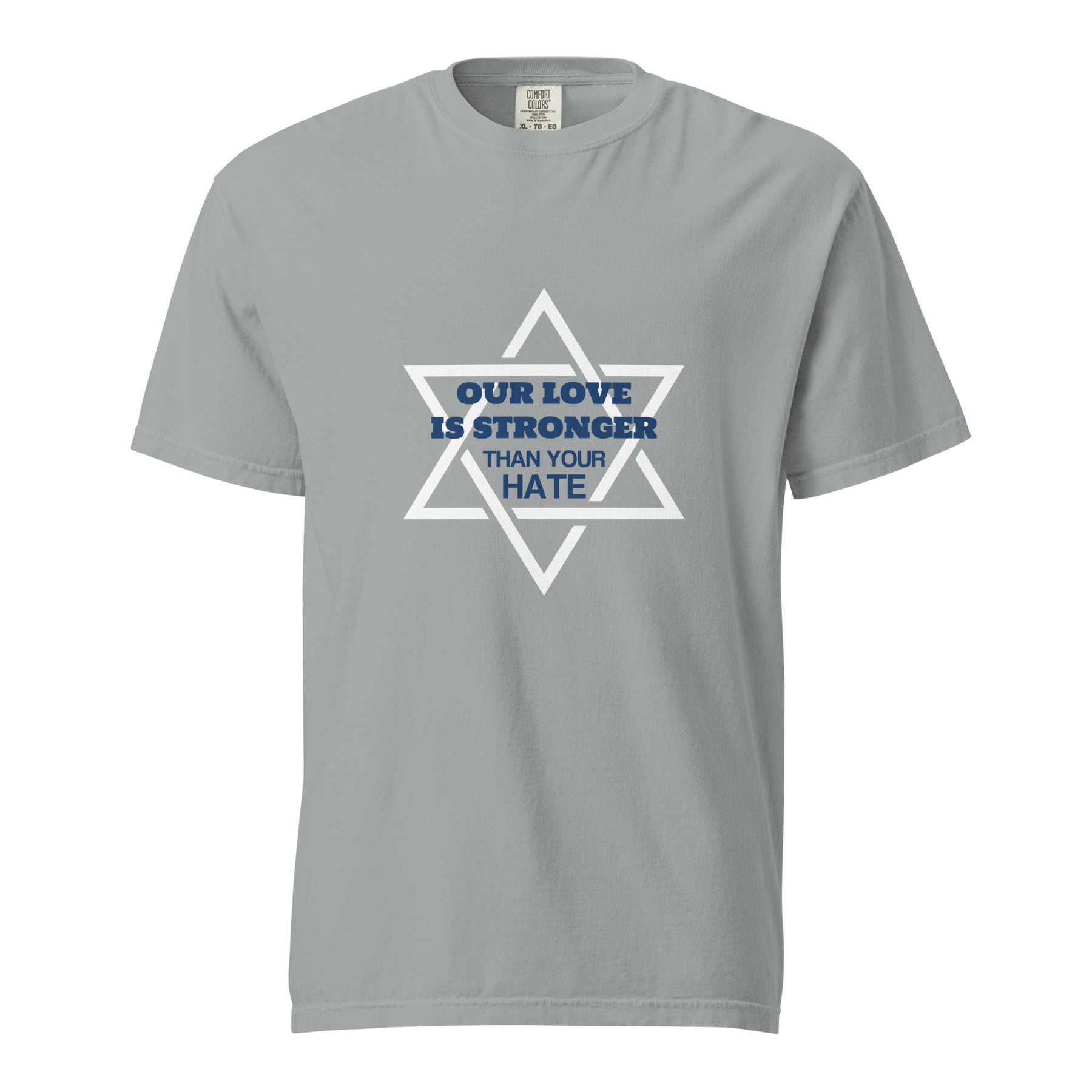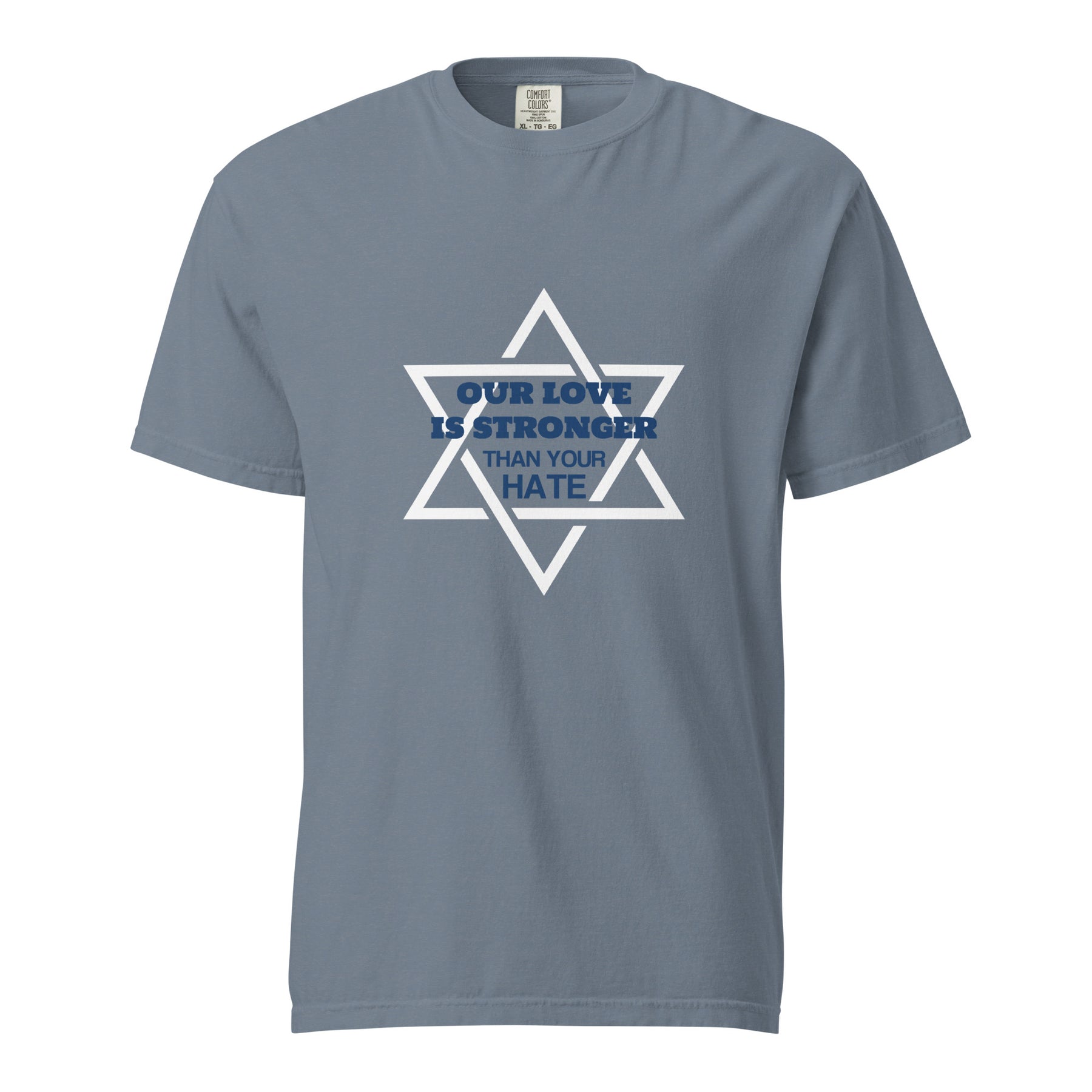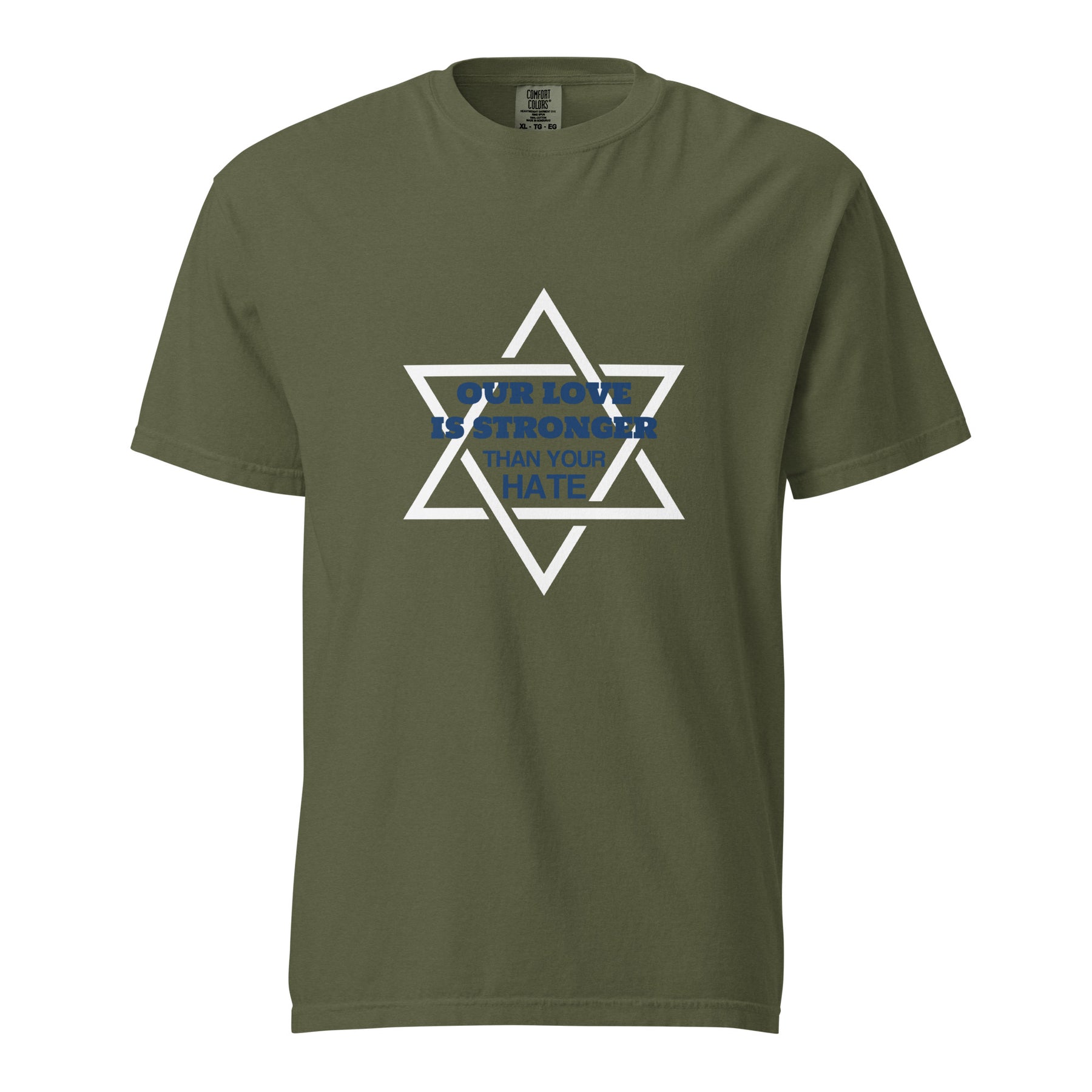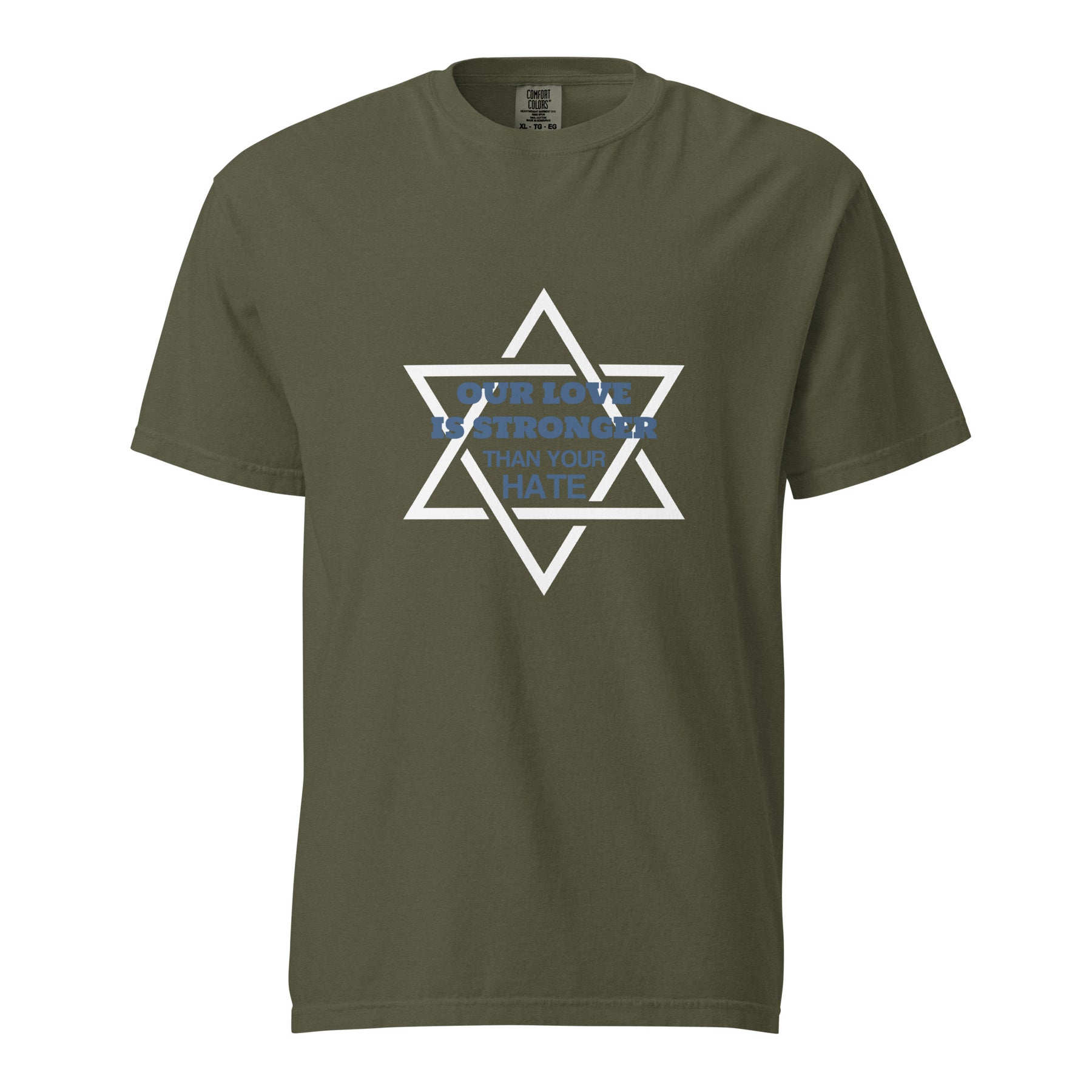 Strong message, stronger fabric. This garment-dyed heavyweight t-shirt featuring the bold statement “Our Love Is Stronger” is made for those who stand proud and unapologetic. Crafted from thick, durable cotton with a broken-in feel, it’s designed for comfort, quality — and conviction.