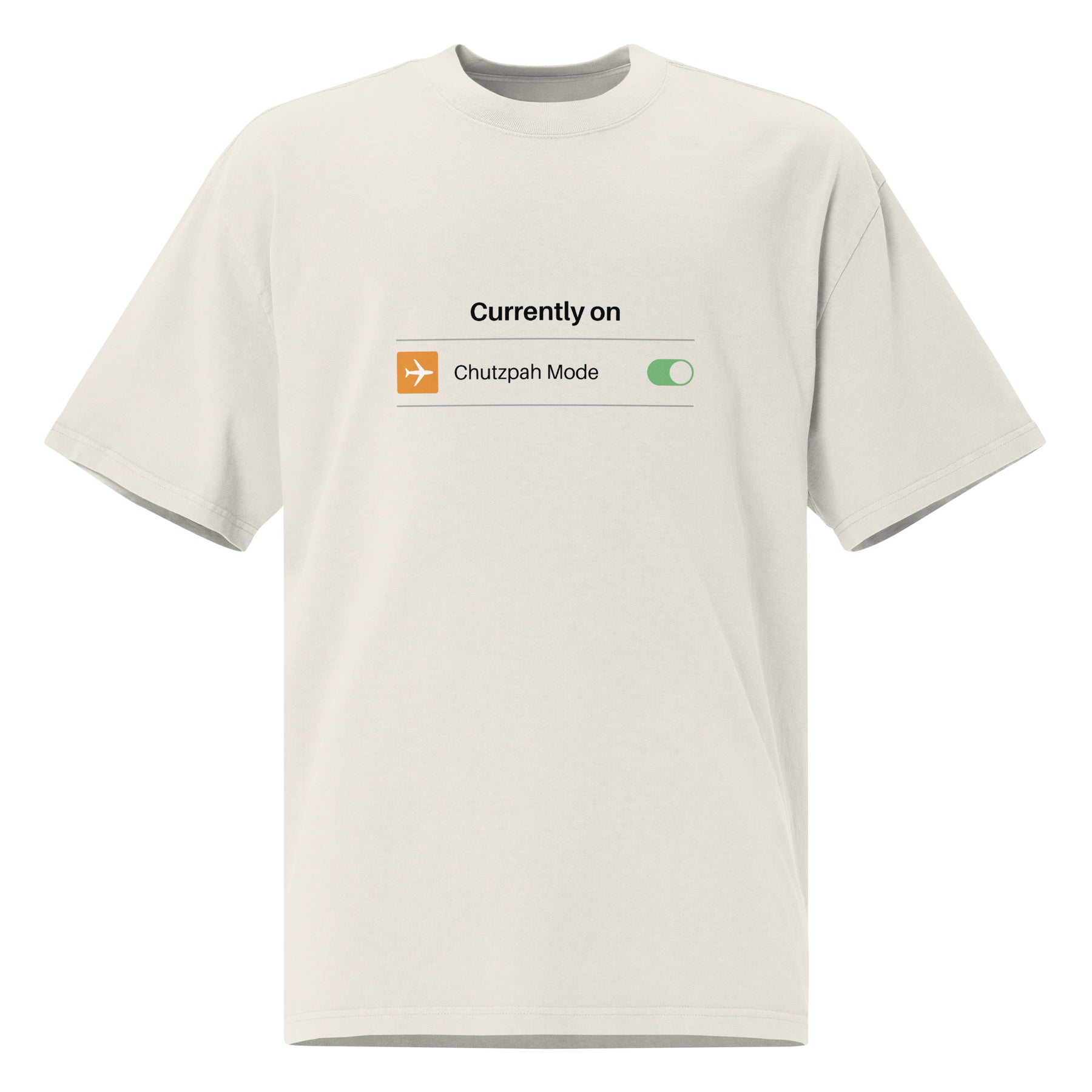 The fabric has a washed, vintage vibe that makes it feel like a favorite from day one. Add the cheeky little toggle graphic that says “Currently on: Chutzpah Mode,” and suddenly your entire outfit has a personality upgrade. It’s subtle, clever, and guaranteed to get at least one knowing smile from someone who gets it.