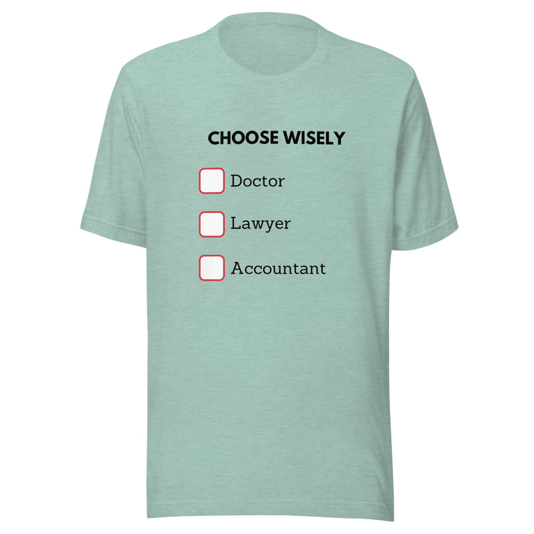 The Choose Wisely T-Shirt is classic Jewish humor at its best. A simple checklist, a familiar set of options, and a knowing wink to a community that understands the punchline instantly. Dry, smart, and just the right amount of bold.