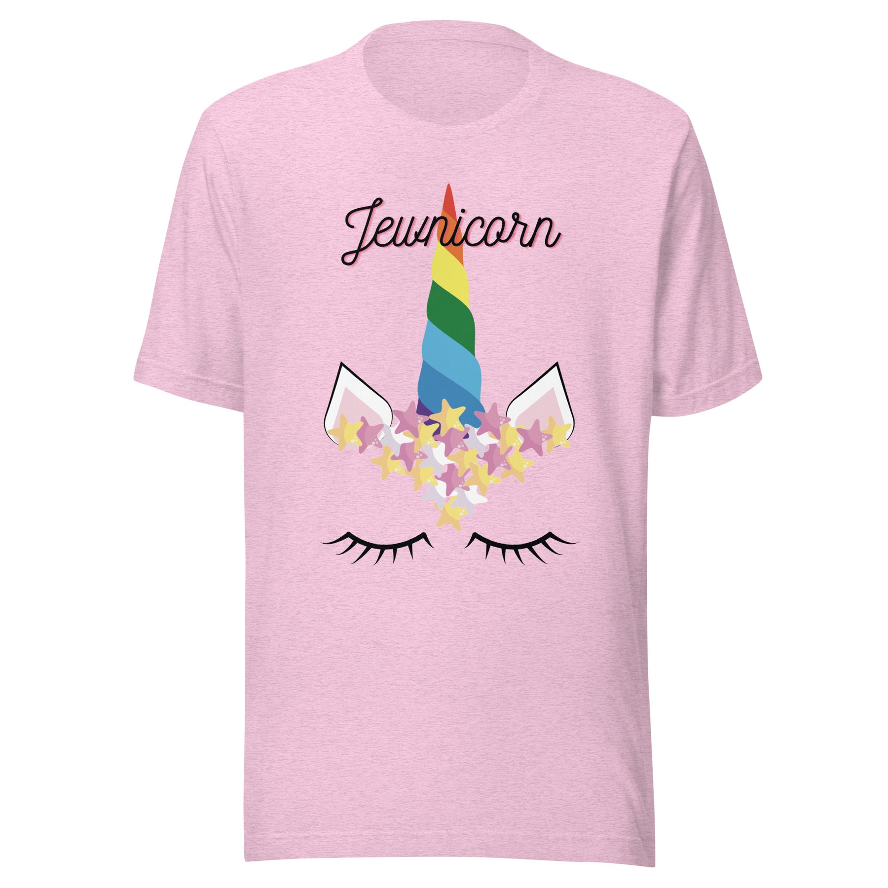 ✨ Proud. Playful. Pure chutzpah. ✨ Celebrate your magical side with the Jewnicorn T-Shirt — a fun, eye-catching piece that blends Jewish identity with unicorn charm. Featuring a rainbow horn, pastel Star of David accents, and adorable sleepy eyes, this shirt is made for those who aren’t afraid to stand out.