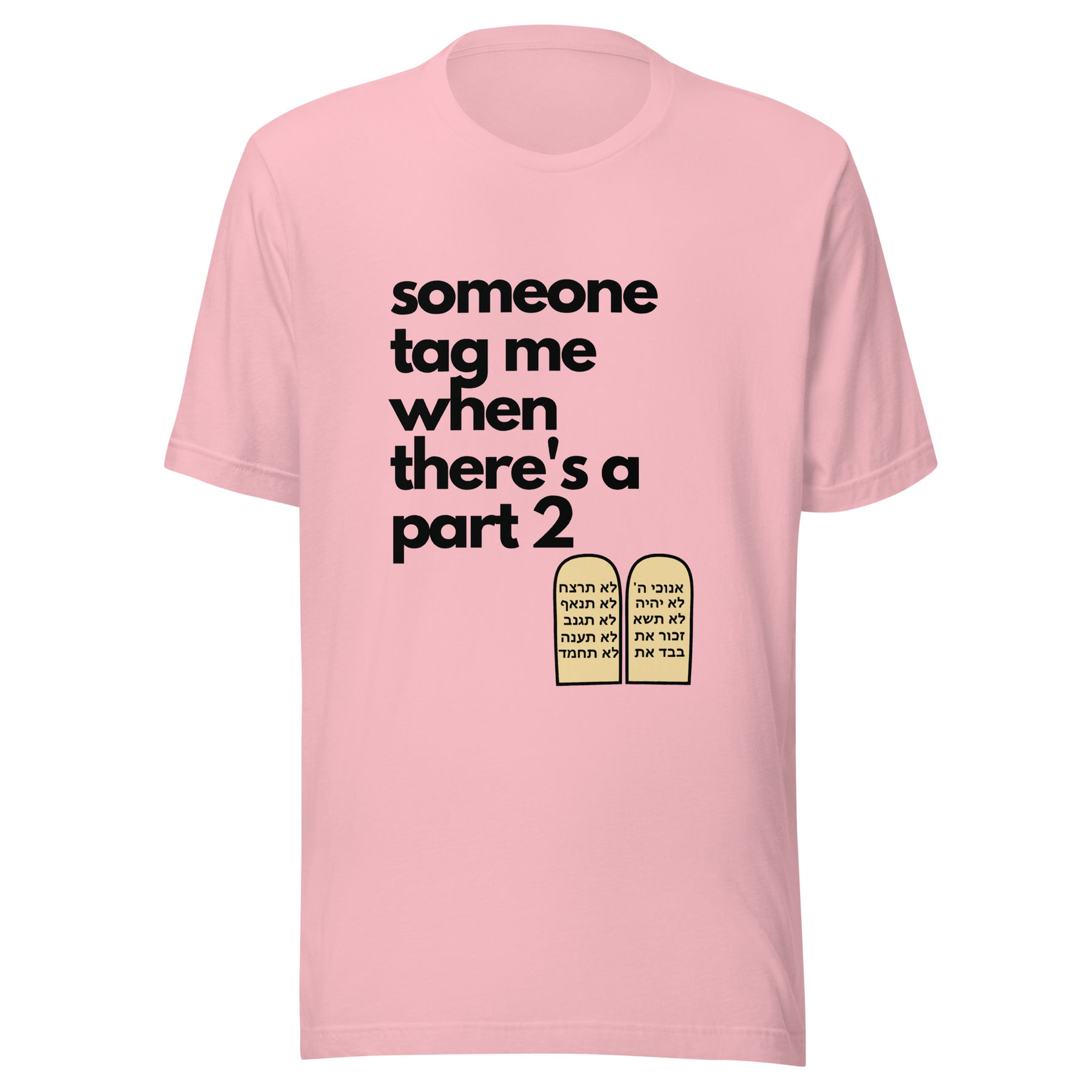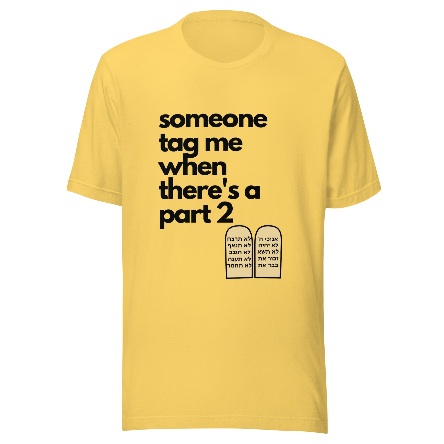 For anyone who’s ever binge-watched something and said, “Text me when the next part comes out,” this shirt gets you on a spiritual level. The Someone Tag Me T-Shirt takes that exact vibe and pairs it with the Ten Commandments tablets in Hebrew — turning a classic moment into a perfectly timed joke.