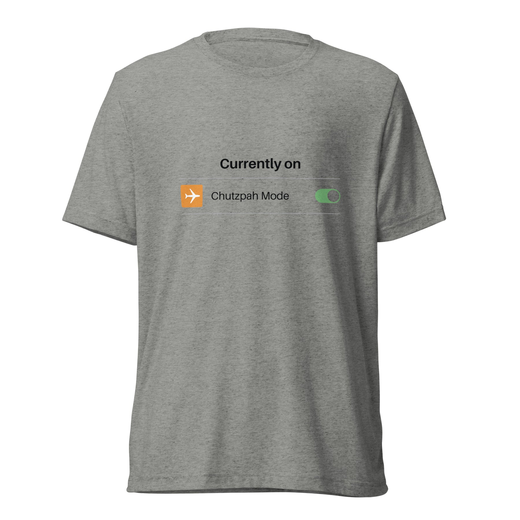 Front and center is the little toggle graphic that reads “Currently on: Chutzpah Mode.” It’s simple, clever, and quietly hilarious. It gives off just the right amount of attitude without shouting. And the print stays crisp, even after the kind of laundry cycles where you forget to separate anything.