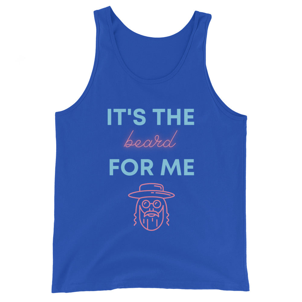 If you’re searching for a funny Jewish tank top, an It’s The Beard For Me tee, a Jewish humor shirt, a Hasidic beard design, or a quirky Jewish gift idea, this one fits perfectly.