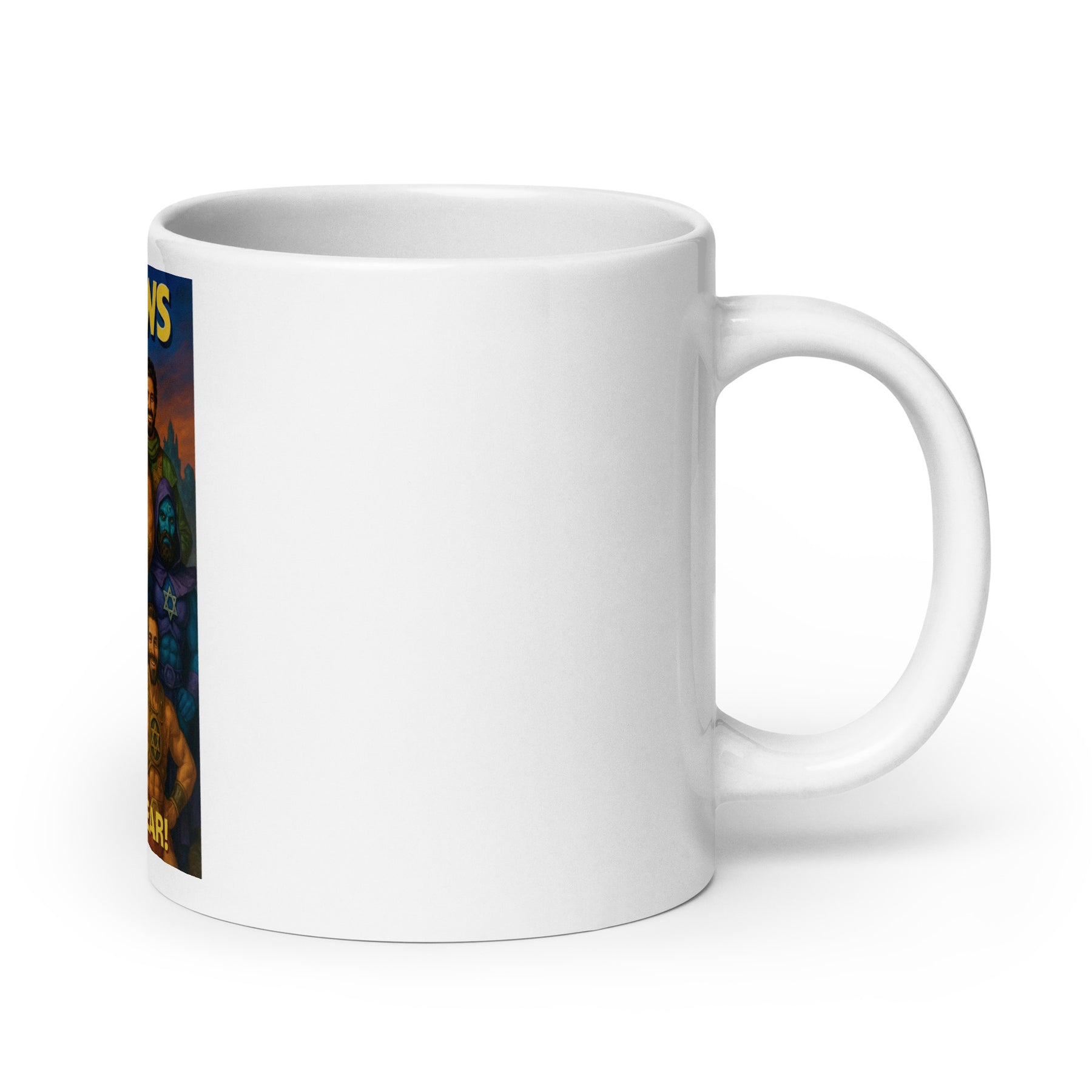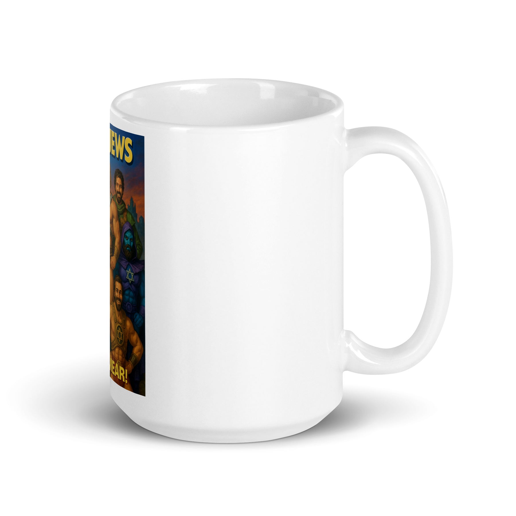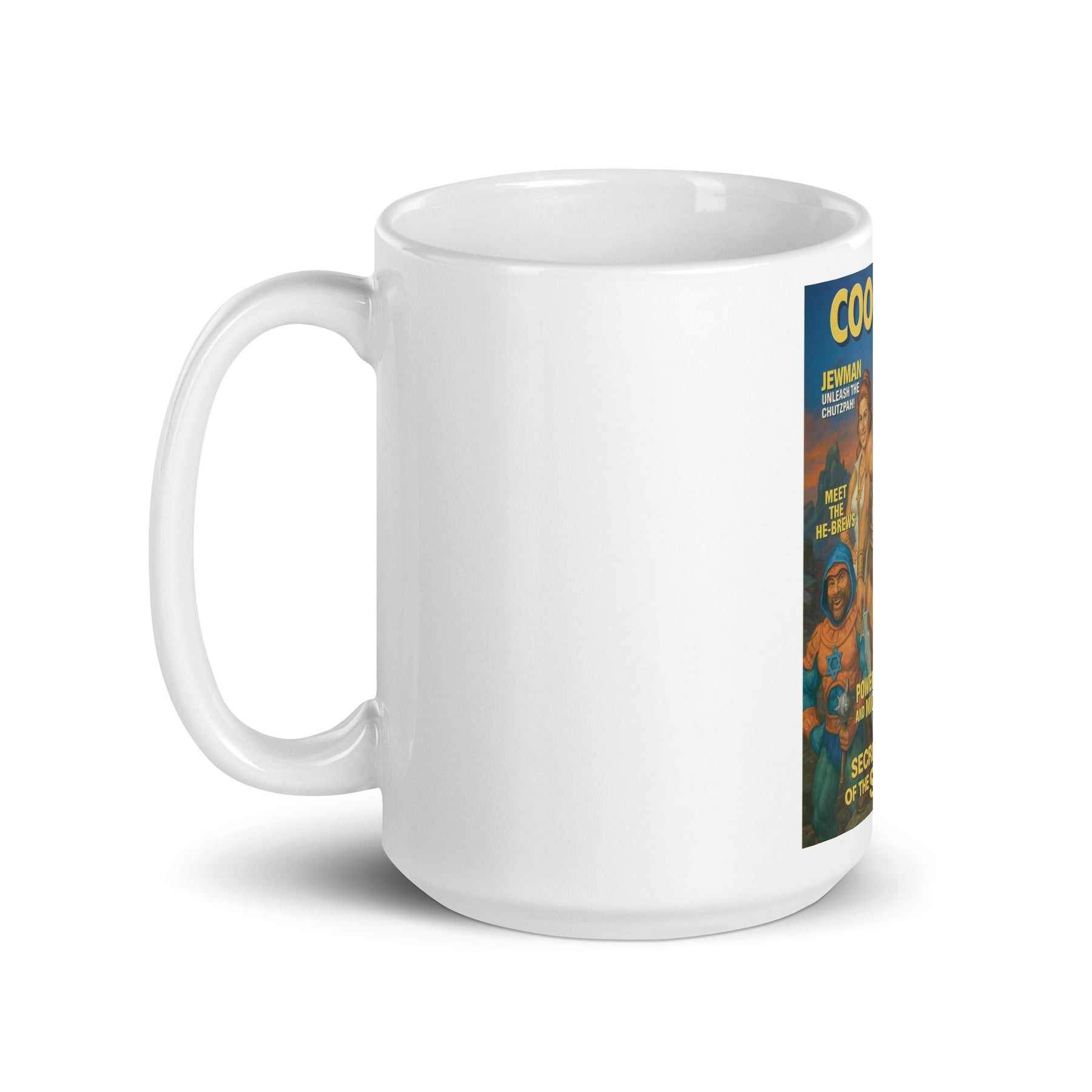 Fuel your day with faith, pride, and a touch of Jewish humor. The Cool Jews – He‑Brews Edition Mug showcases the iconic Jewman and his legendary crew, The He‑Brews, celebrating Jewish strength, identity, and laughter in one bold design.