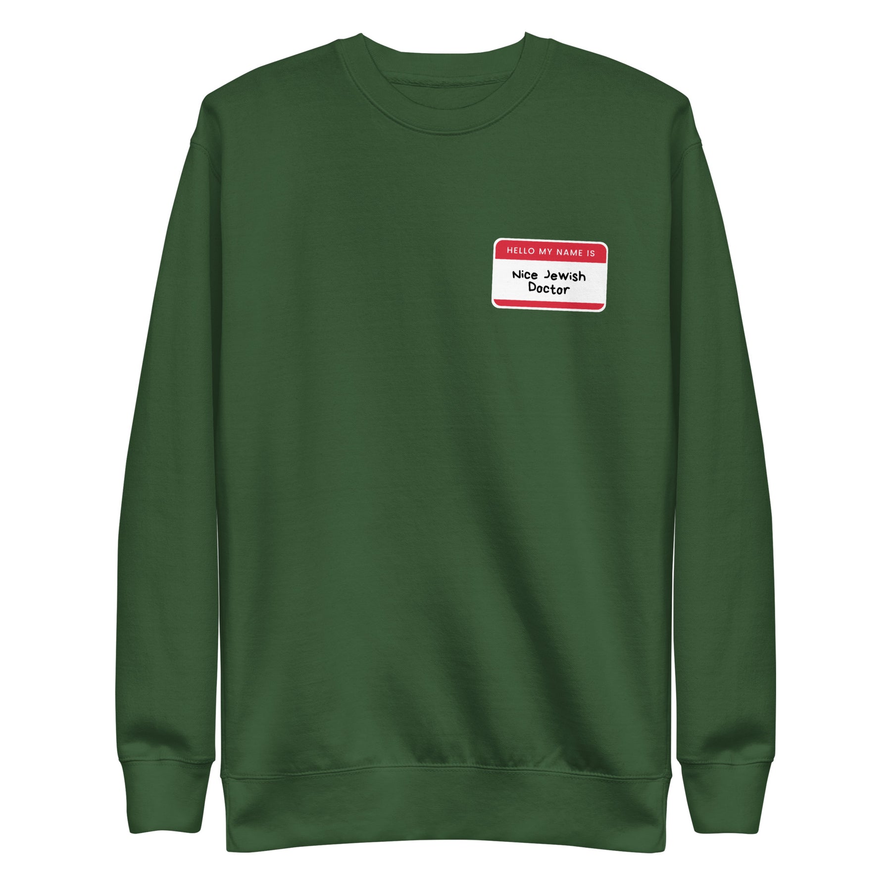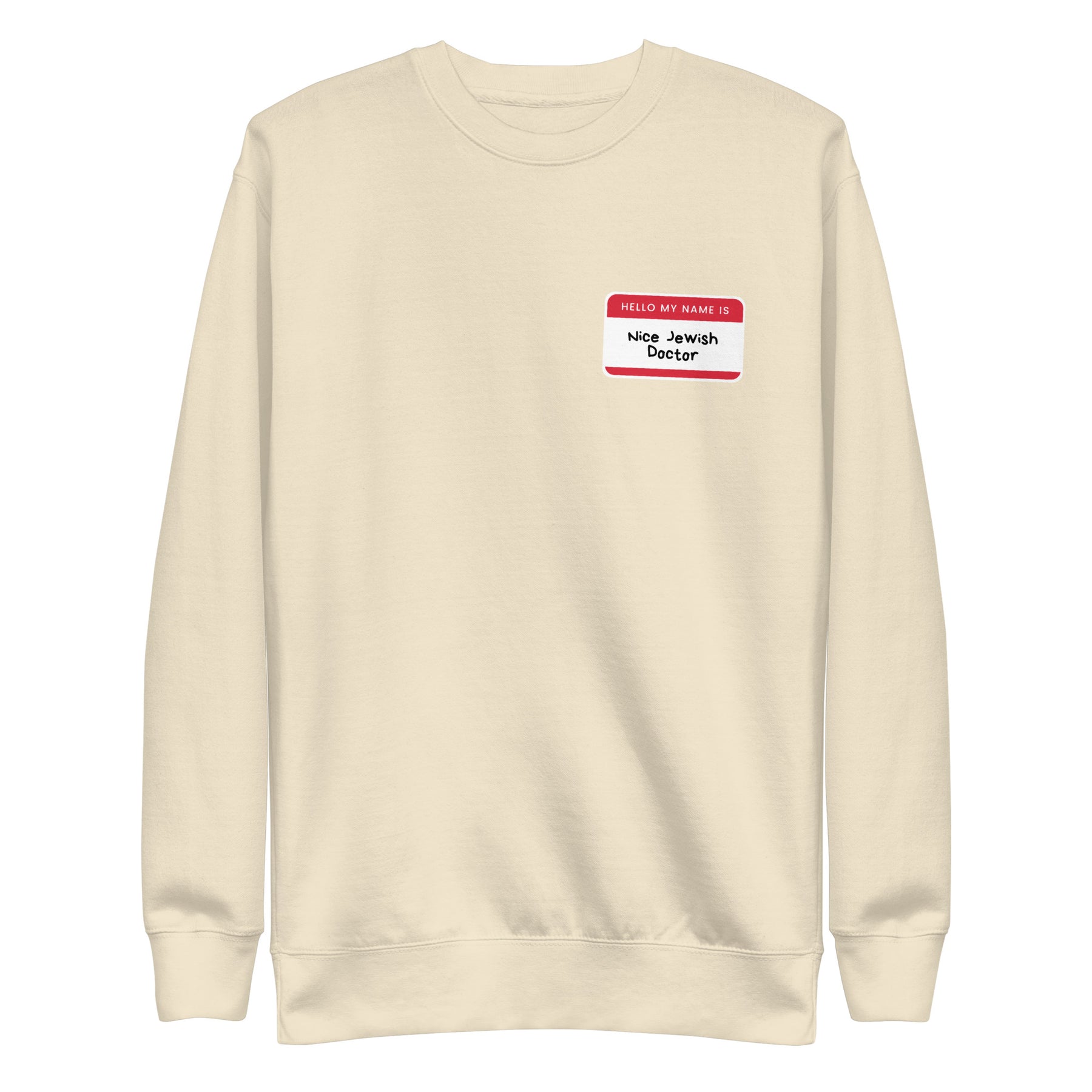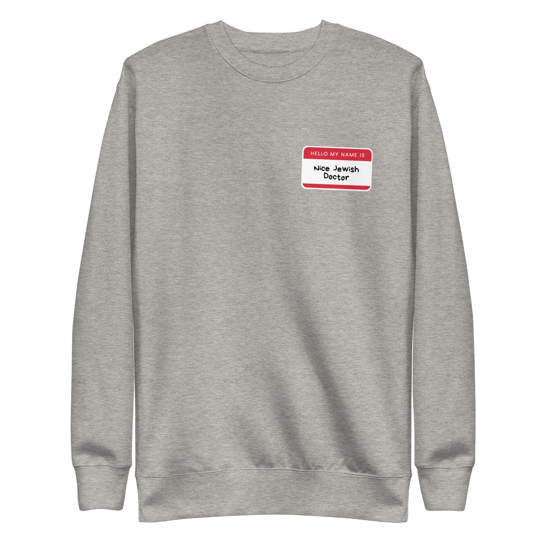 The Nice Jewish Doctor Premium Sweatshirt delivers classic Jewish humor with understated confidence. Styled like a familiar name tag, the message says everything generations of parents hoped to hear. No explanation needed. No backstory required.