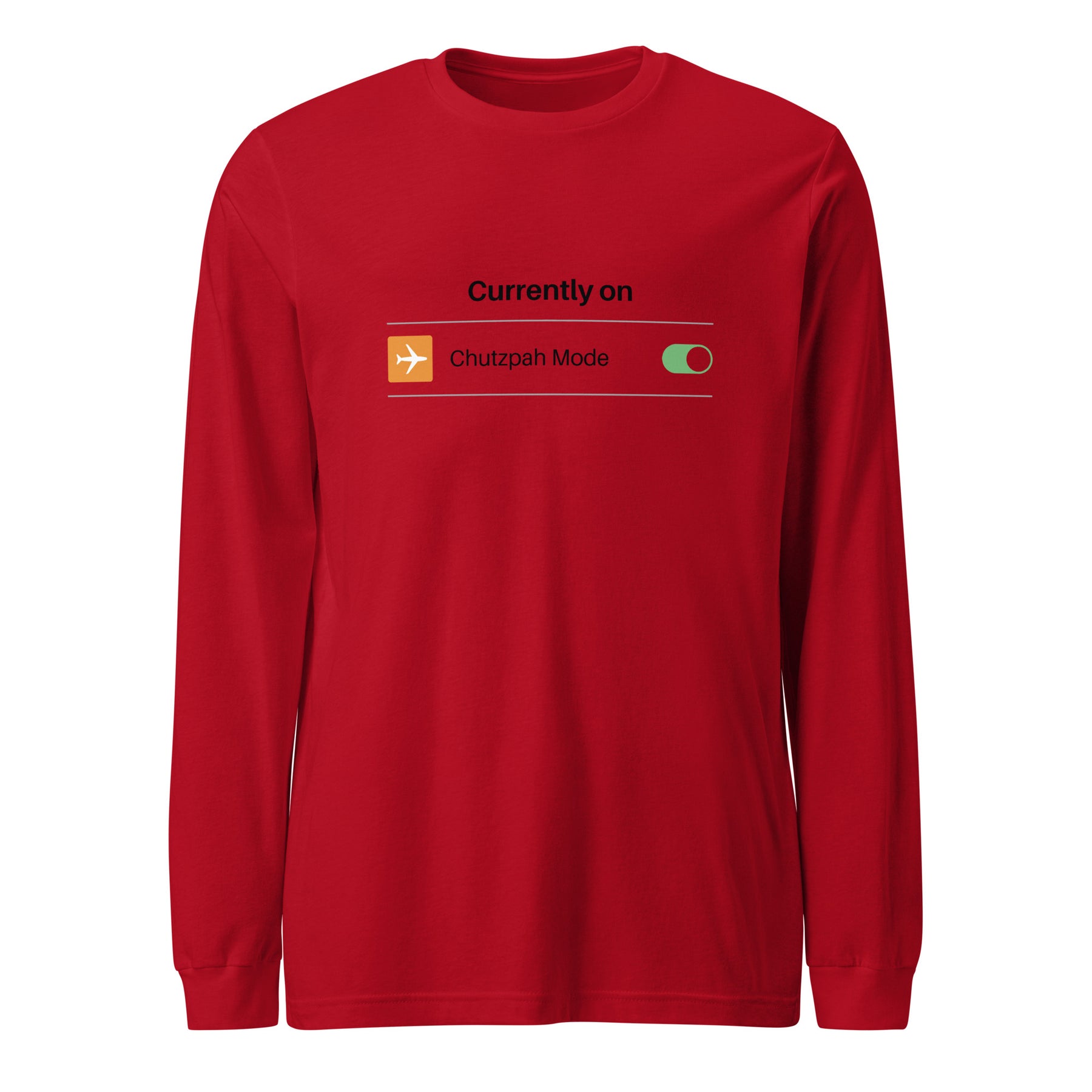 On the front, you’ve got the playful toggle graphic that says “Currently on: Chutzpah Mode.” It’s subtle, clever, and adds that little spark of attitude that makes people smile when they read it. The print stays sharp, the fabric feels smooth, and the whole shirt holds up no matter how many times it ends up in the laundry.
