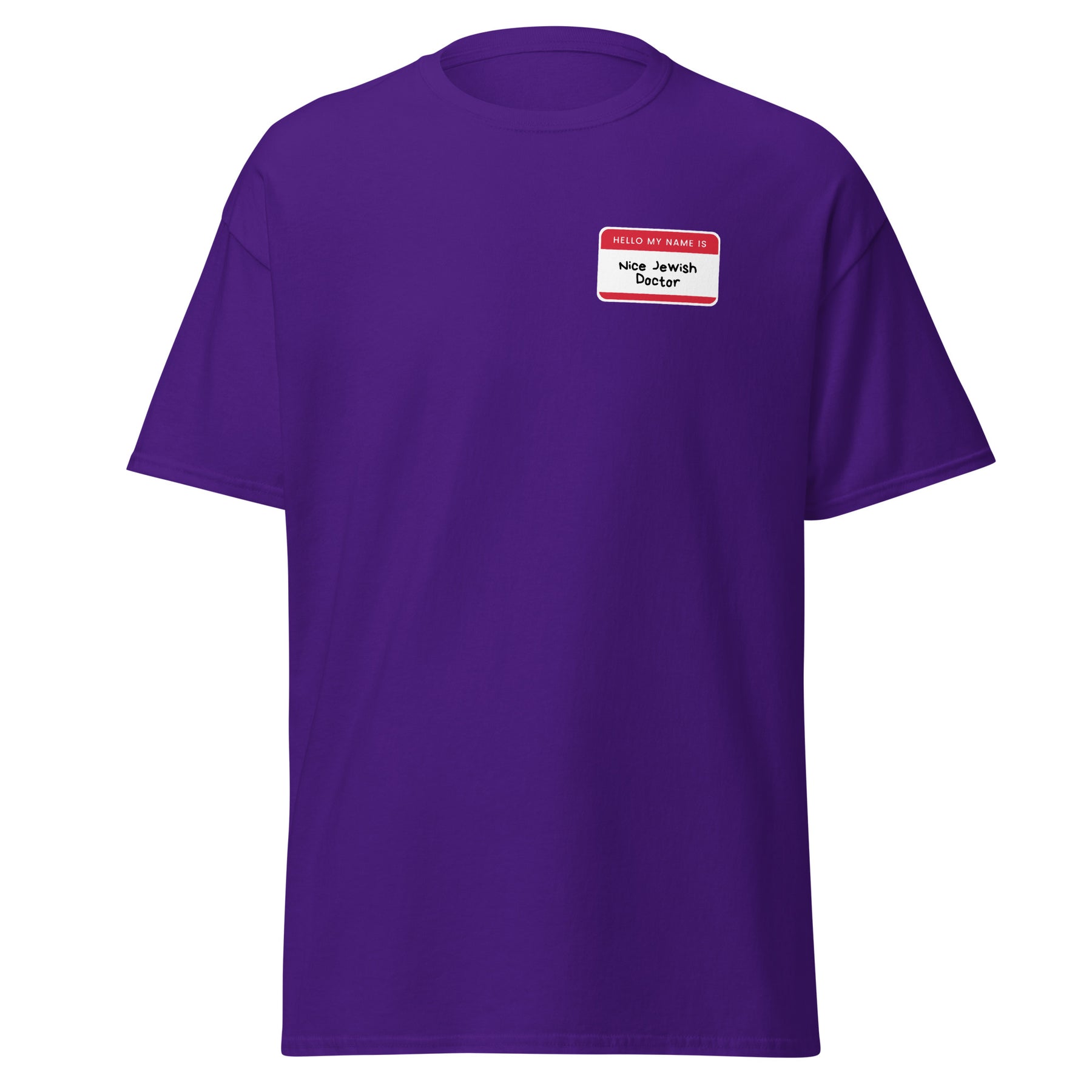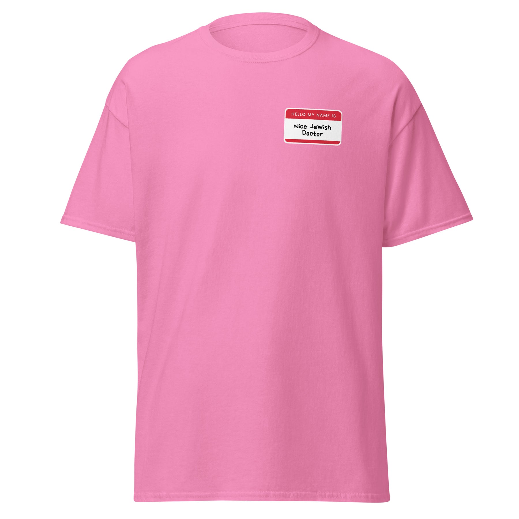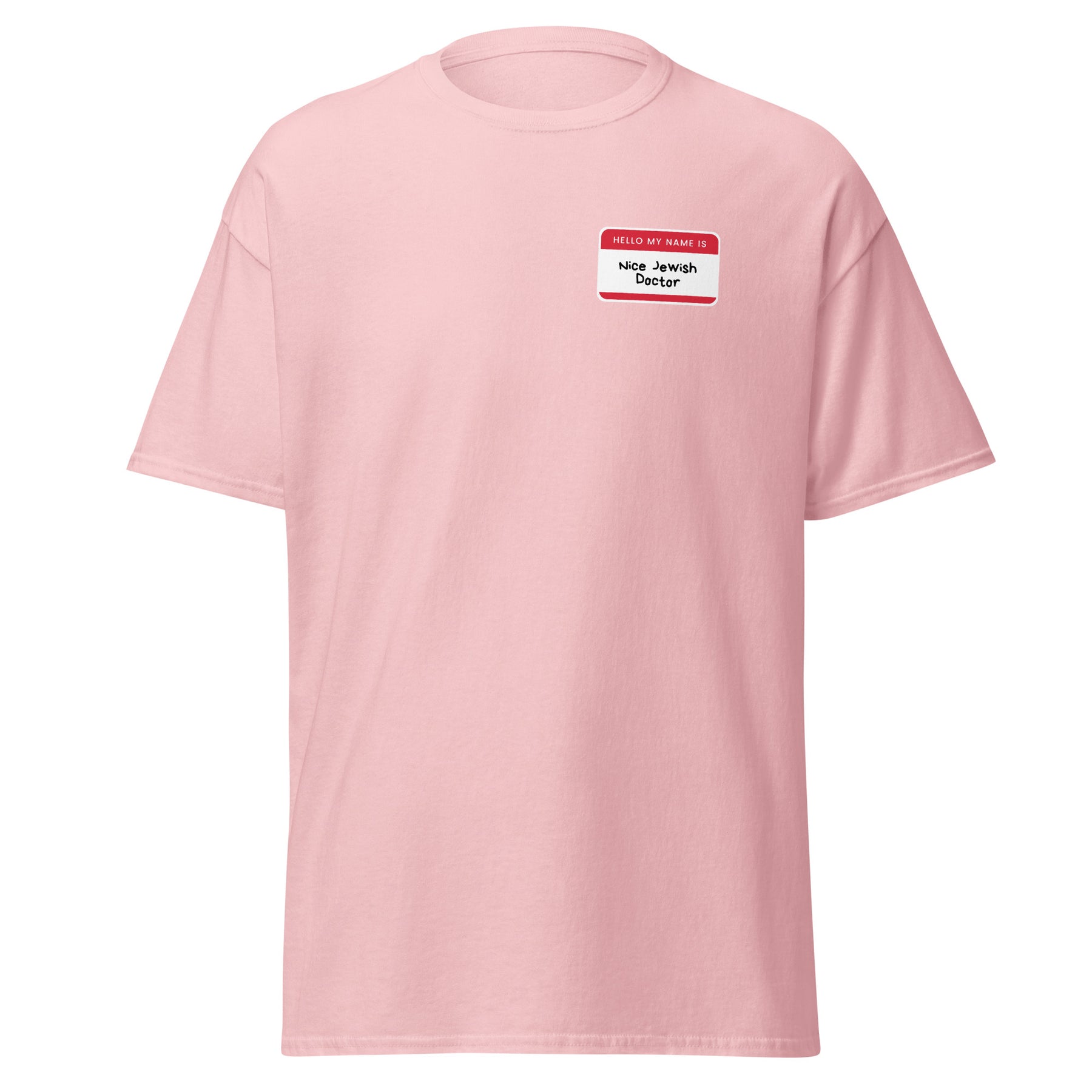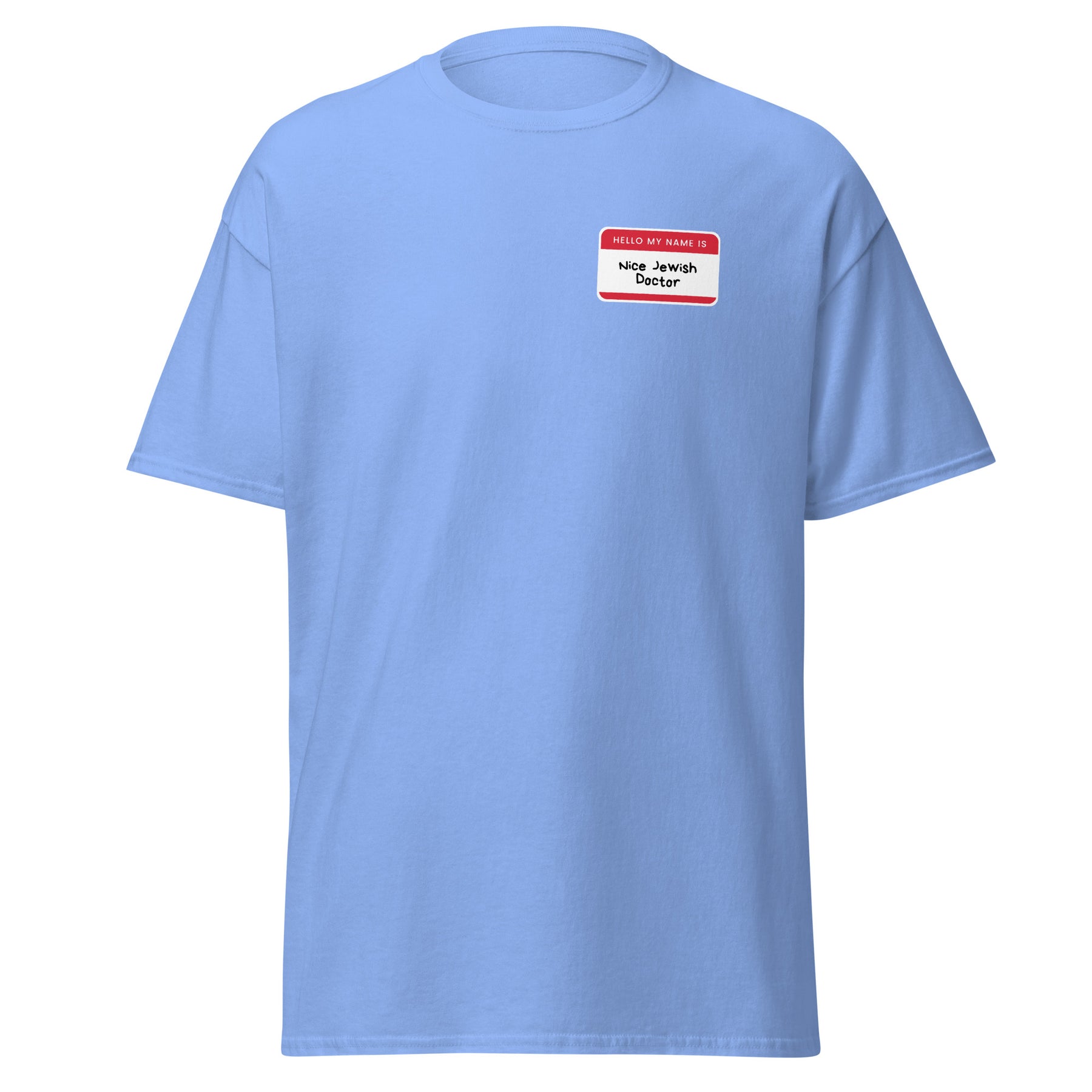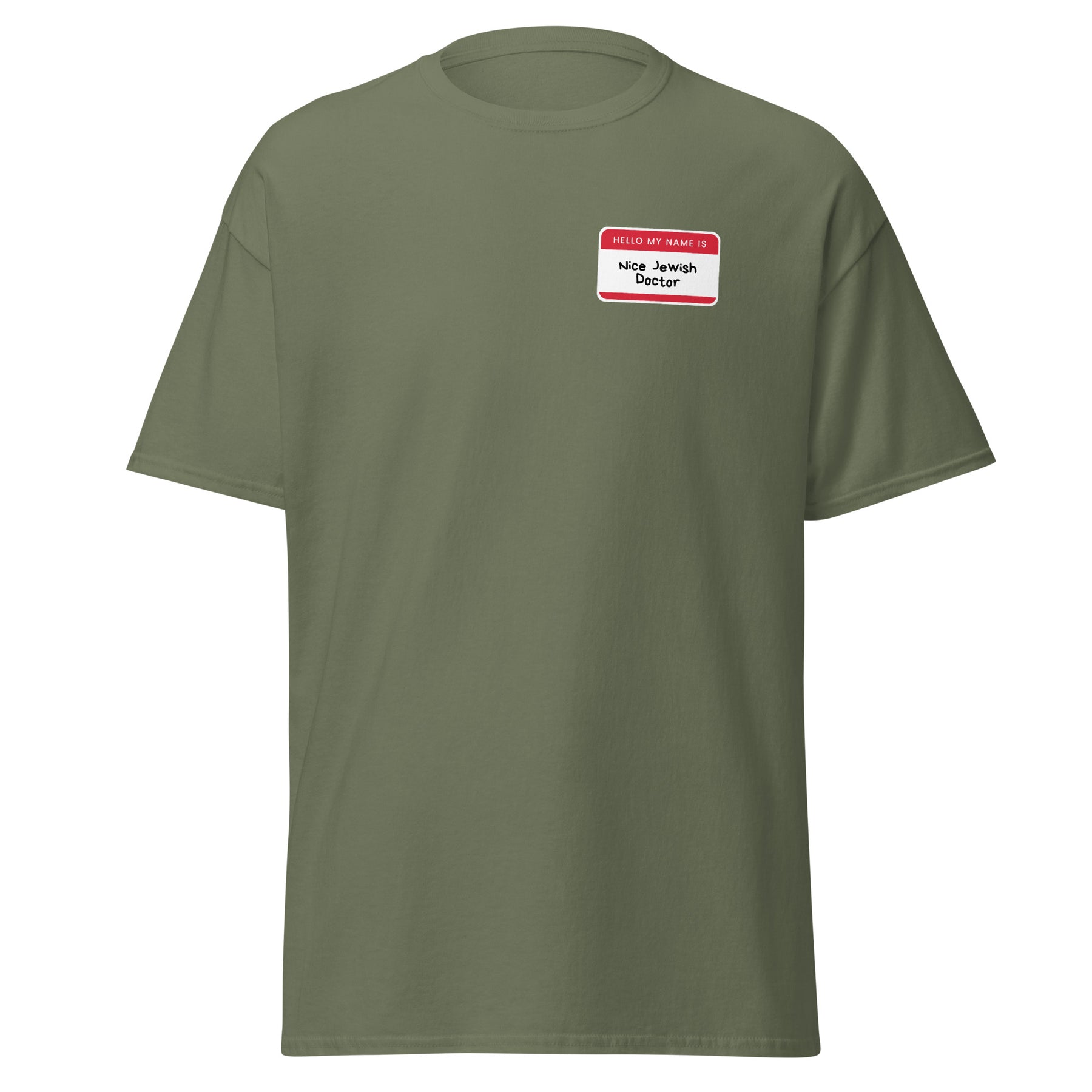 The Nice Jewish Doctor Classic Tee says exactly what generations of parents hoped for, in the most understated way possible. Styled like a familiar name tag, this shirt delivers dry Jewish humor with perfect timing and zero effort.