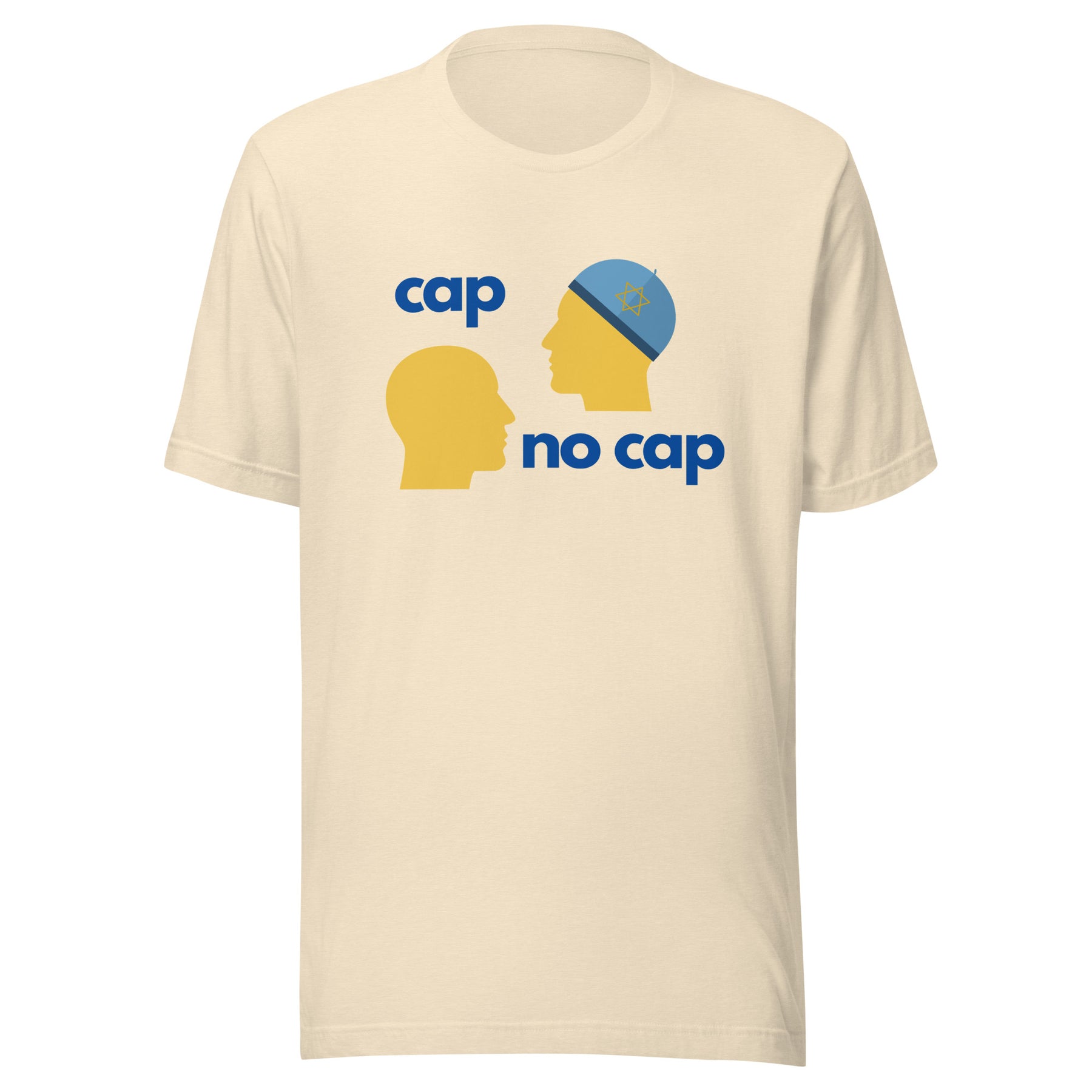 Say it straight. Cap or no cap. This Cap No Cap T-Shirt flips a familiar phrase into a clever Jewish inside joke. With a subtle kippah reference baked into the design, it’s about honesty, identity, and a bit of smart humor all in one.